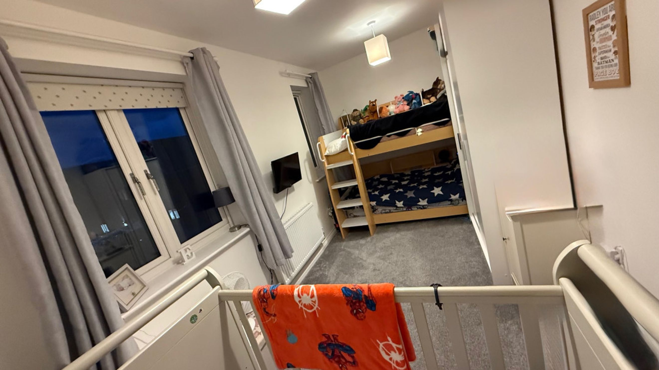 bedroom and a bathroom;