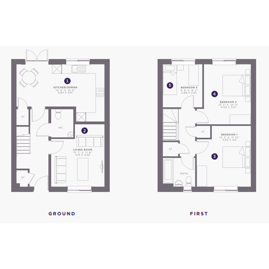 On the ground floor, a bright and spacious kitchen/dining area sits at the rear of the home, featuring French doors that open out to the garden perfect for entertaining or enjoying natural light throughout the day. A welcoming living room sits at the front of the property, providing a cosy retreat for relaxing. The ground floor also includes a convenient WC and practicalstorage spaces.