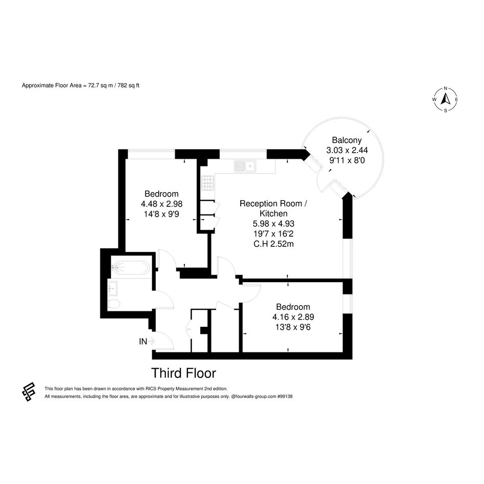 The heart of this home is the large, airy, open-plan kitchen and living area. Featuring large windows throughout, the space is flooded with natural light, creating an ideal environment for entertaining or day-to-day living. This main reception room benefits from direct access to a private balcony, a peaceful spot to enjoy your morning coffee or unwind in the evening. The kitchen is well-equipped with integrated appliances including an oven, hob, extractor fan, and fridge/freezer, and offers generous countertop space and storage.