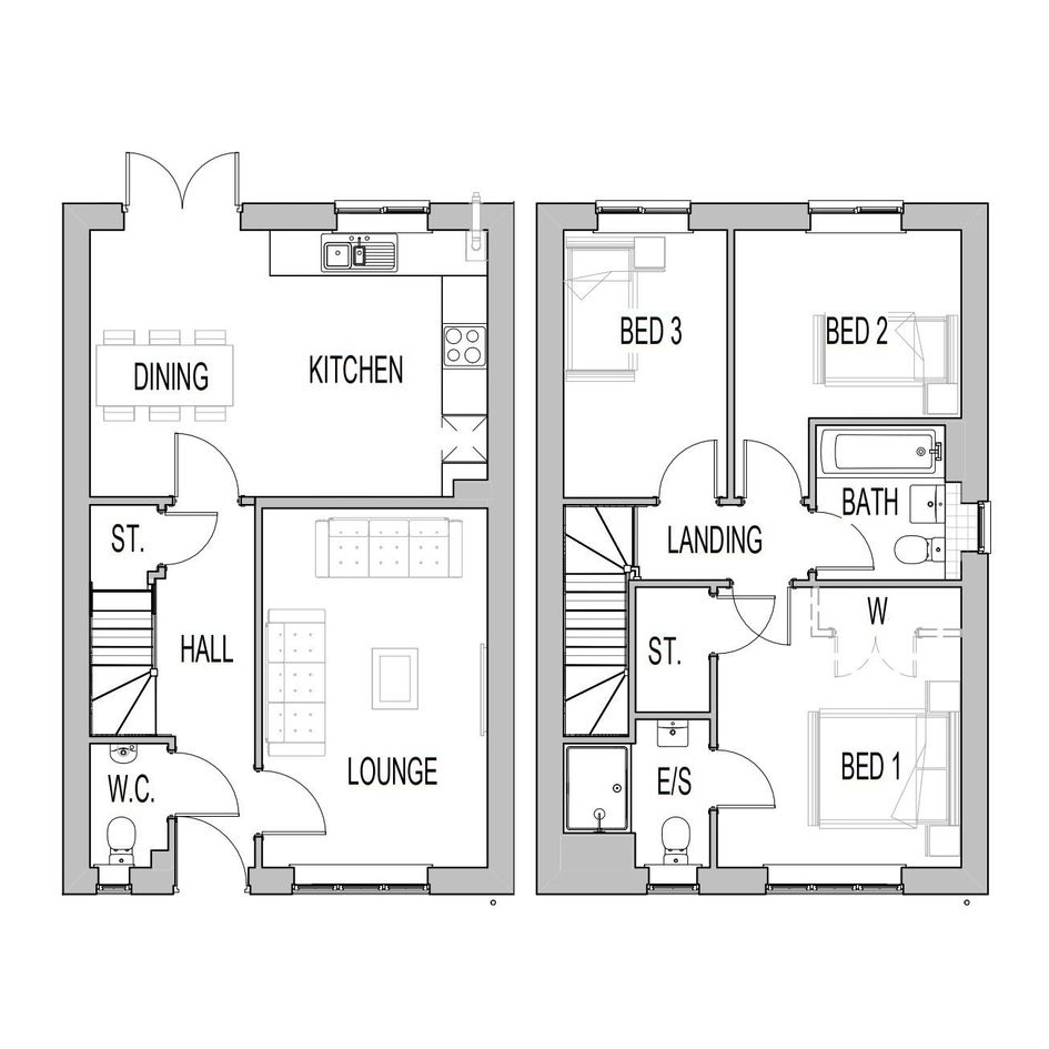 Welcome to The Whitton. A comfortable three-bedroom home designed for modern living. Step into a hallway leading to a spacious front lounge, perfect for relaxing or family time. At the rear, the open-plan kitchen-diner creates a sociable hub, with French doors opening to a private garden for effortless indoor-outdoor living. Upstairs, three versatile bedrooms include a main suite with en-suite and wardrobe space, plus a well-appointed family bathroom. With thoughtful storage, a convenient downstairs WC, and allocated parking, The Whitton offers comfort, practicality, and flexibility for families and professionals seeking a home that blends lifestyle and value.
