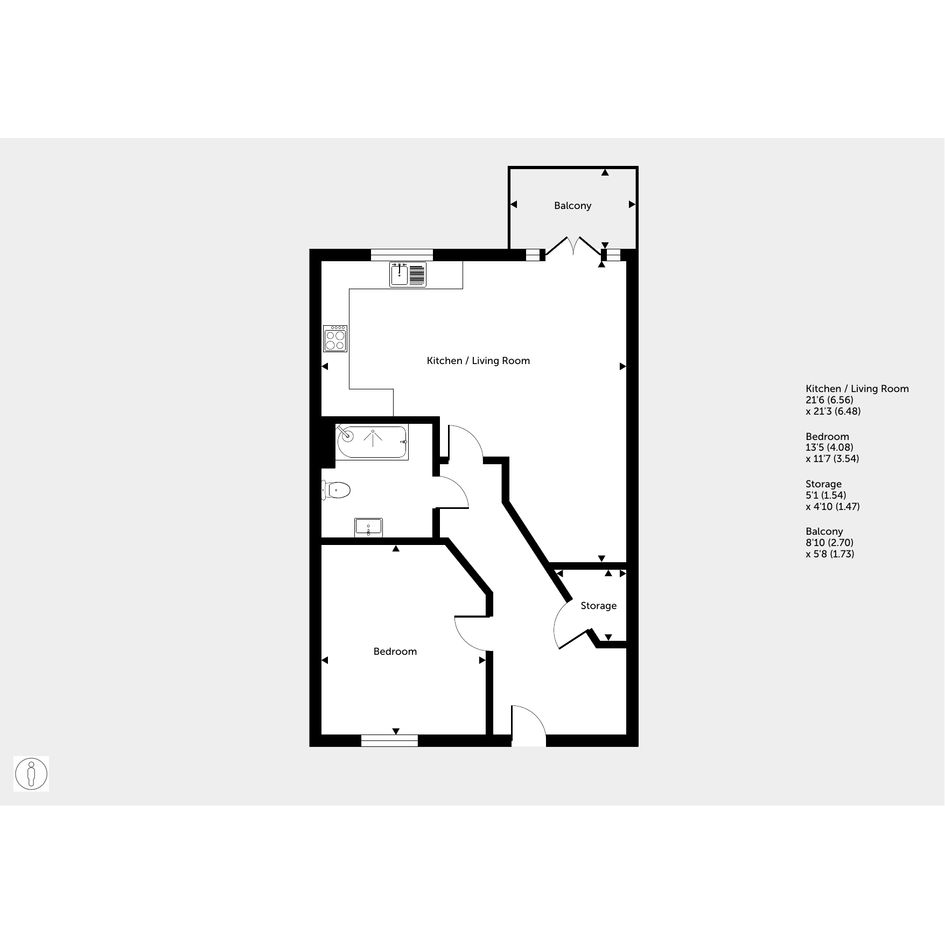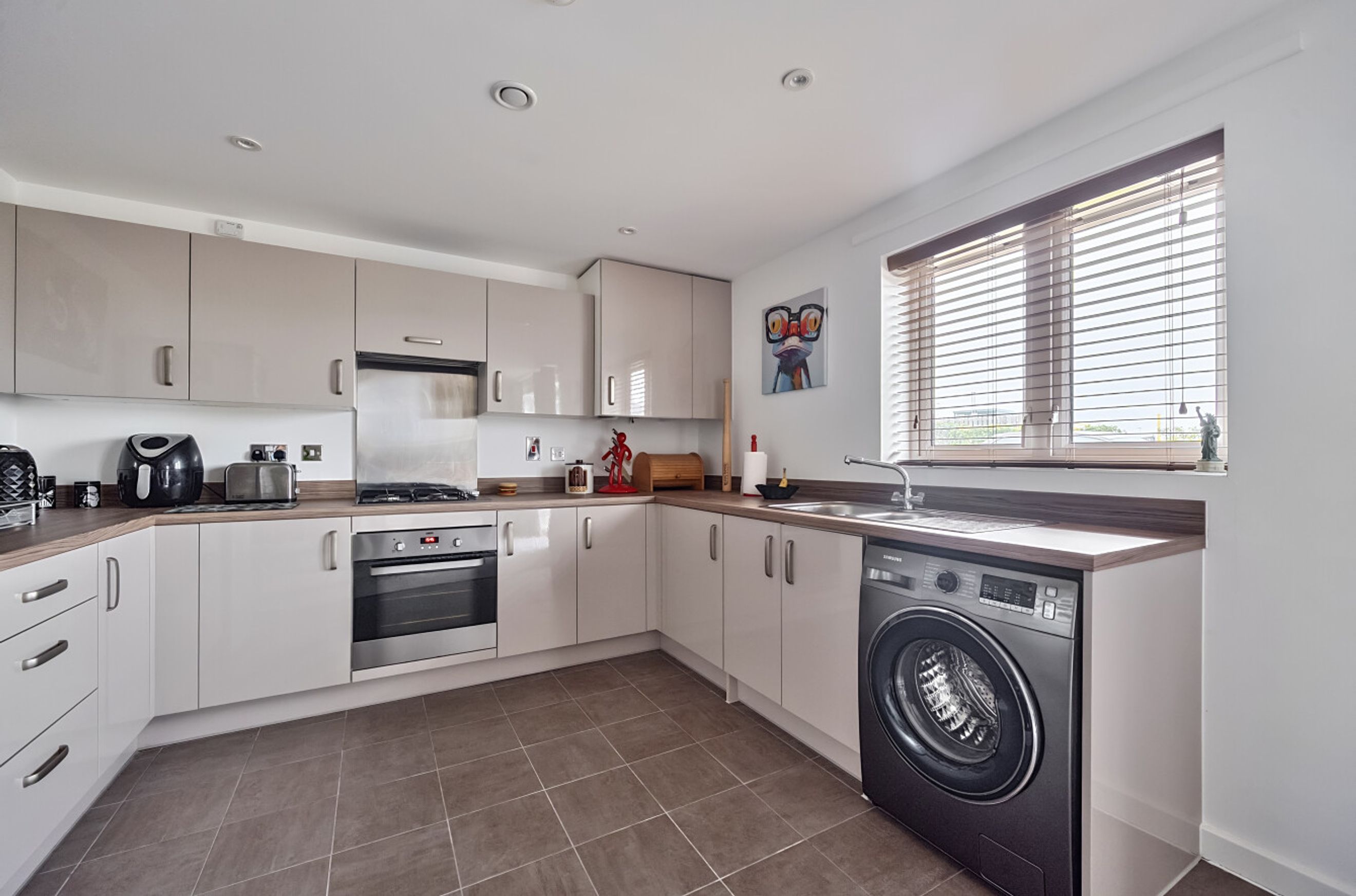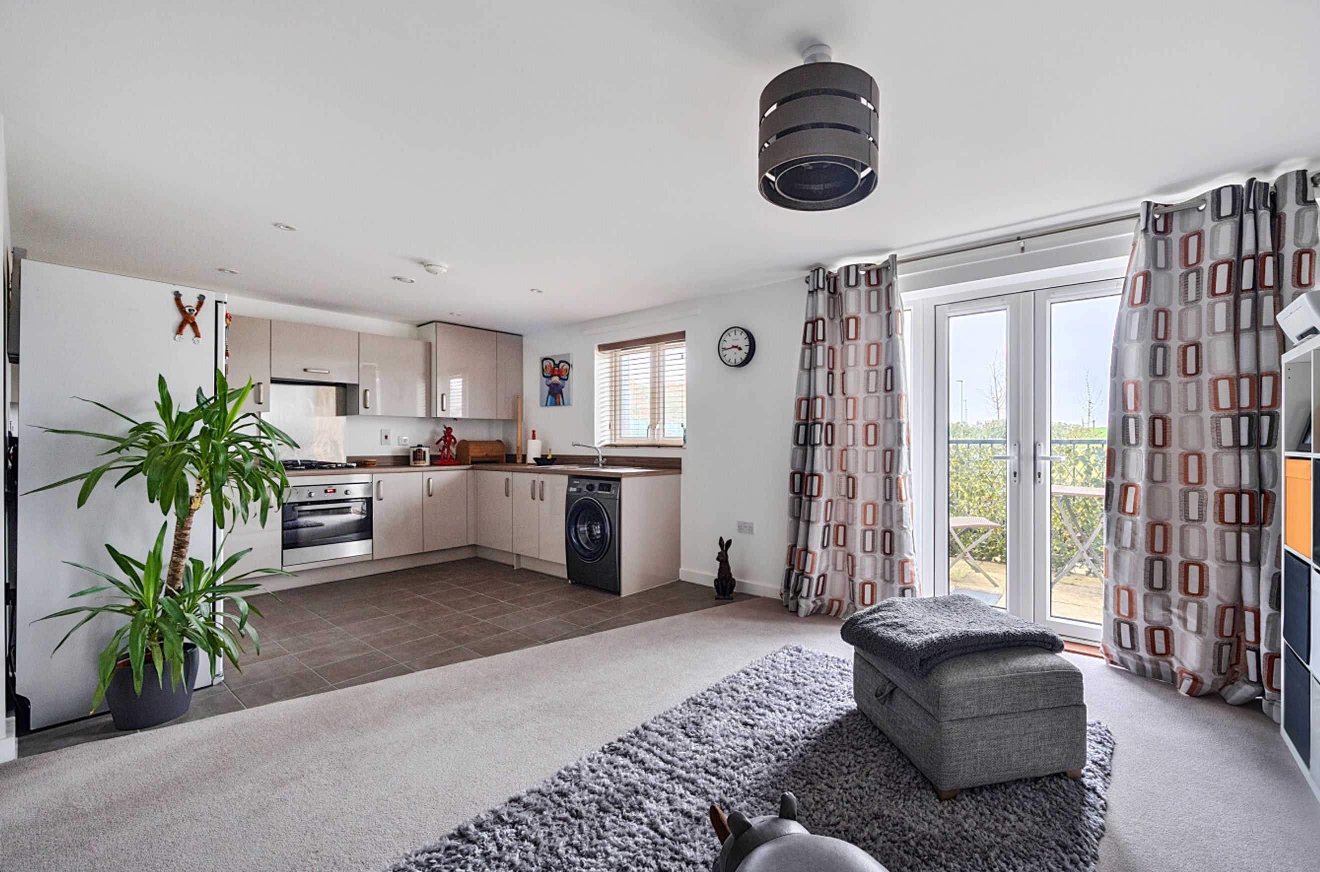 Featuring an open-plan living area with doors leading out onto your balcony. The kitchen has an integrated oven, hob and hood.