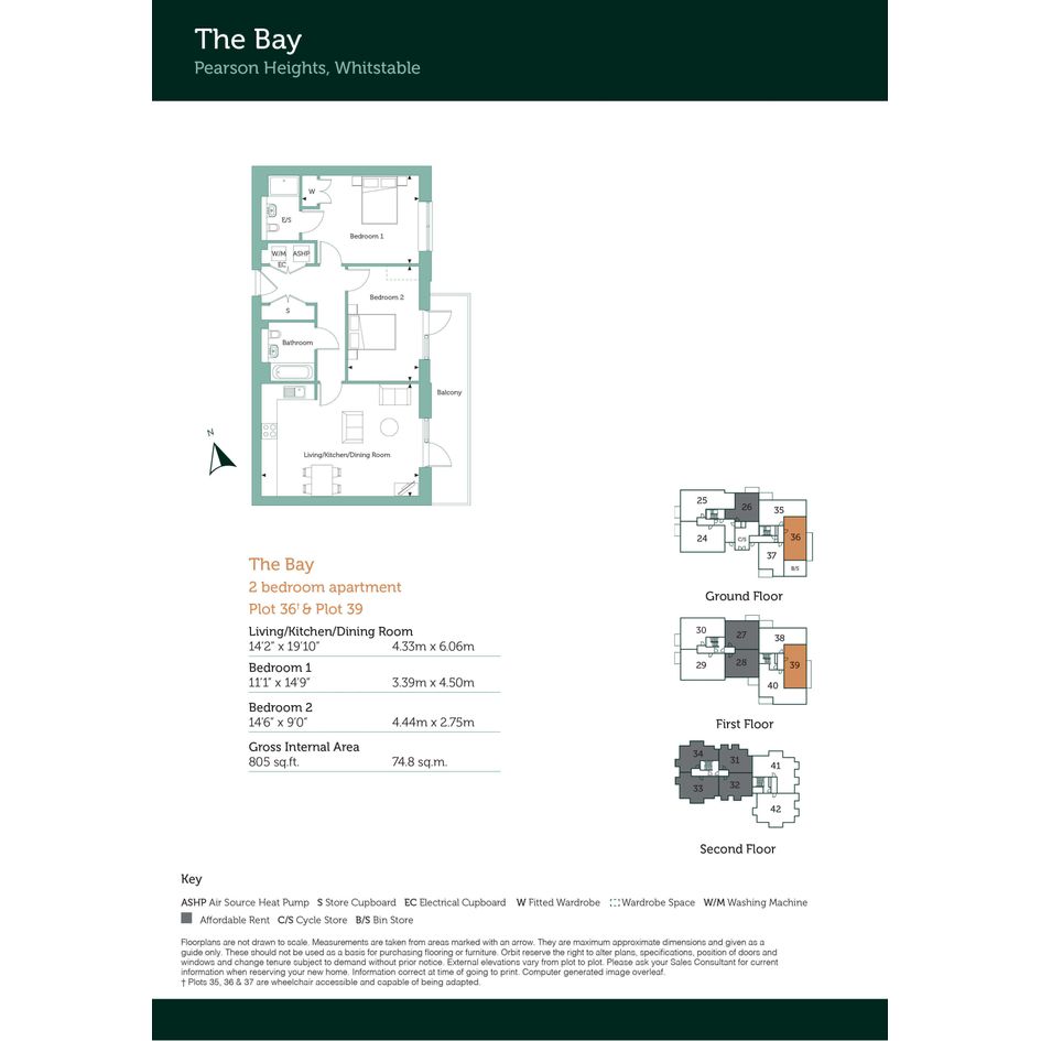 Located on the ground floor, plot 36 boasts a large private balcony, an allocated parking space with shared EV charging point and access to areas of open green space next to the building.