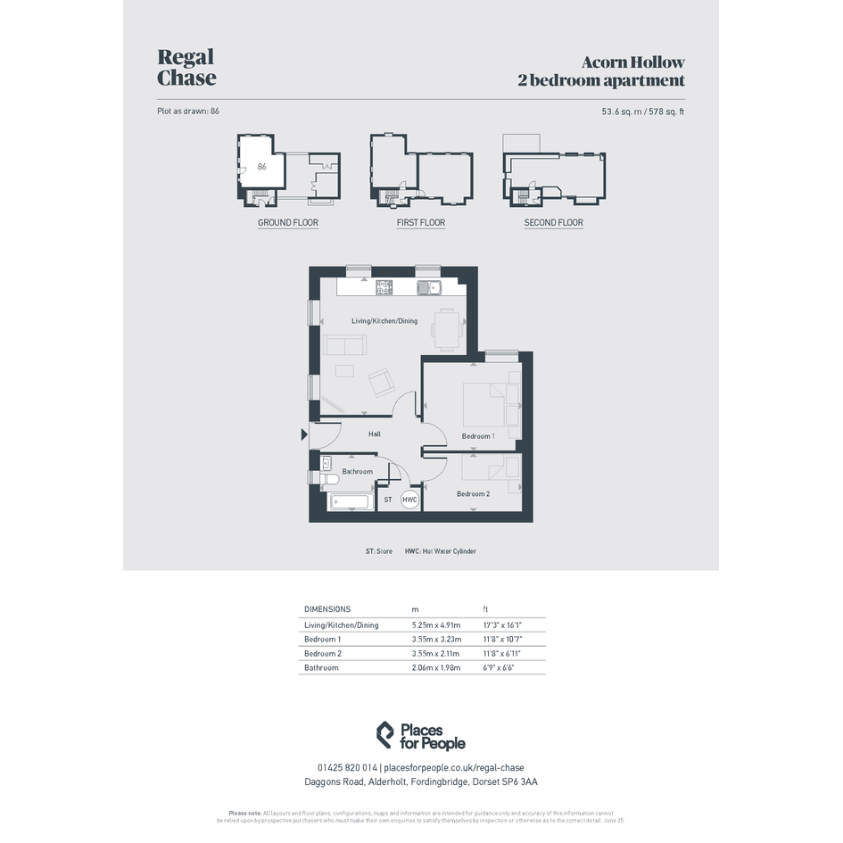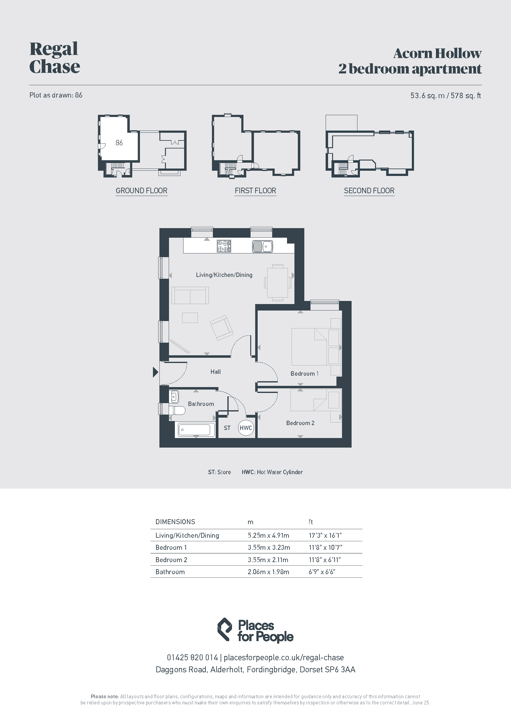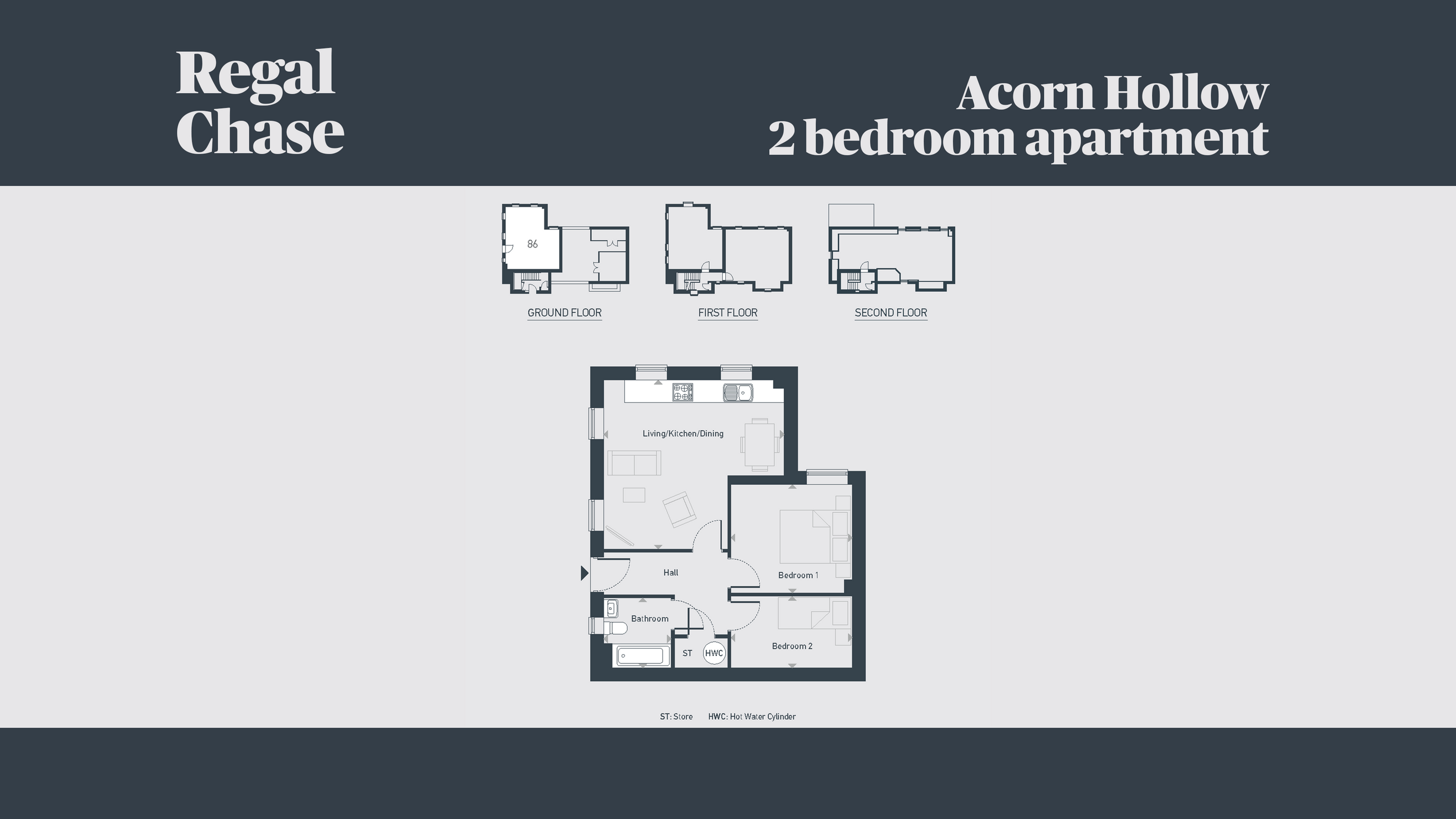 Plot 86 - Acorn Hollow - Modern 2 bedroom apartment at Regal Chase, Alderholt - featuring open-plan living, double and single bedrooms, bathroom and hallway storage.
