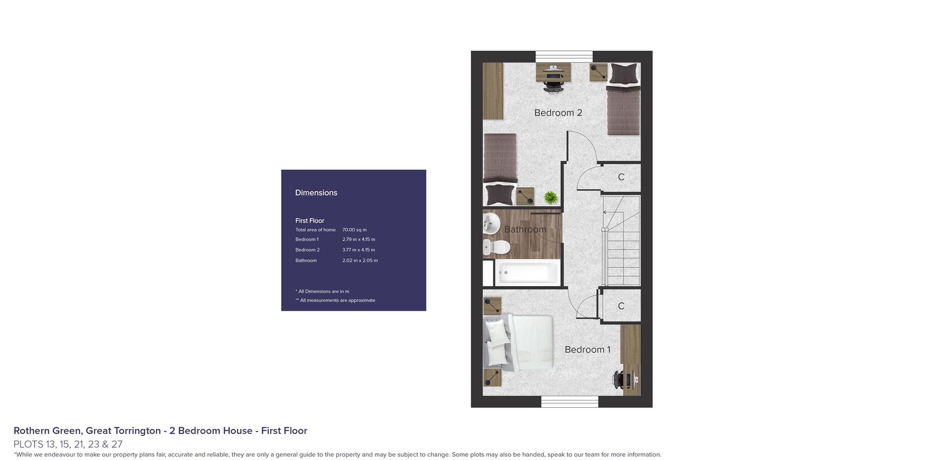 Upon reaching the top of the stairs, you'll find the landing, which provides access to the family bathroom, a storage cupboard, and both bedrooms. Bedrooms one and two are generously sized double rooms, and bedroom one also benefits from an additional storage cupboard.