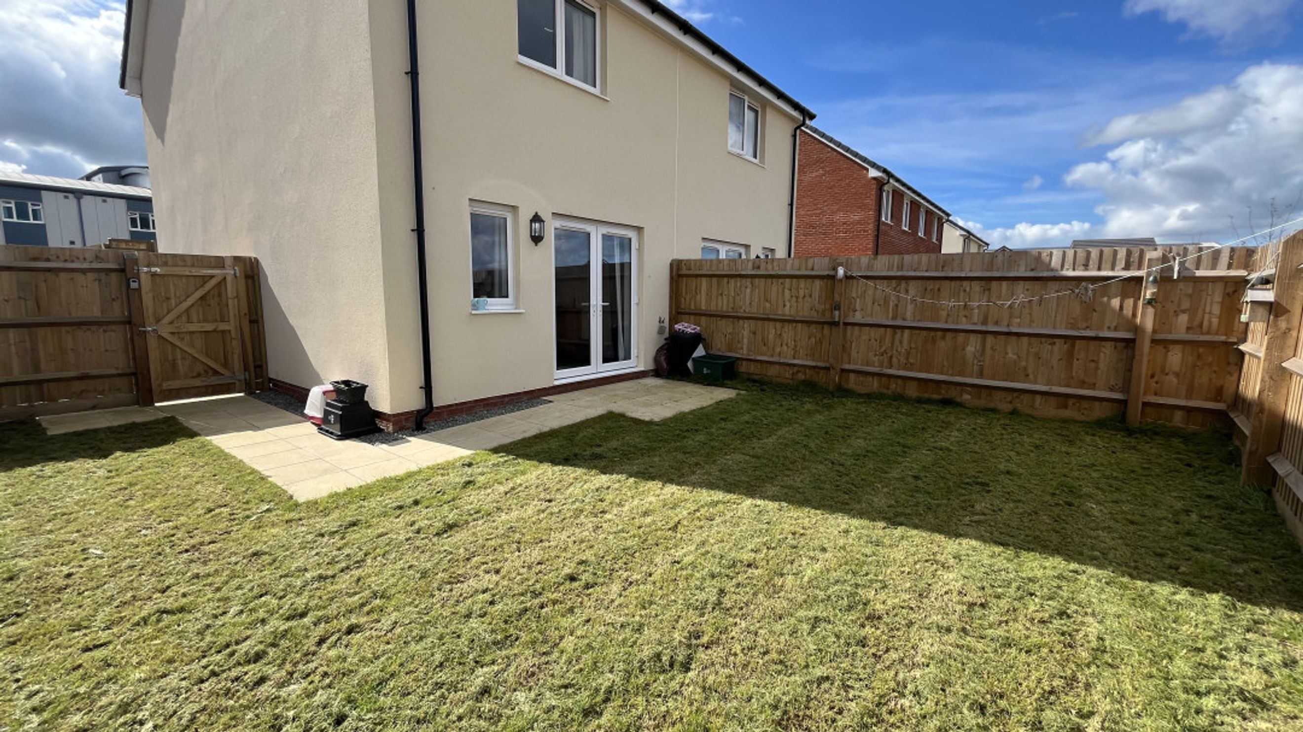 The enclosed garden can be accessed either through the patio doors or via the outside side access