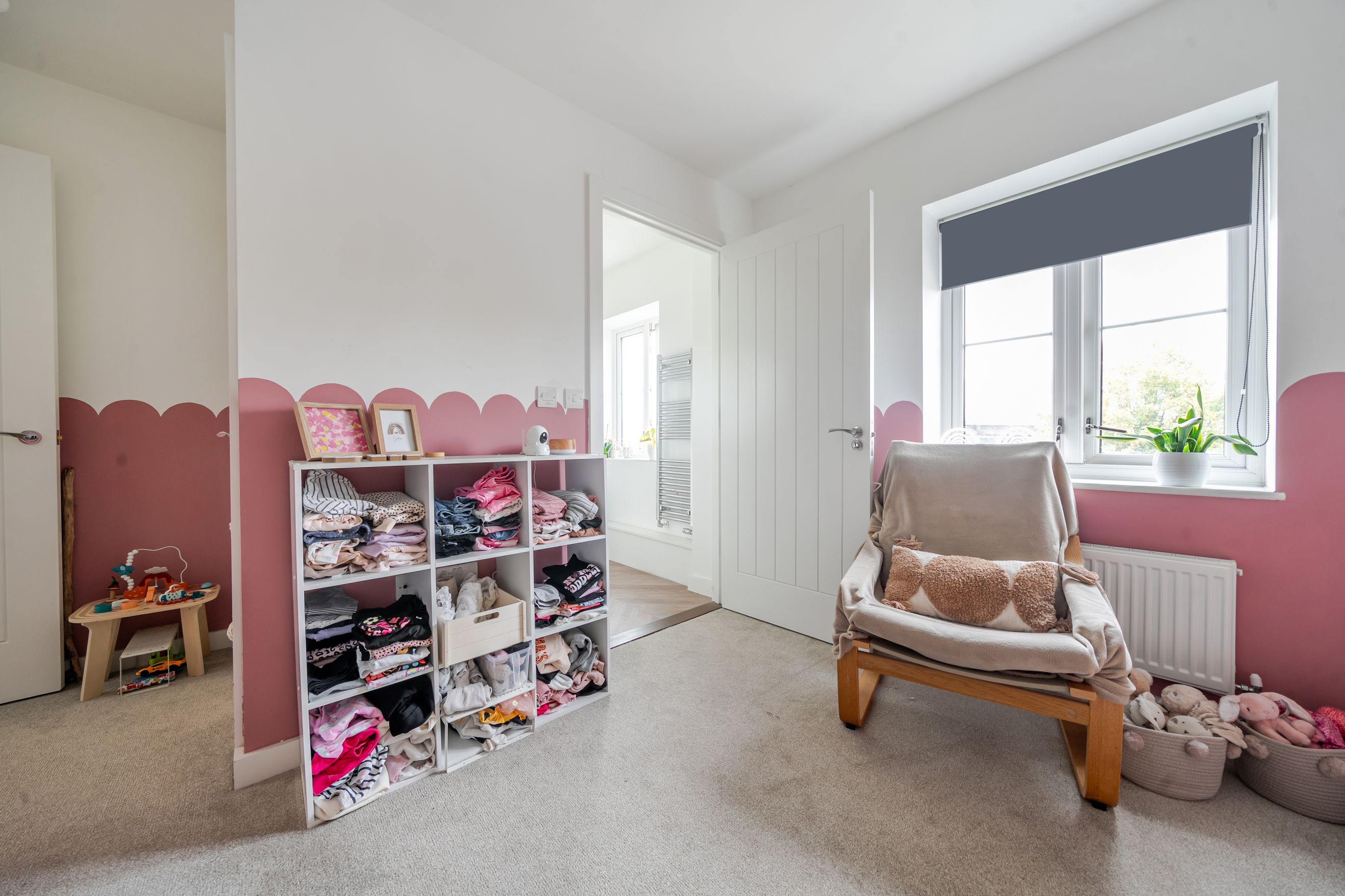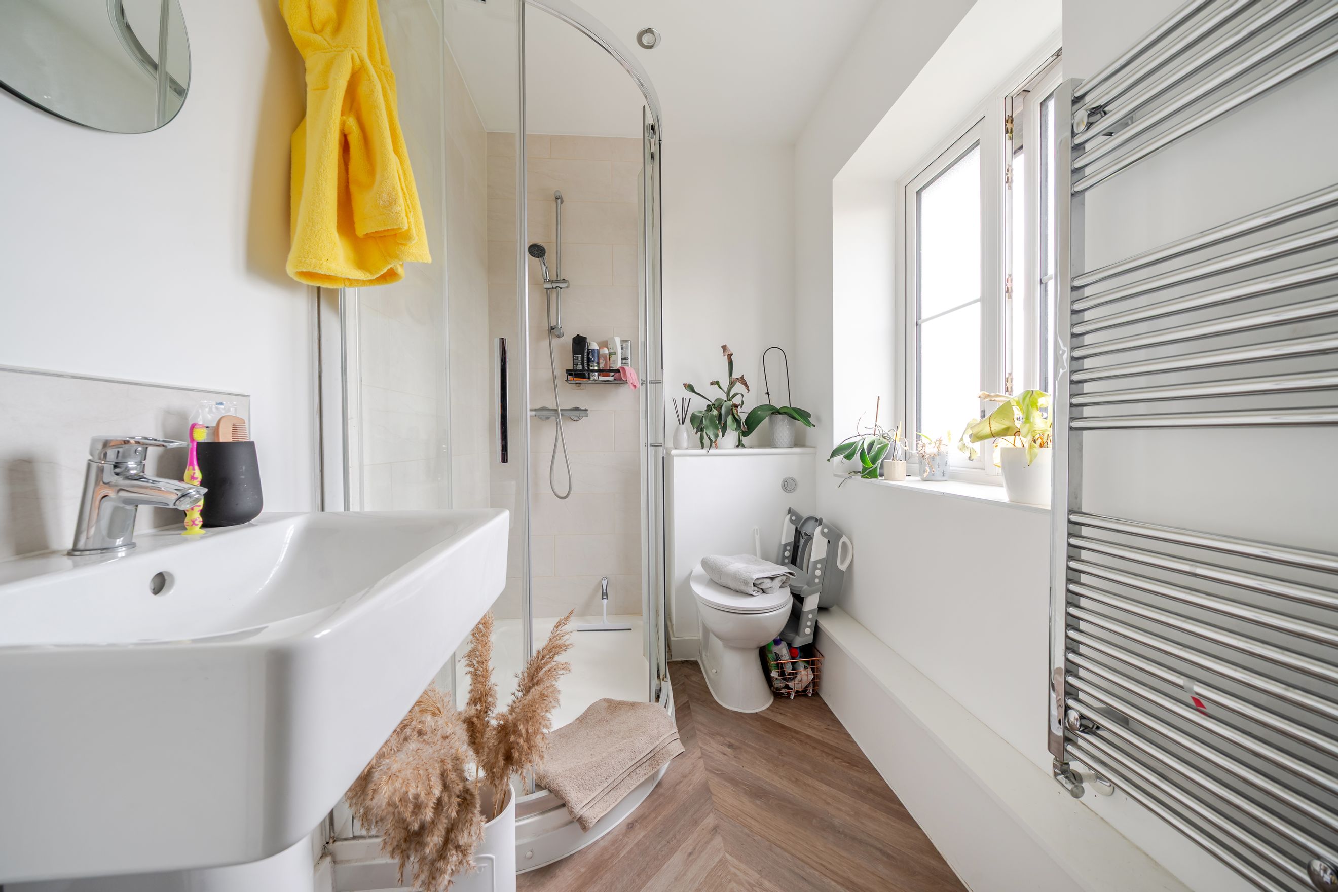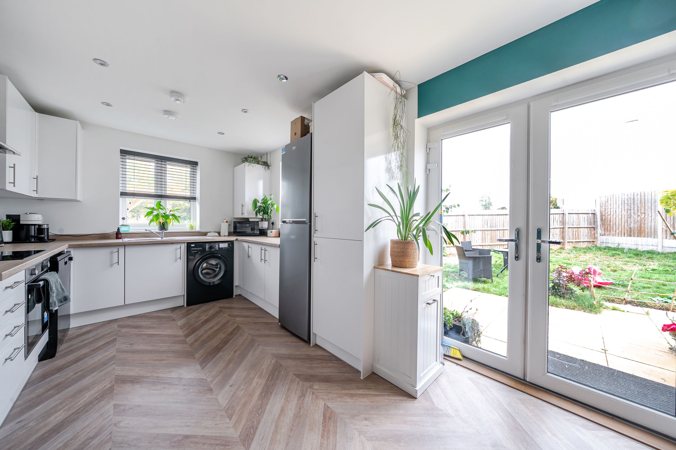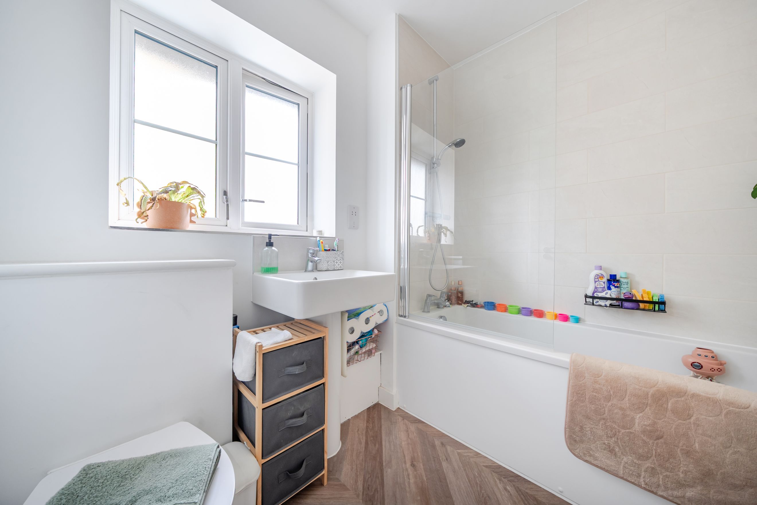 Upstairs, you’ll find three well-proportioned bedrooms. The principal bedroom offers a peaceful retreat benefitting from an en-suite, while the second and third bedrooms provide flexibility for a growing family, guests, or a home office. A sleek family bathroom features contemporary fittings and neutral tones, creating a calm, refreshing space.