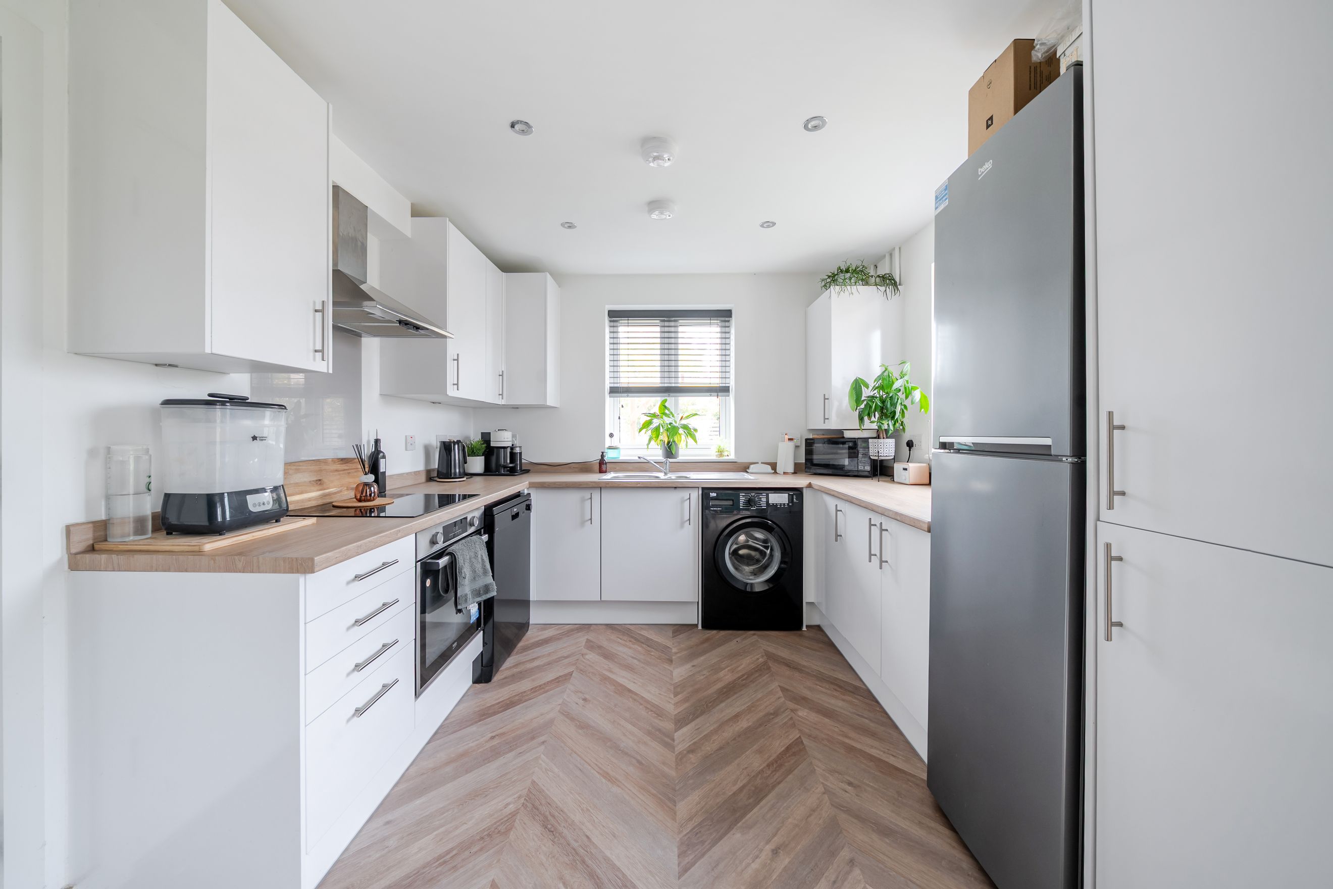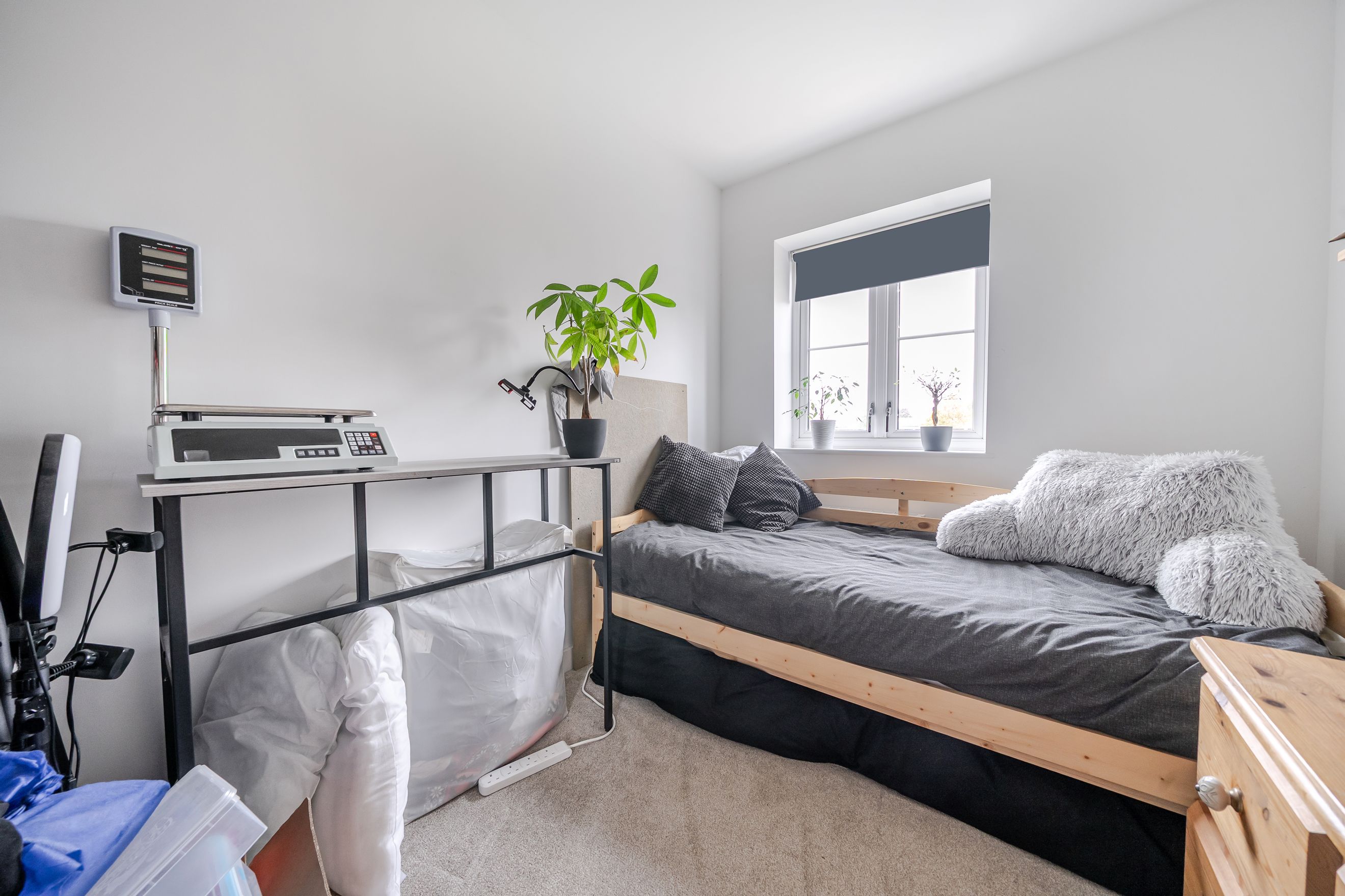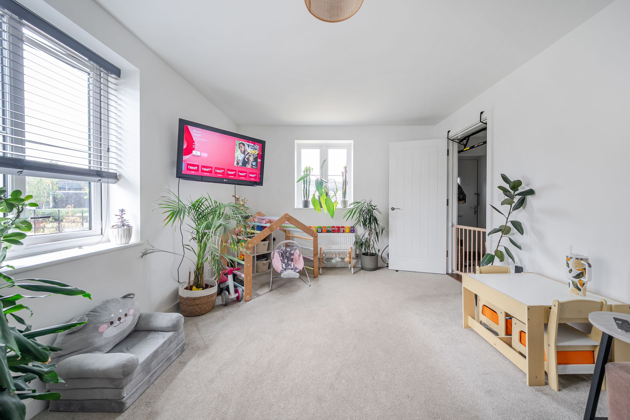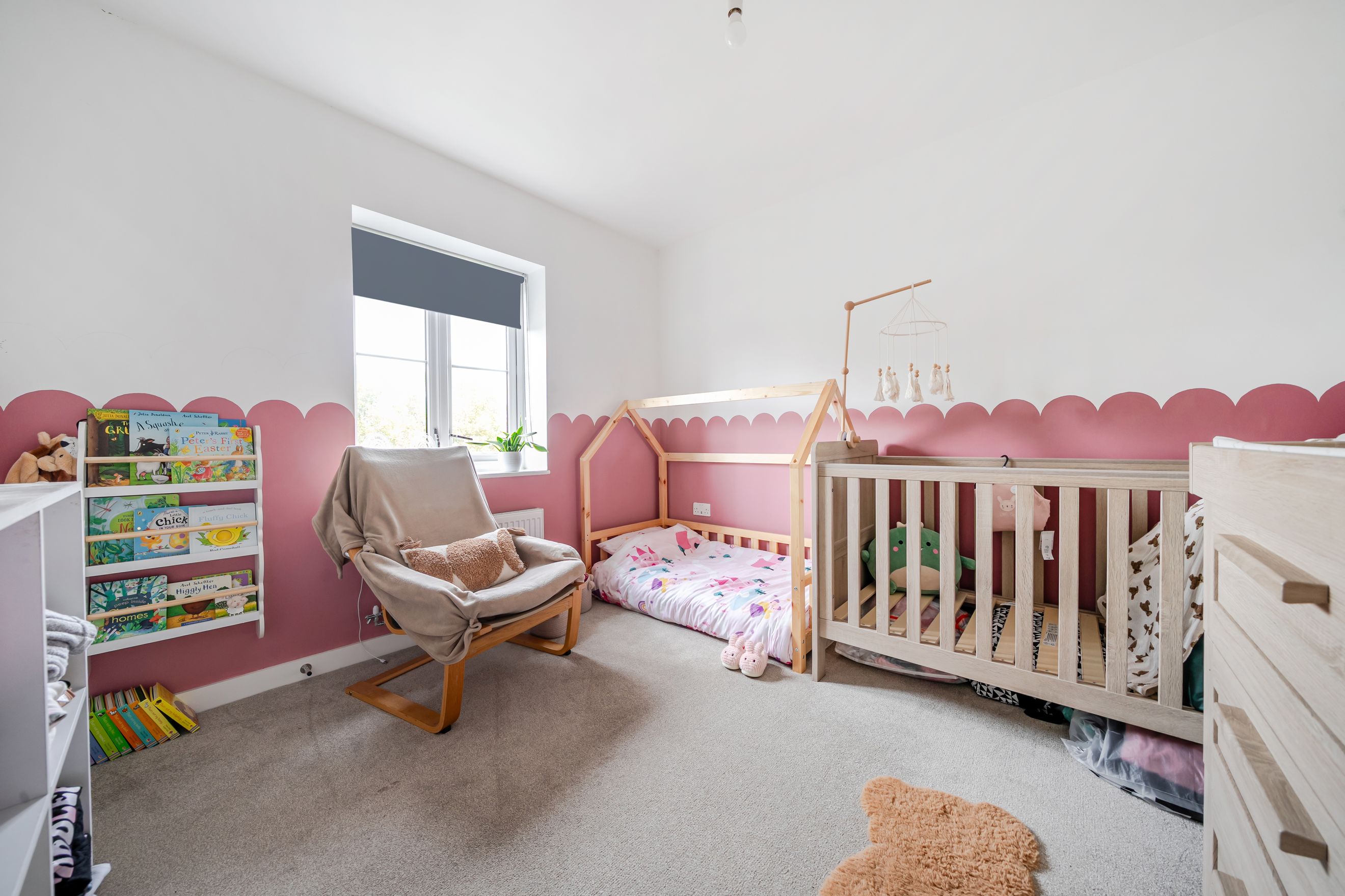 Upstairs, you’ll find three well-proportioned bedrooms. The principal bedroom offers a peaceful retreat benefitting from an en-suite, while the second and third bedrooms provide flexibility for a growing family, guests, or a home office. A sleek family bathroom features contemporary fittings and neutral tones, creating a calm, refreshing space.