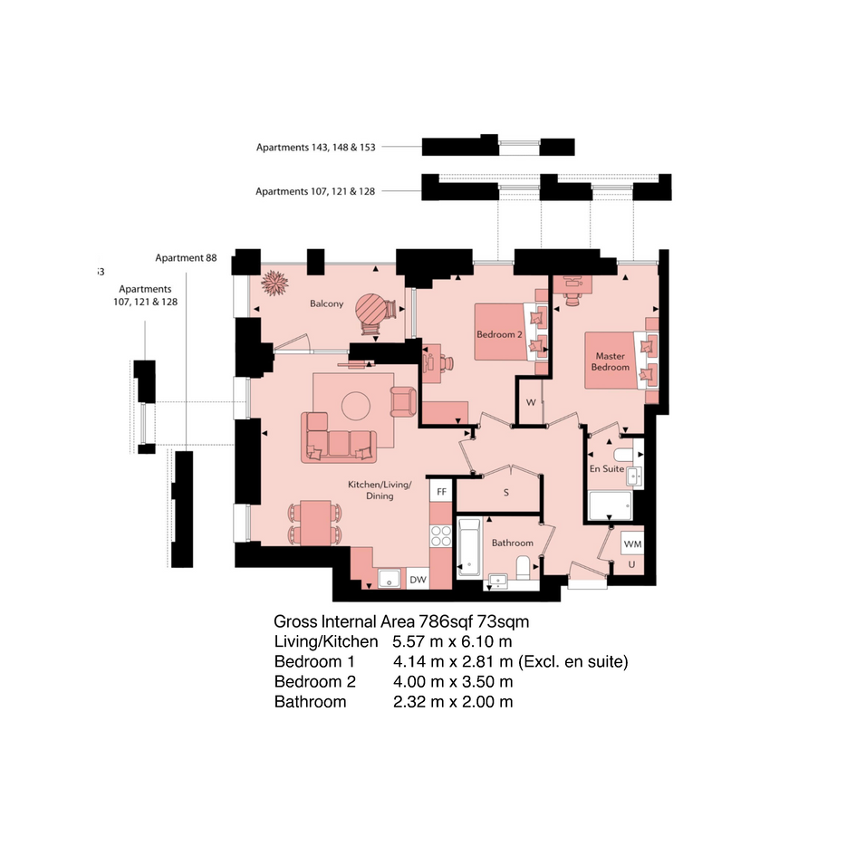 A fantastic 2-bedroom apartment with a private balcony on the 7th floor of a modern development in Abbey Wood.