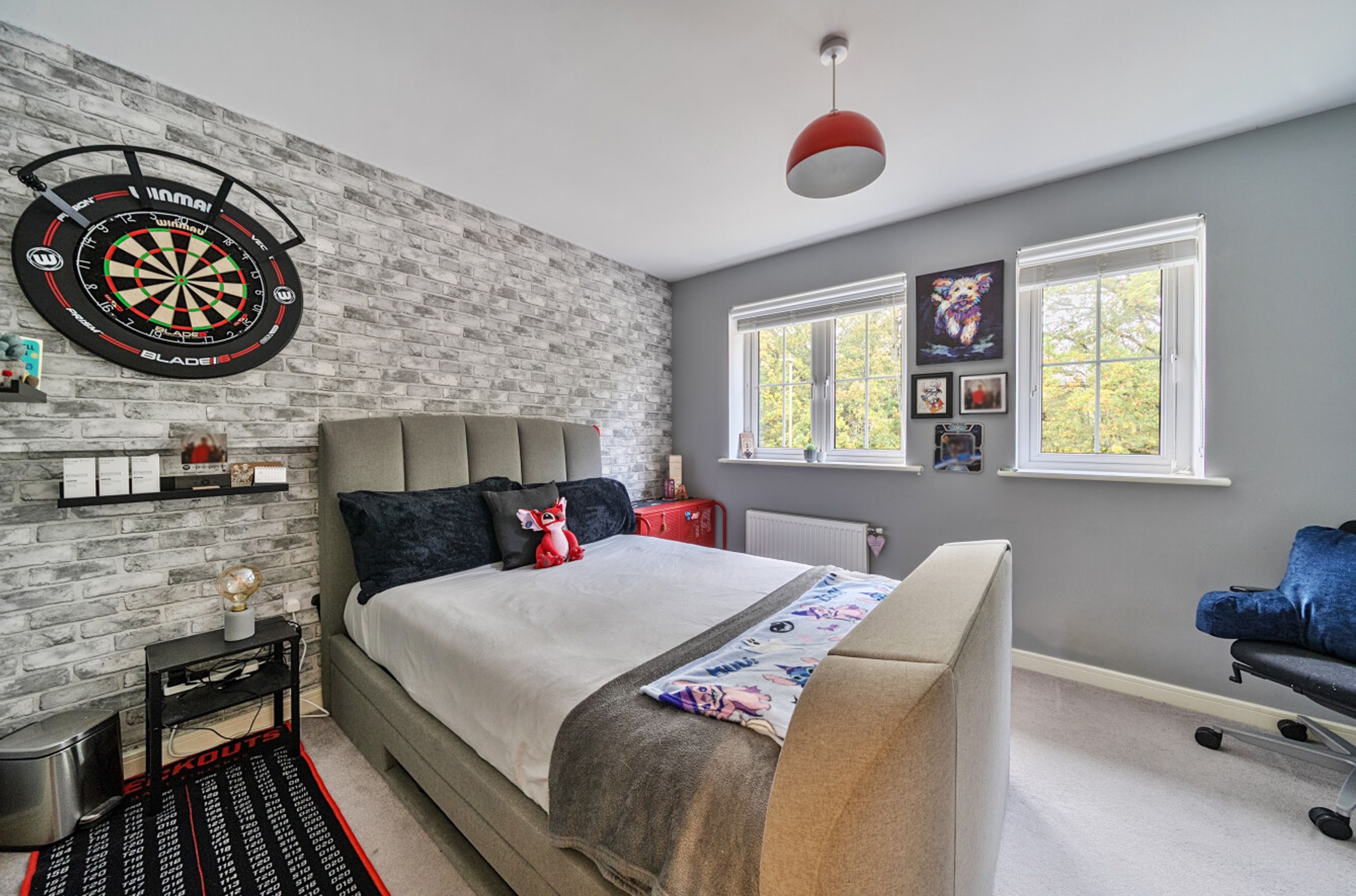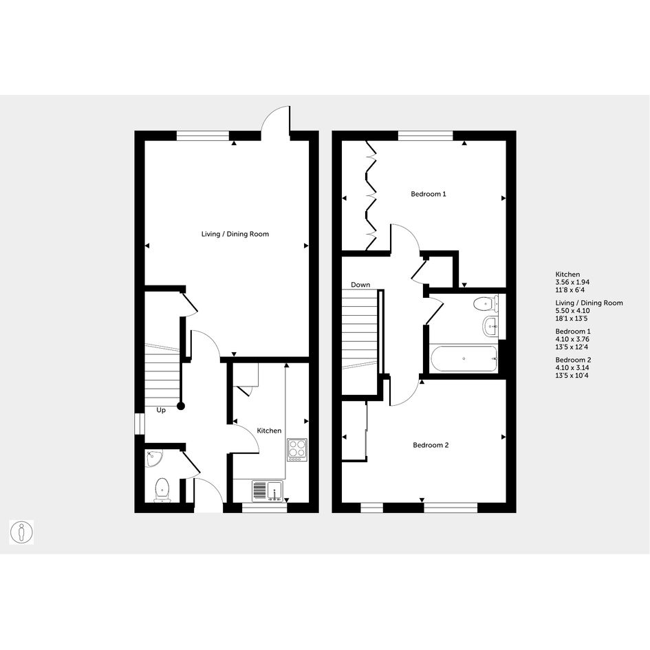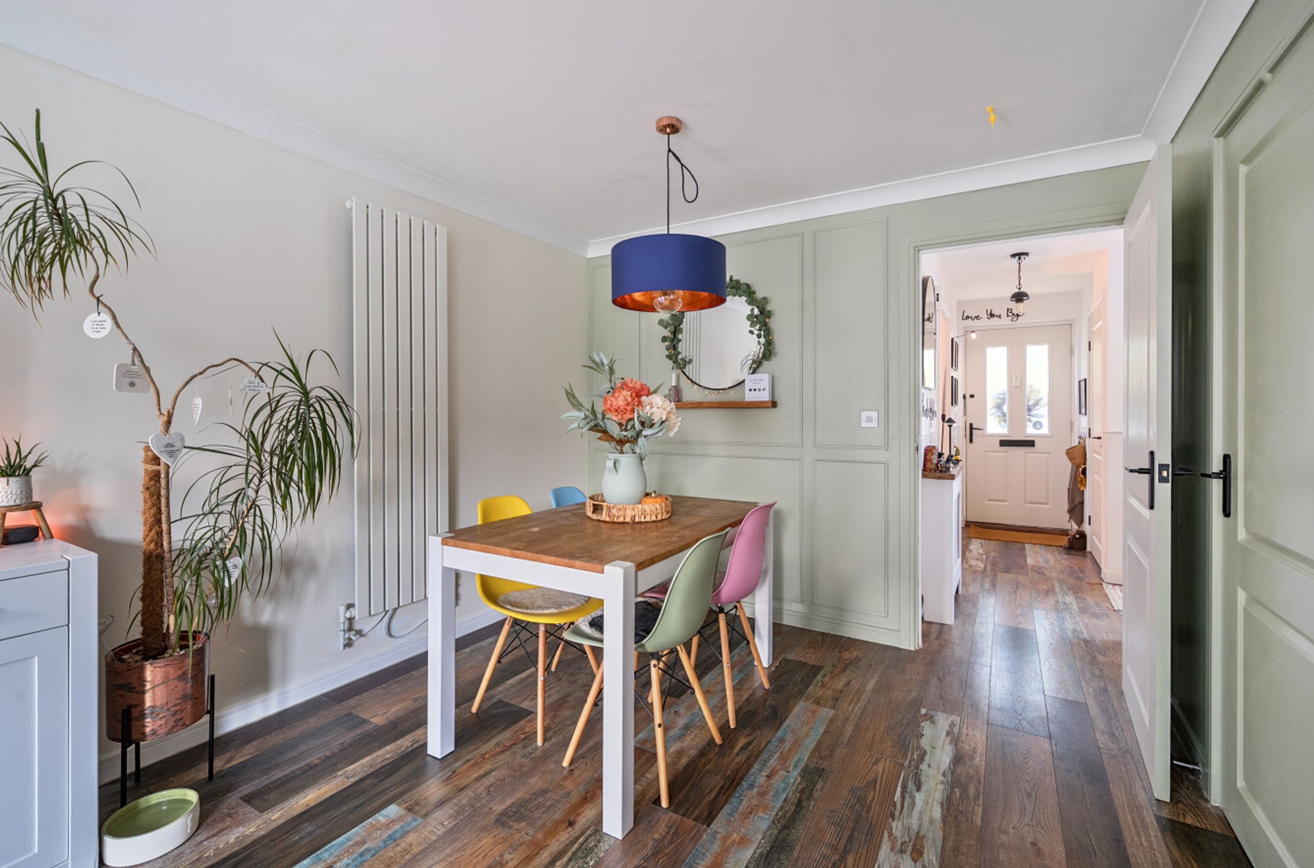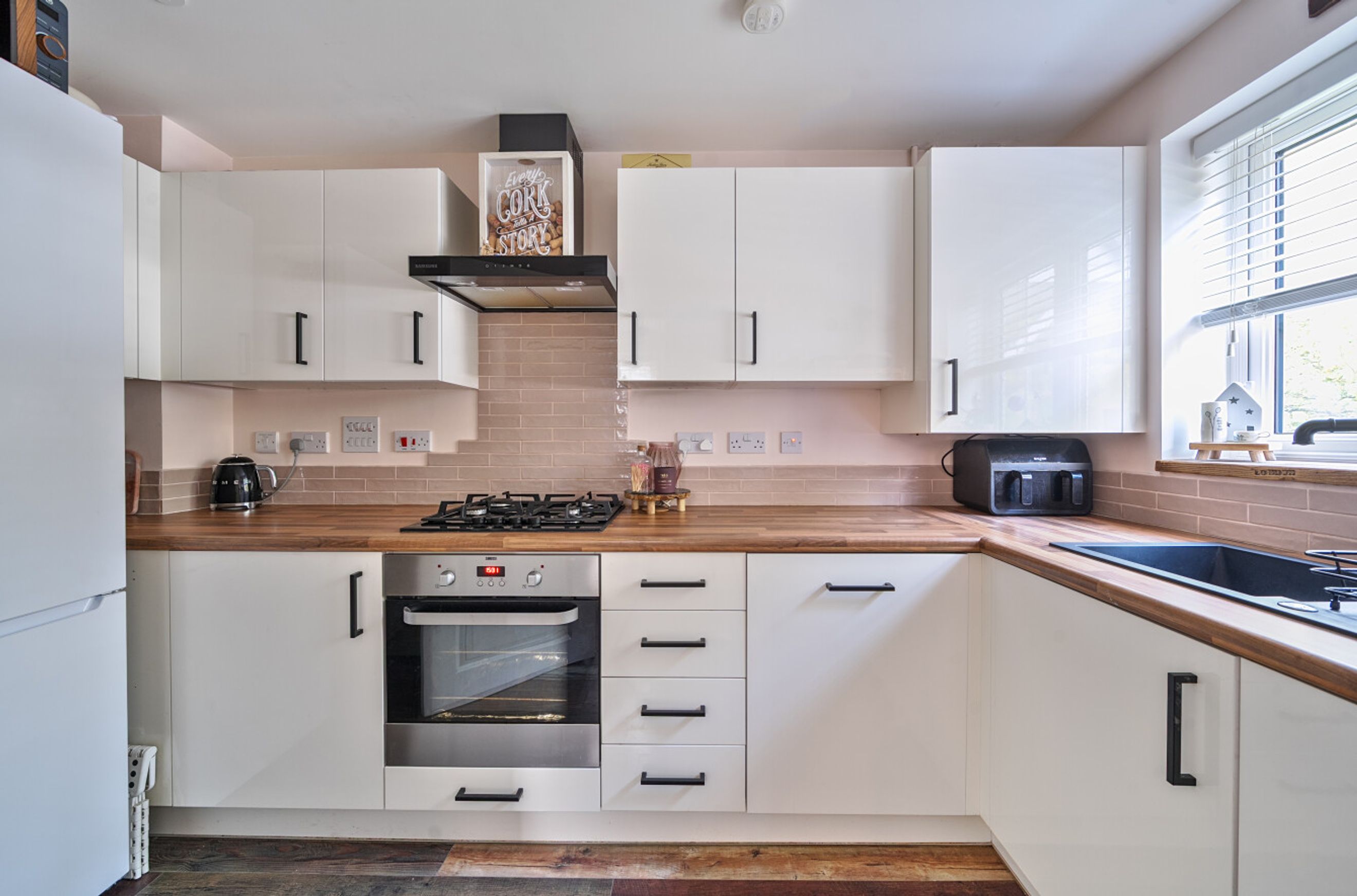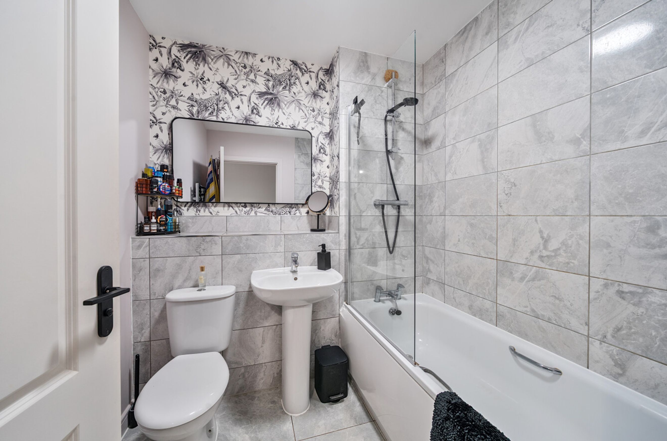 Upstairs, there are two comfortable double bedrooms, both with built-in wardrobes. The bathroom has a modern, white suite.