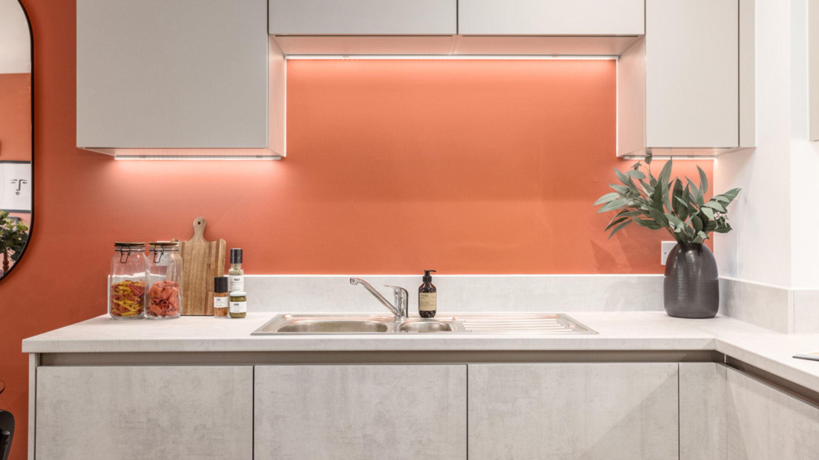 * Contemporary kitchen with soft close doors and drawers and matching upstand