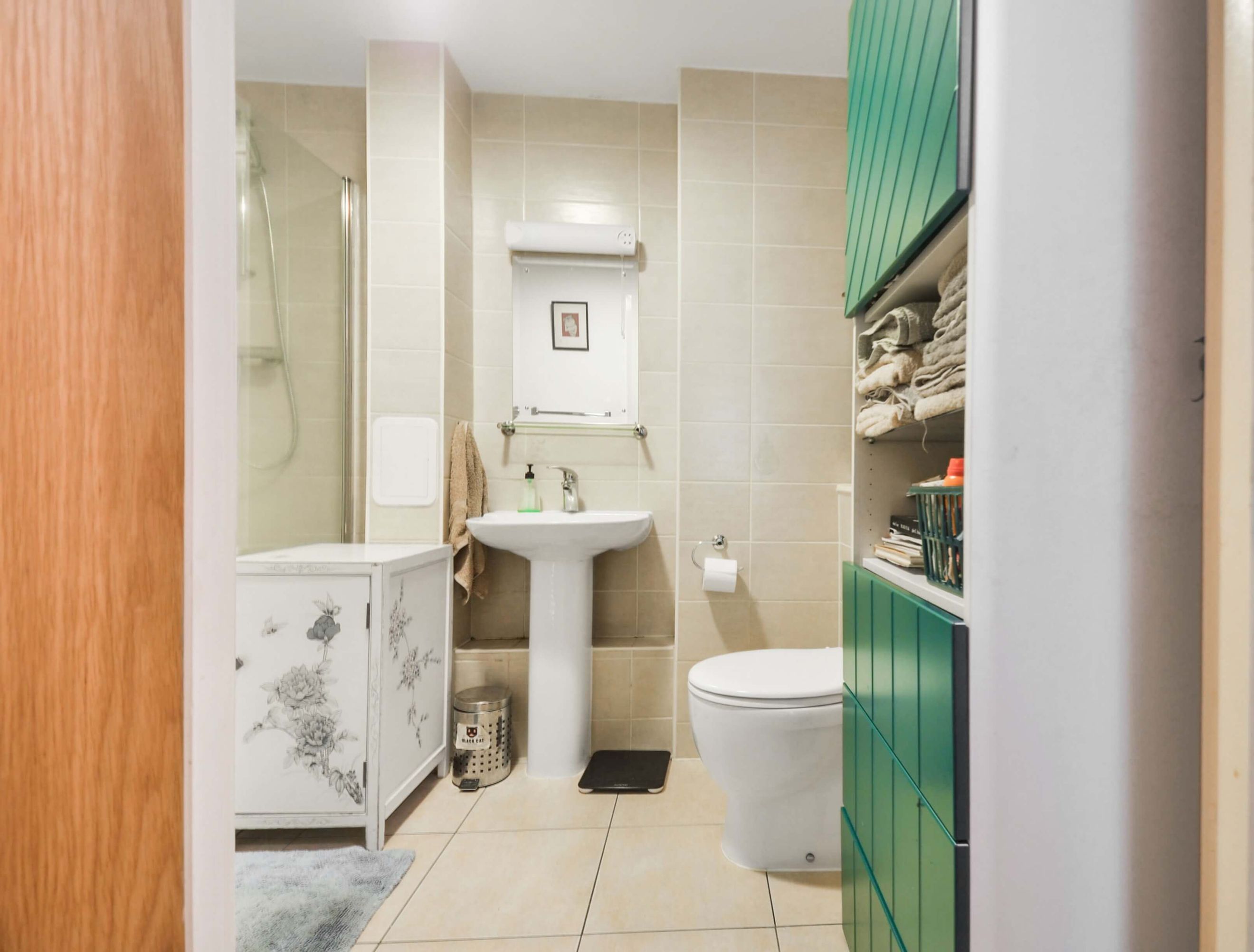 Saffron House presents a contemporary two-bedroom apartment perfectly suited for modern city living in the heart of Dalston. The property features floor-to-ceiling windows that fill the space with natural light, creating an open and spacious feel throughout. Both bedrooms are fitted with soft carpets, and the apartment benefits from central heating for year-round comfort. The private balcony offers an ideal spot for morning coffee or evening relaxation. Additional highlights include a video phone entry system for enhanced security and secure bike storage, ideal for those embracing east London’s cycling culture.