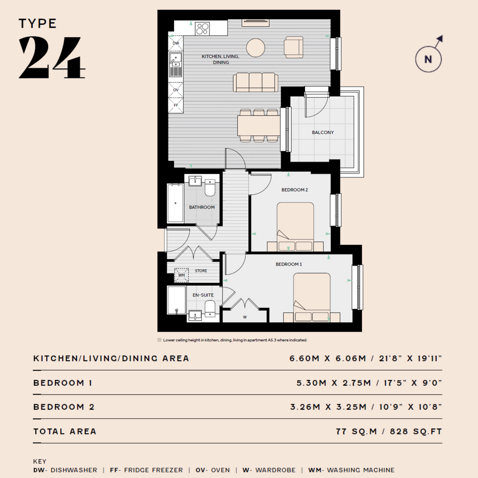 A spacious 829 sq ft two-bed fourth-floor Shared Ownership apartment with a private balcony overlooking the communal garden. The open-plan kitchen, dining and living area (6.60m x 6.06m) offers ample room to create distinct zones for relaxing, dining and entertaining. North-east facing windows fill the space with morning light, creating a bright, welcoming atmosphere.