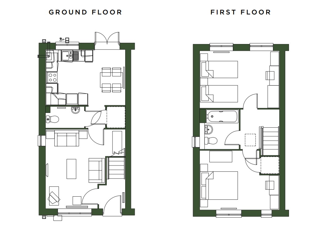 The ground floor of The Whitley consists of a spacious living area, a downstairs WC and a large, open-plan kitchen/dining space, which features French doors connecting you to the private turfed garden.
