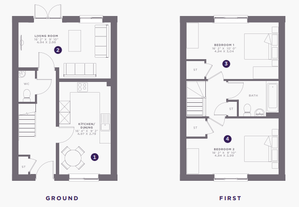 The Cooper is a two bedroom Semi-detached home within the Ashbrook development, Available through Shared Ownership.