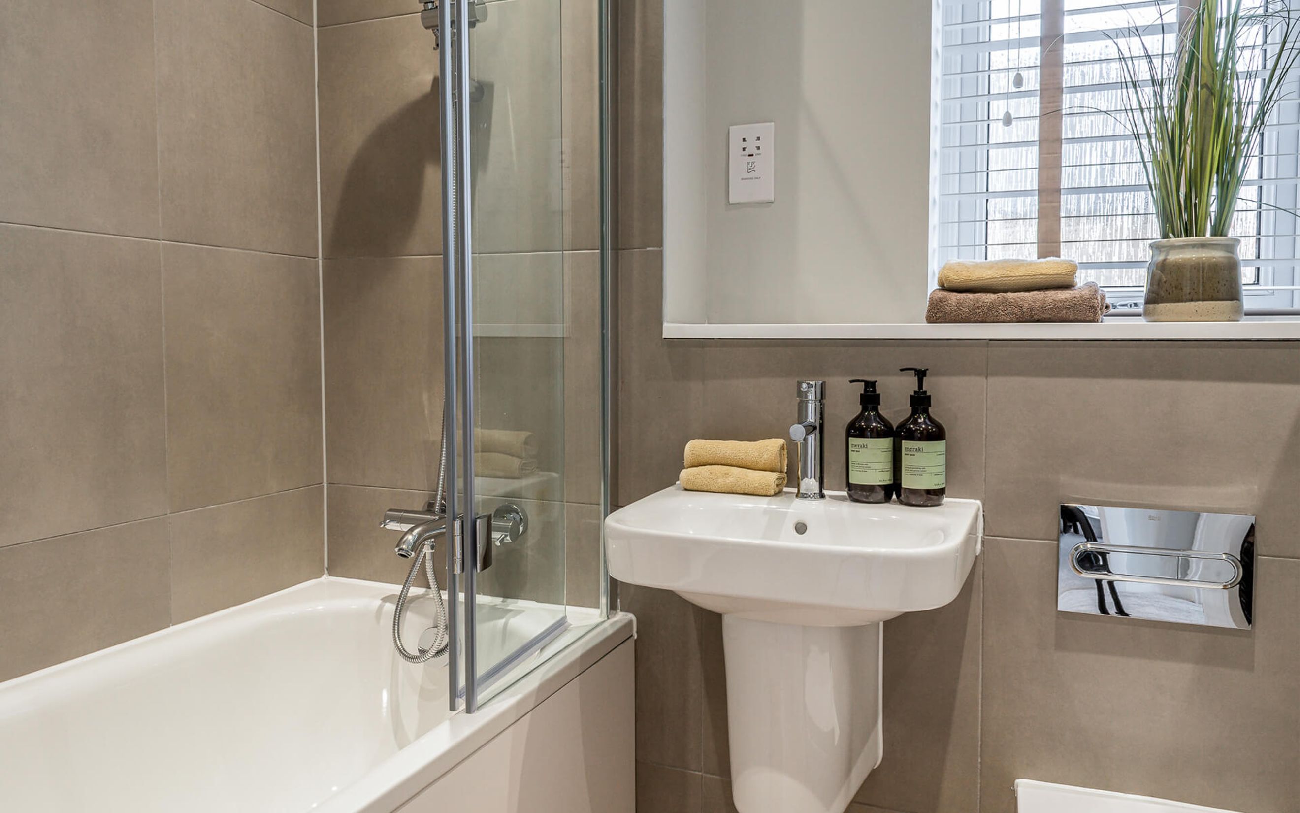 Upstairs, the main bedroom features a built-in wardrobe and en suite shower room. There are two further bedrooms; a double and a single. The family bathroom is fitted with contemporary white sanitaryware and heated chrome ladder radiator, and benefits from both a bath and a separate shower cubicle.