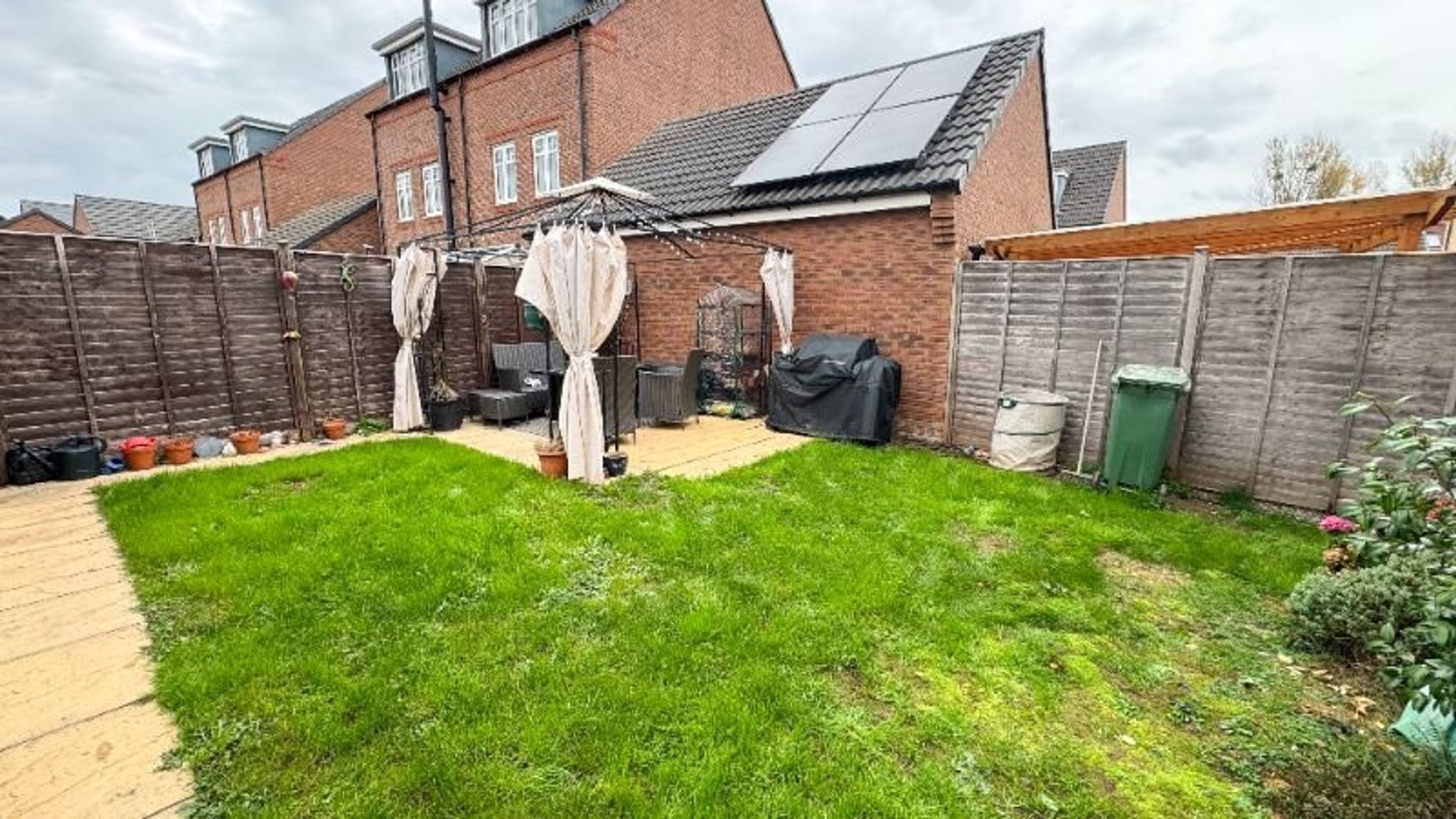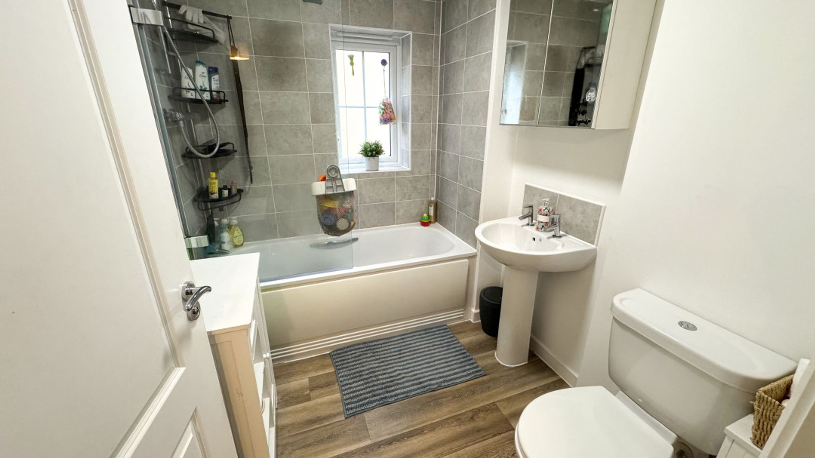 Upstairs, you'll find a generously sized main double bedroom at the front of the property, alongside a second double bedroom and a cosy single bedroom both overlooking the garden. The family bathroom, also finished with sleek laminate flooring, is conveniently located between all three bedrooms, making mornings a breeze.