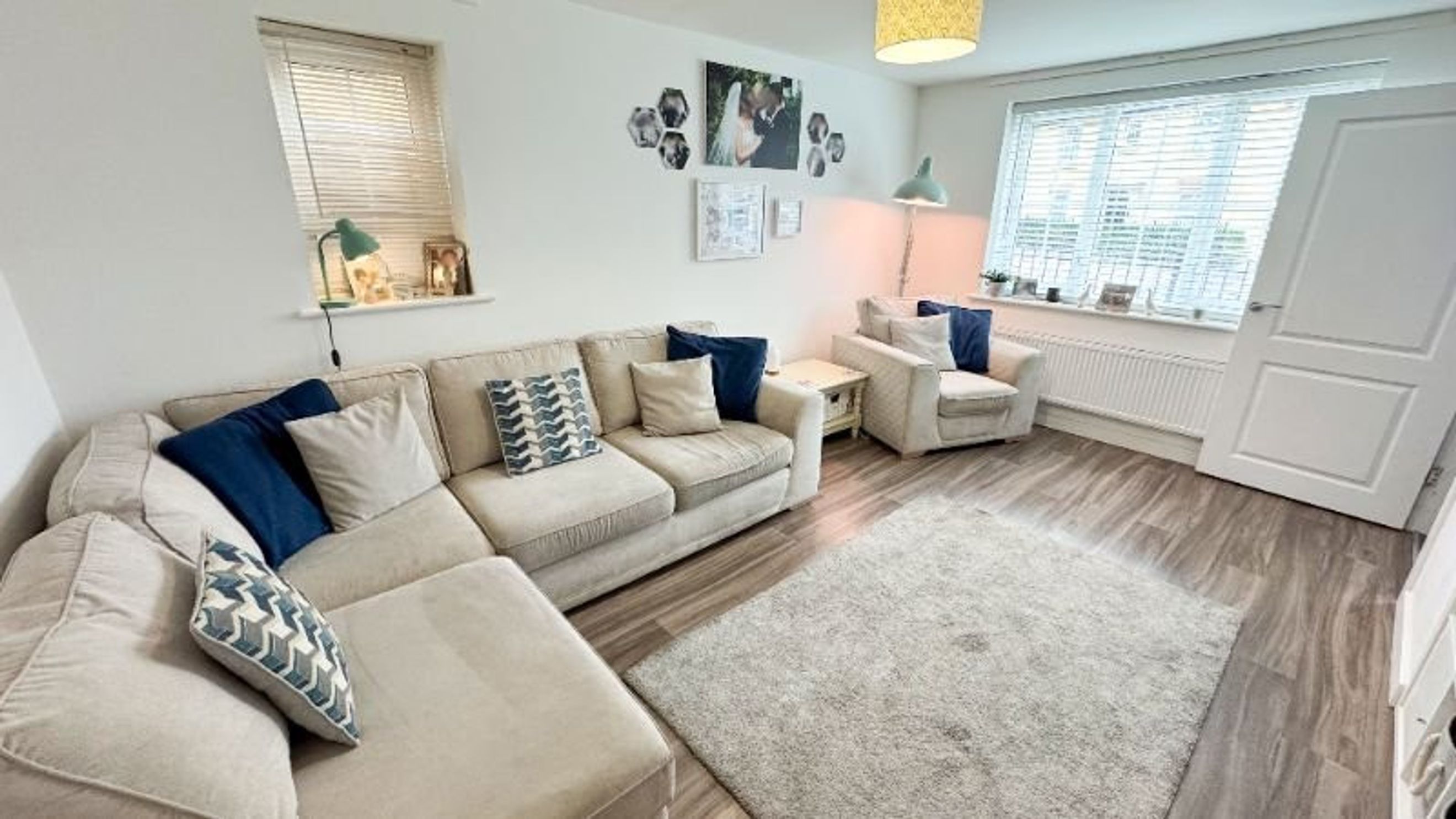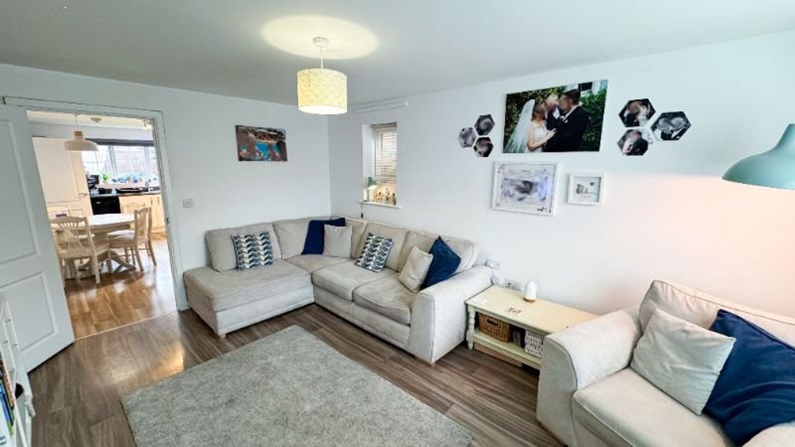 Step into a welcoming entrance hall with soft carpet underfoot, setting the tone for the cosy feel that continues up the stairs and into all three bedrooms. The bright and airy living room, finished with stylish laminate flooring, flows seamlessly into a spacious kitchen/diner - perfect for family meals or entertaining friends.