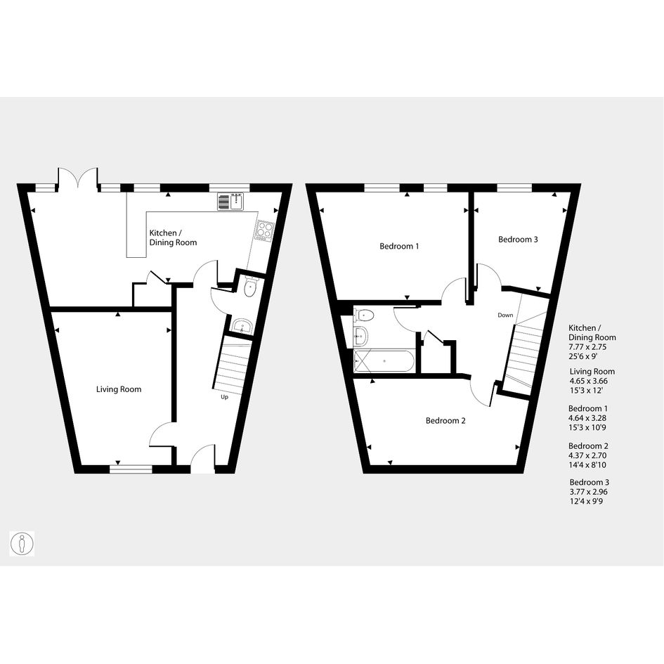 Upstairs, there are three comfortable bedrooms. The bathroom has a modern, white suite.