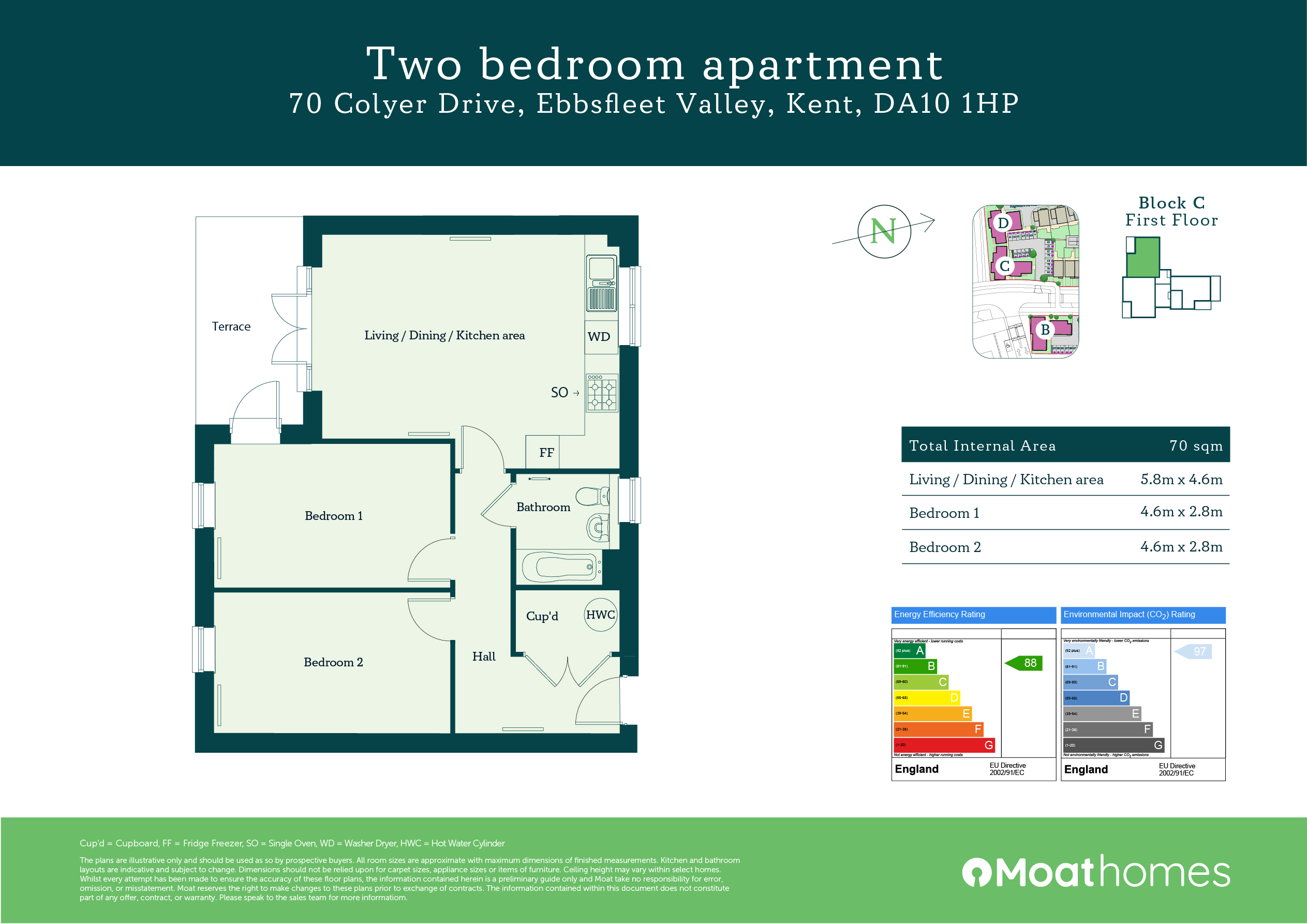 Both bedrooms are generously sized, offering flexible layouts to suit your needs, while the modern bathroom is finished with high-quality fixtures and fittings. With an allocated parking space conveniently located nearby and an energy-efficient design throughout, this is a home built for comfort, convenience, and sustainability.