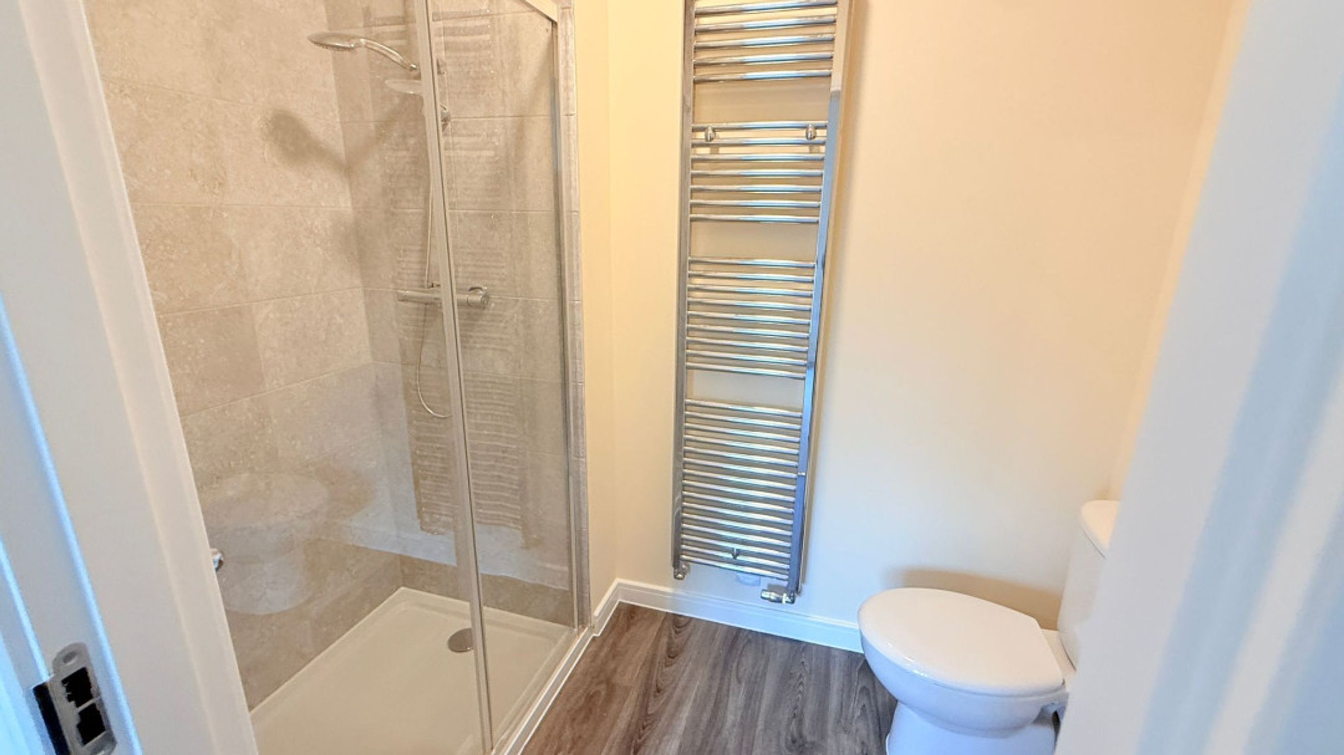 Upstairs, the landing leads to a further storage cupboard, a modern bathroom and 2 bedrooms. Both bedrooms are generous double rooms, and bedroom 1 benefits from an ensuite.
