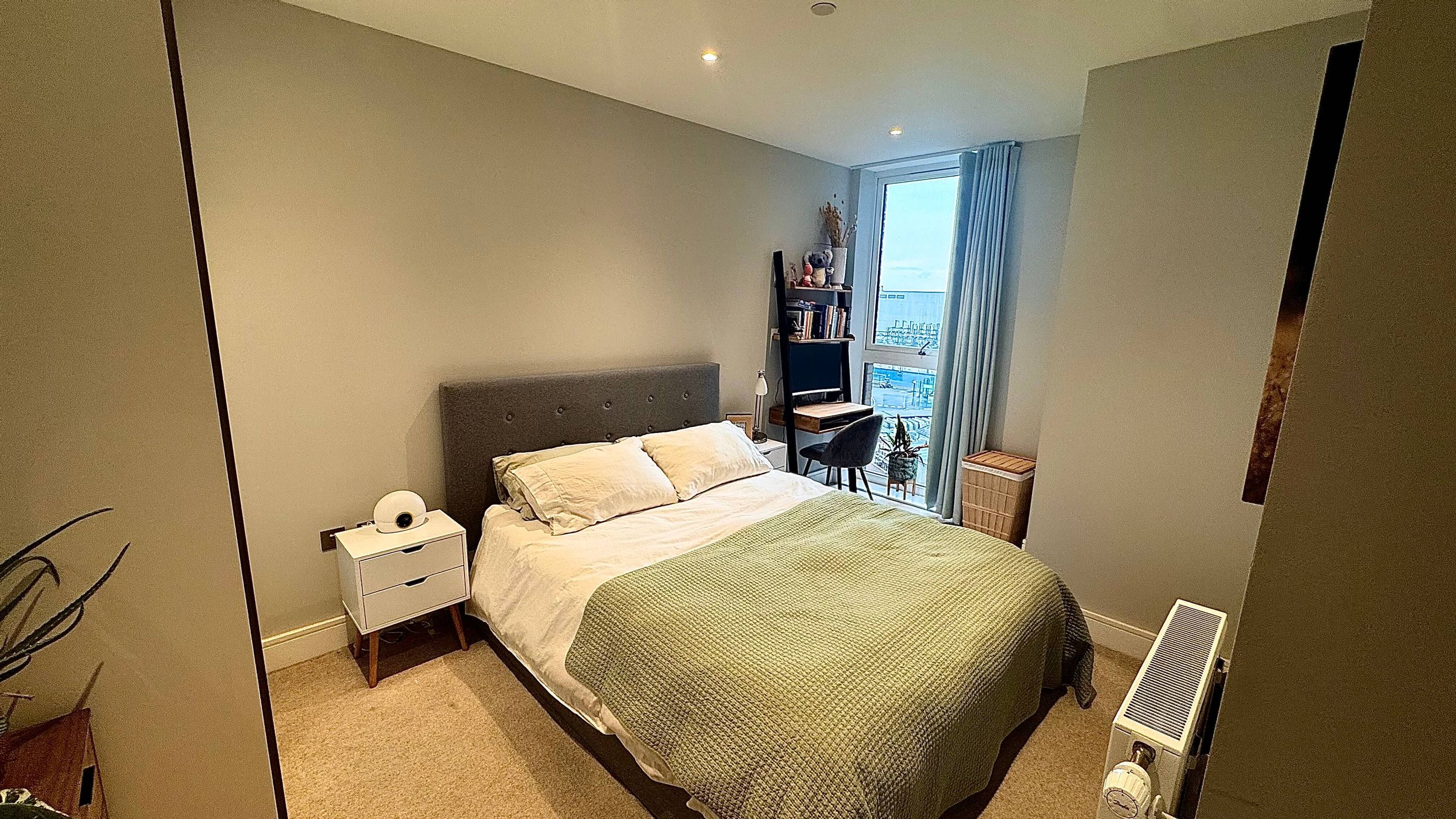 Located in a contemporary development in the heart of Earlsfield, this beautifully presented 1-bedroom, 1-bathroom apartment offers stylish and modern living. The property features a spacious open-plan living and kitchen area with floor-to-ceiling windows, flooding the space with natural light and leading onto a private terrace, perfect for morning coffee or evening relaxation. The sleek kitchen comes fully equipped with integrated appliances, while the bedroom includes a fitted wardrobe providing ample storage. The apartment also benefits from underfloor heating, a concierge service, 24-hour security, and access to a secure underground bike store.