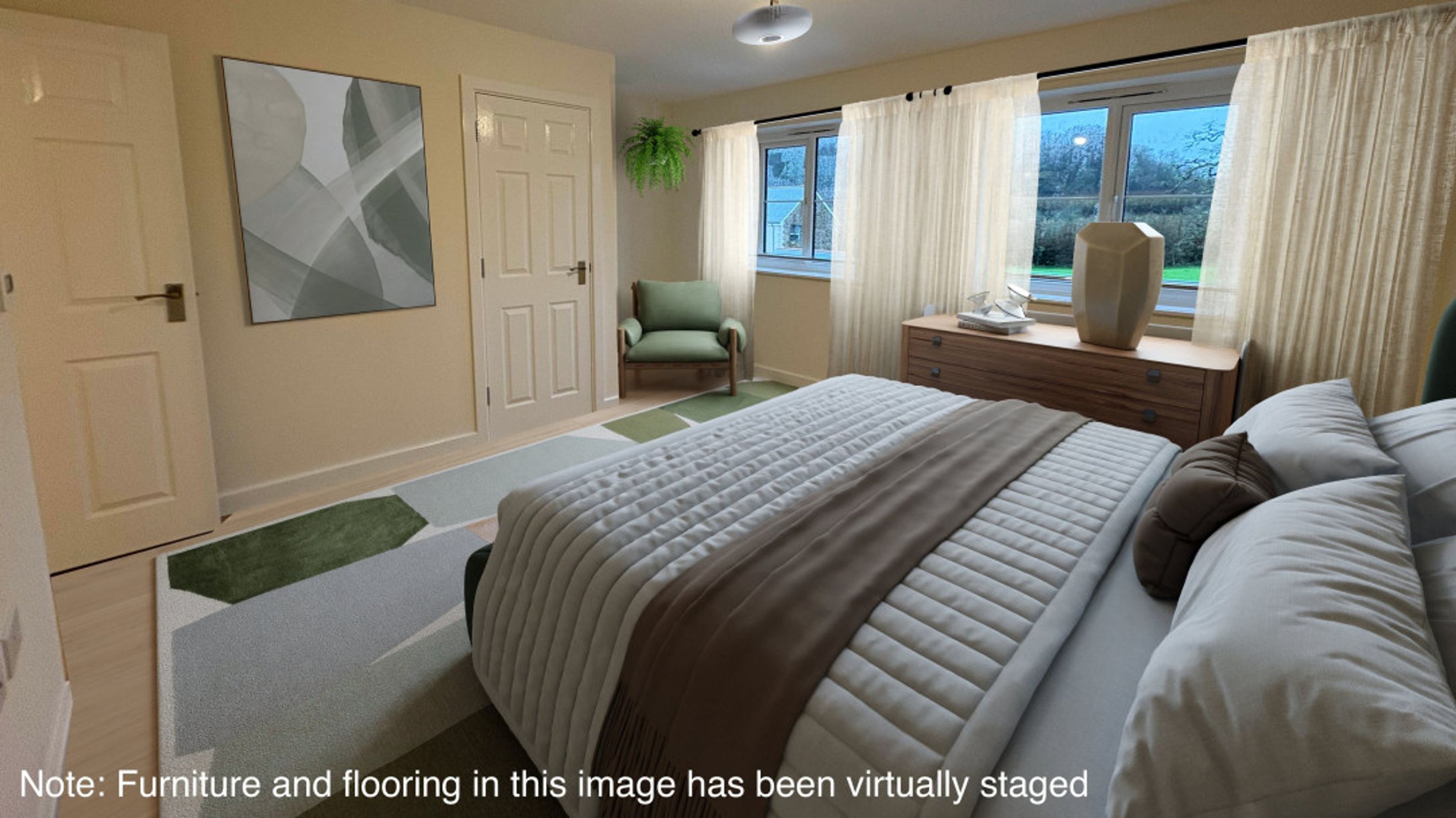 Disclaimer: Images may be computer-generated and are for illustrative purposes only, so may not be representative of exact plots or the building. Photos are for guidance only and may not show properties accurately. Photos are representative of style and finish which may be available on the development or building. This includes that the colours of the building may be different. Individual specifications may vary including that fittings and features may be different to those pictured. This includes differences in building materials, windows, doors, brick, carpet, paint, driveways, roads, plants, greenery, fencing, doors and guttering. Any furnishings are not included in any sale or let, but are for illustration only. Homes may be detached, semi-detached or mid terrace, please speak to a sales officer for further information. Homes may or may not have a garage or shed, please speak to a sales officer for further information. Floor plans and images are not to scale and are indicative only. Location of windows and doors may differ. Dimensions should not be used for carpet or flooring sizes, appliances spaces or items of furniture. Please note, some plots may be handed (which means that the layout may be a mirror image of the plan shown above). The layout of bathrooms and kitchens may change. Doors may swing in the opposite direction to that shown on selected houses. Please speak to a sales officer for further information.