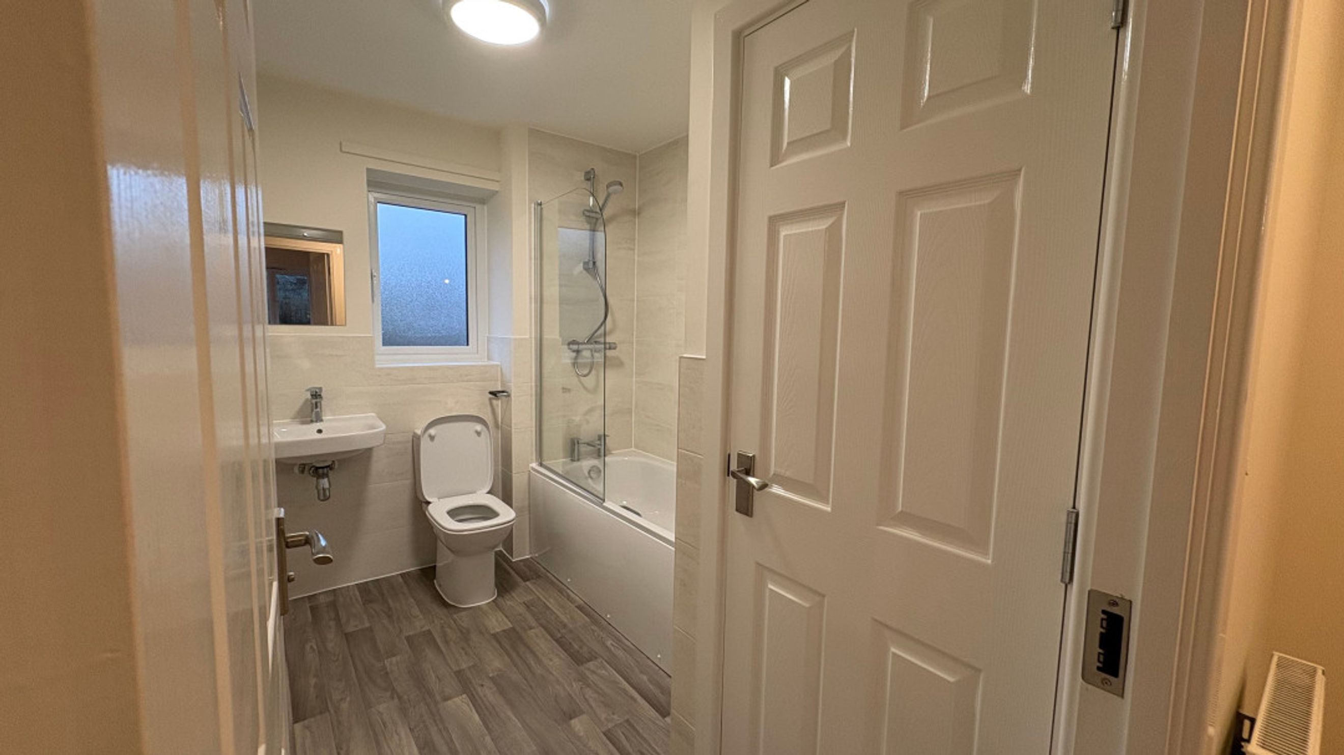 Upstairs, you'll find two bedrooms, a family bathroom with a shower, and a useful storage cupboard.