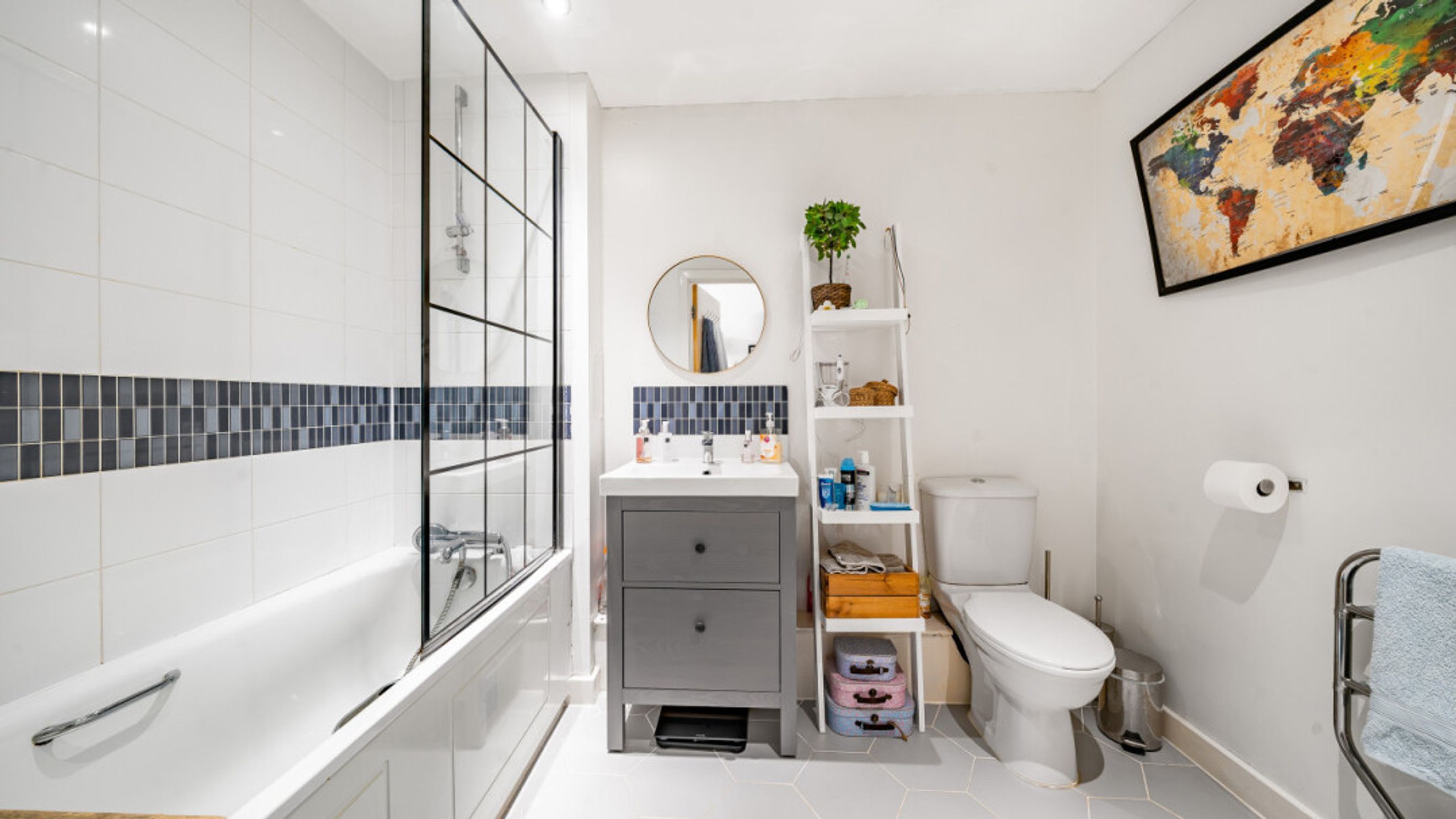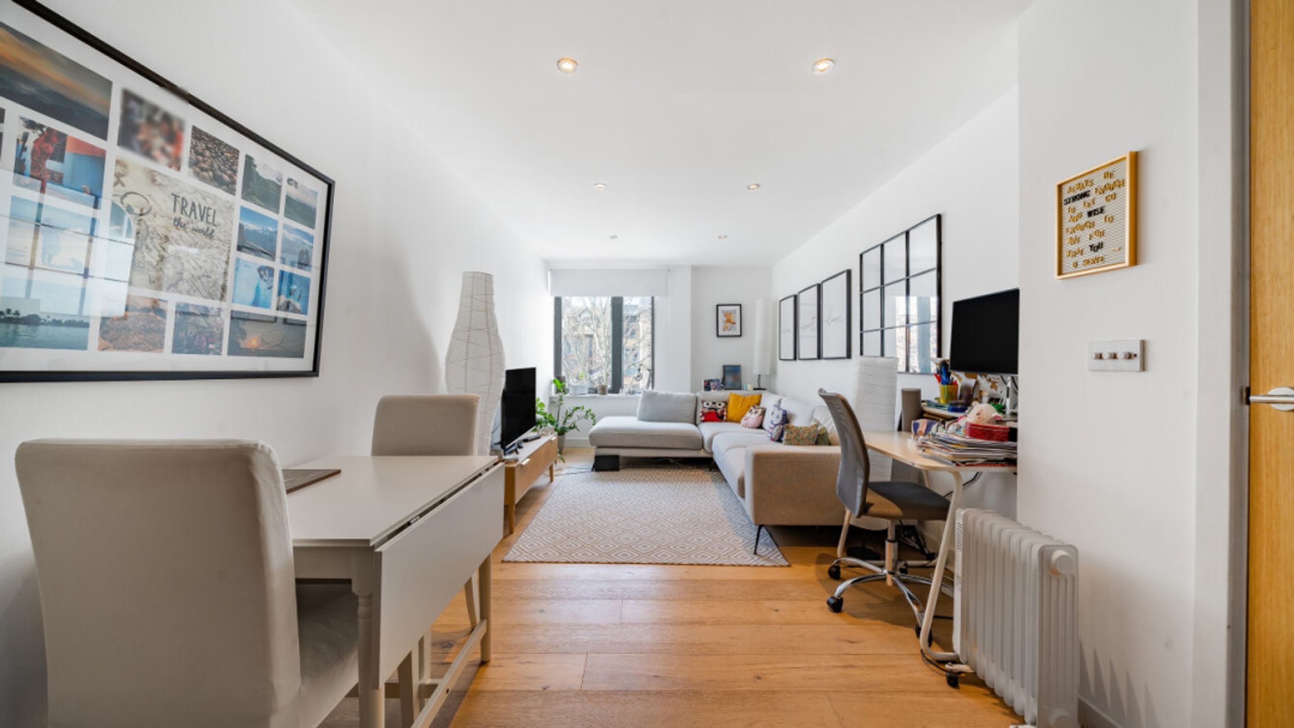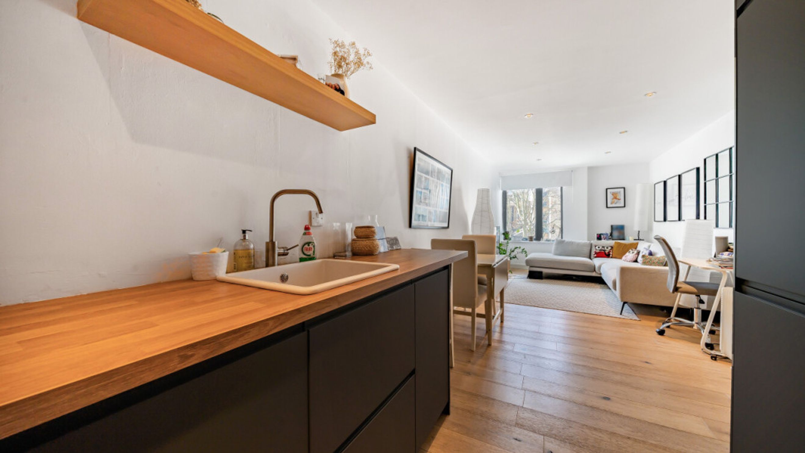 This bright and spacious one bedroom apartment consists of a stylish open-plan kitchen and living area, flooded with natural light. The kitchen is fitted with matt grey wall and base units, white wood effect worktop. The kitchen also benefits from integrated appliances including a fridge freezer, oven, hob and extractor fan. Spacious main double bedroom benefiting from built-in storage cupboards. The bathroom comes complete with a white three-piece suite with a shower over bath. Consists of modern white tiled and mosaic detail bordering. Stylish wooden flooring throughout the property expect for the bathroom.
