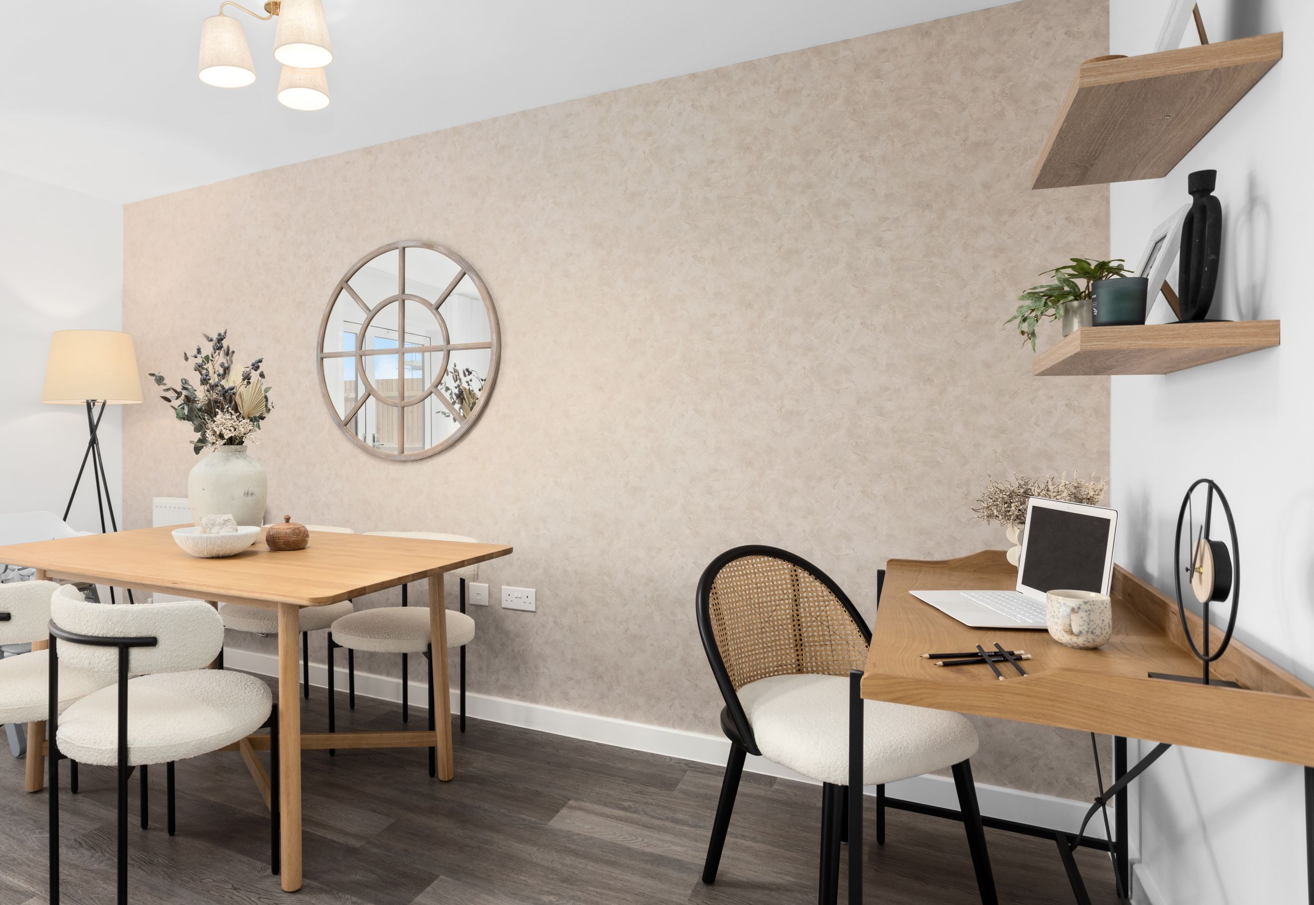 This contemporary and stylish home features a Symphony Hacienda kitchen finished with soft-close doors and laminate work surfaces with matching up stands. Boasting an integrated single oven, gas hob, fridge/freezer and washing machine. White ROCA sanitaryware within bathroom. Additionally, this home benefits from energy efficient central heating.