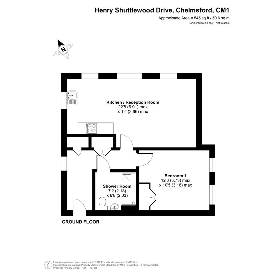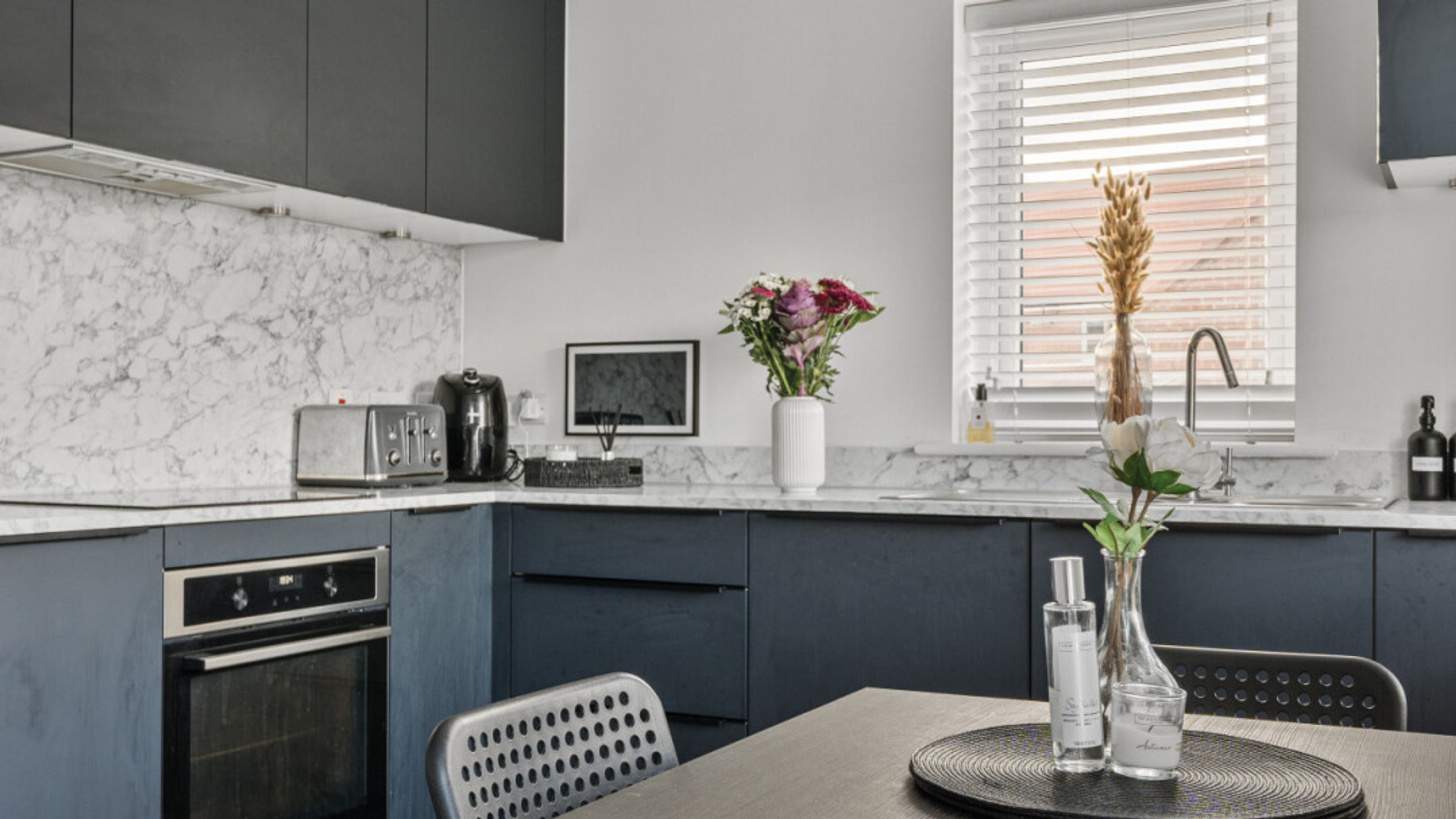 This apartment consists of an open-plan kitchen and living area, flooded with natural light. The kitchen is fitted with dark grey wall and base units, with stylish under-cupboard lighting, and a white gloss marble effect work surface and benefits from integrated appliances including a fridge freezer, double oven, hob, and extractor fan. The spacious double bedroom includes a fitted wardrobe. A contemporary bathroom and walk-in store complete the accommodation. Exclusive use of allocated parking bay.