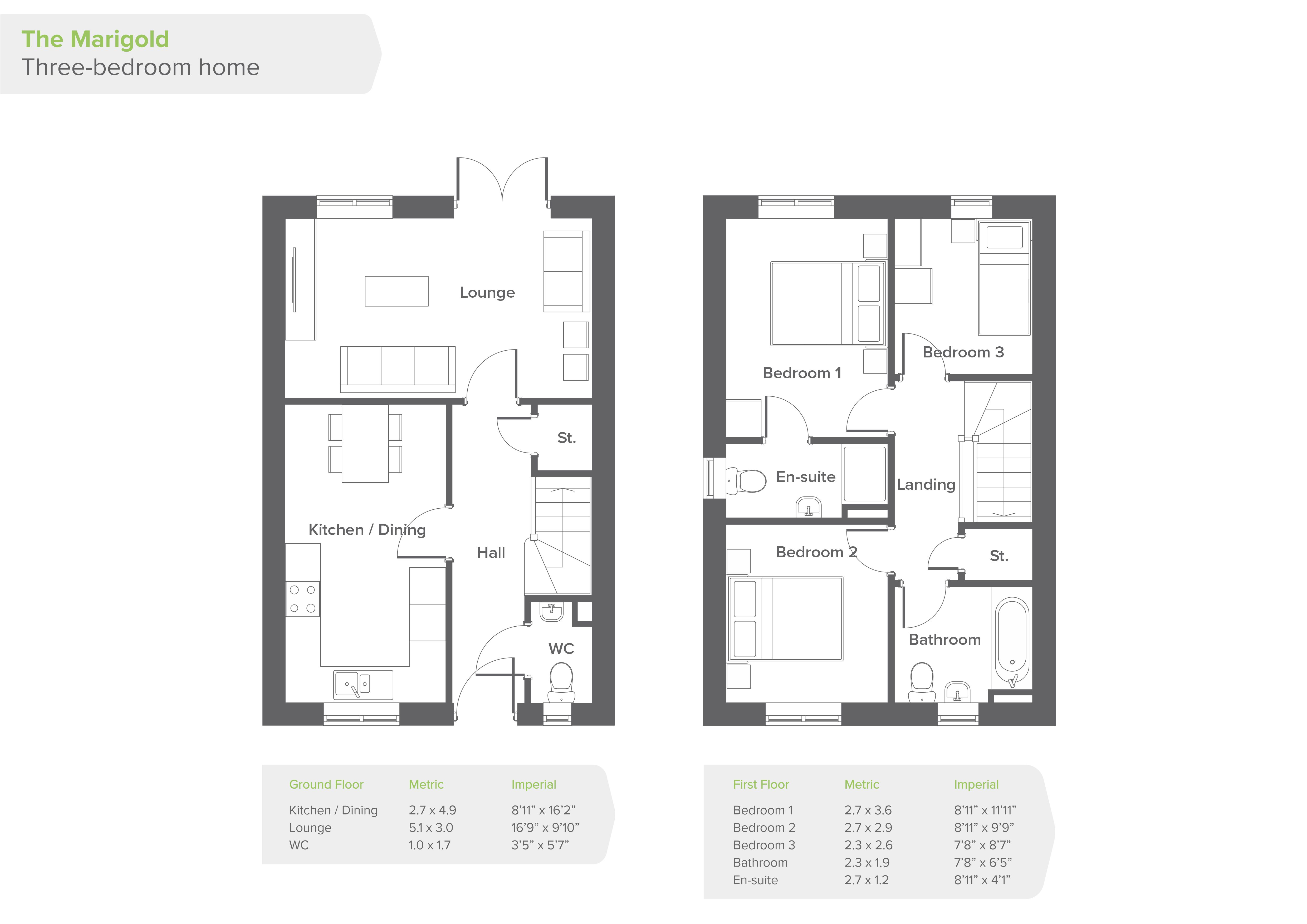 The first floor of The Marigold is made up of the sizeable master bedroom, complete with en-suite, a second double bedroom, and a third single bedroom. The stylish three-piece family bathroom suite comes with designer taps, tiling and an over-bath shower. There is also an additional storage cupboard.