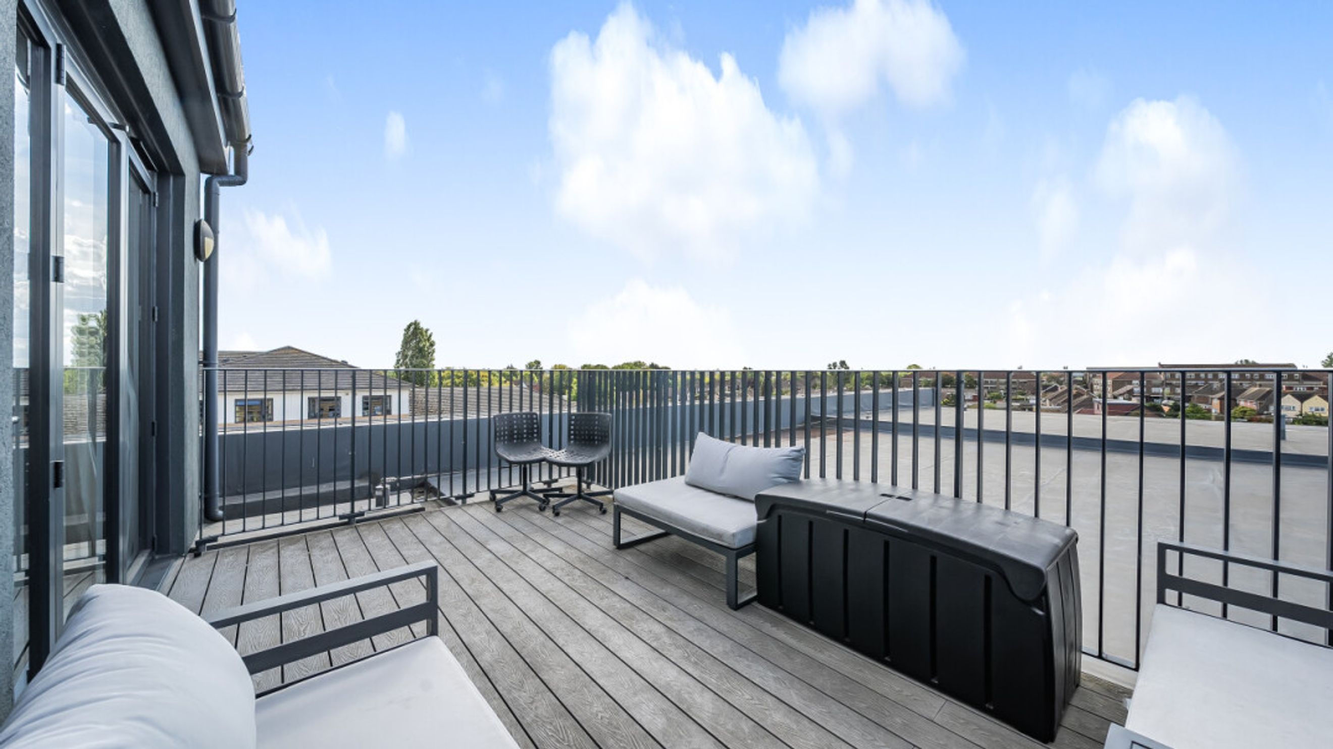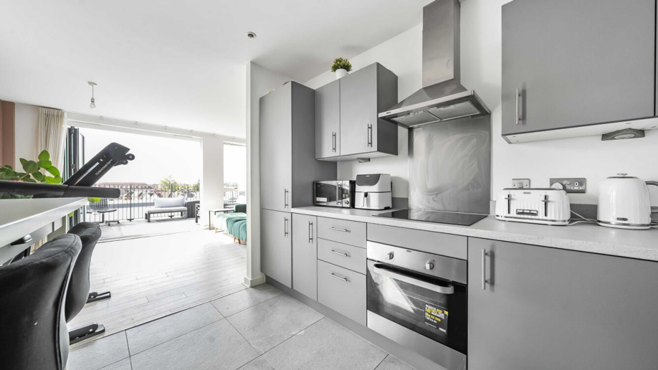 The apartment comes complete with integrated appliances including a fridge, induction hob, oven, and washing machine, making it ready to move straight into. Residents also enjoy access to a large rooftop terrace, providing the perfect space for relaxation and entertaining. Modern comforts such as gas central heating, communal lift access, and high-speed Hyperoptic broadband further enhance this property.