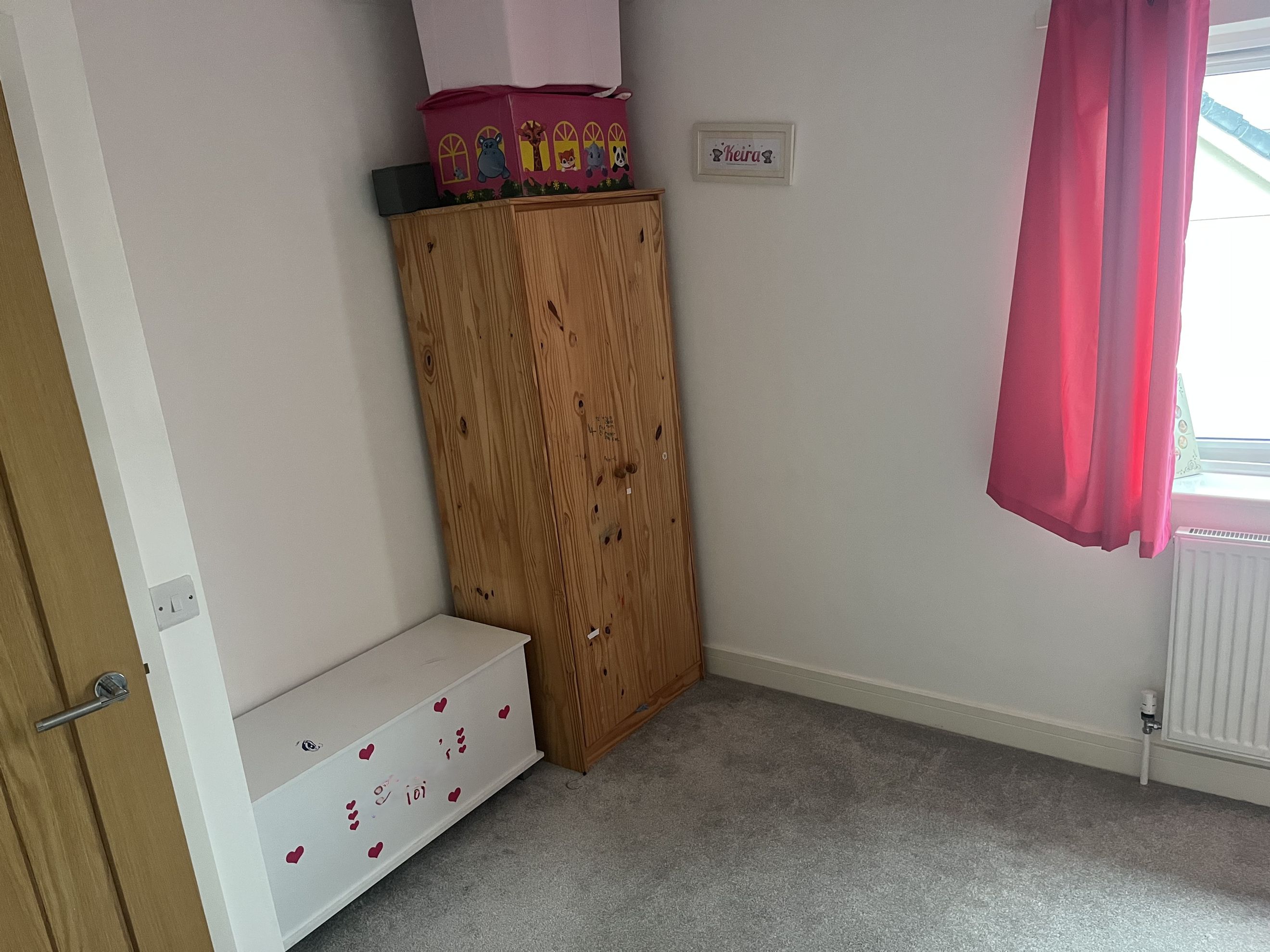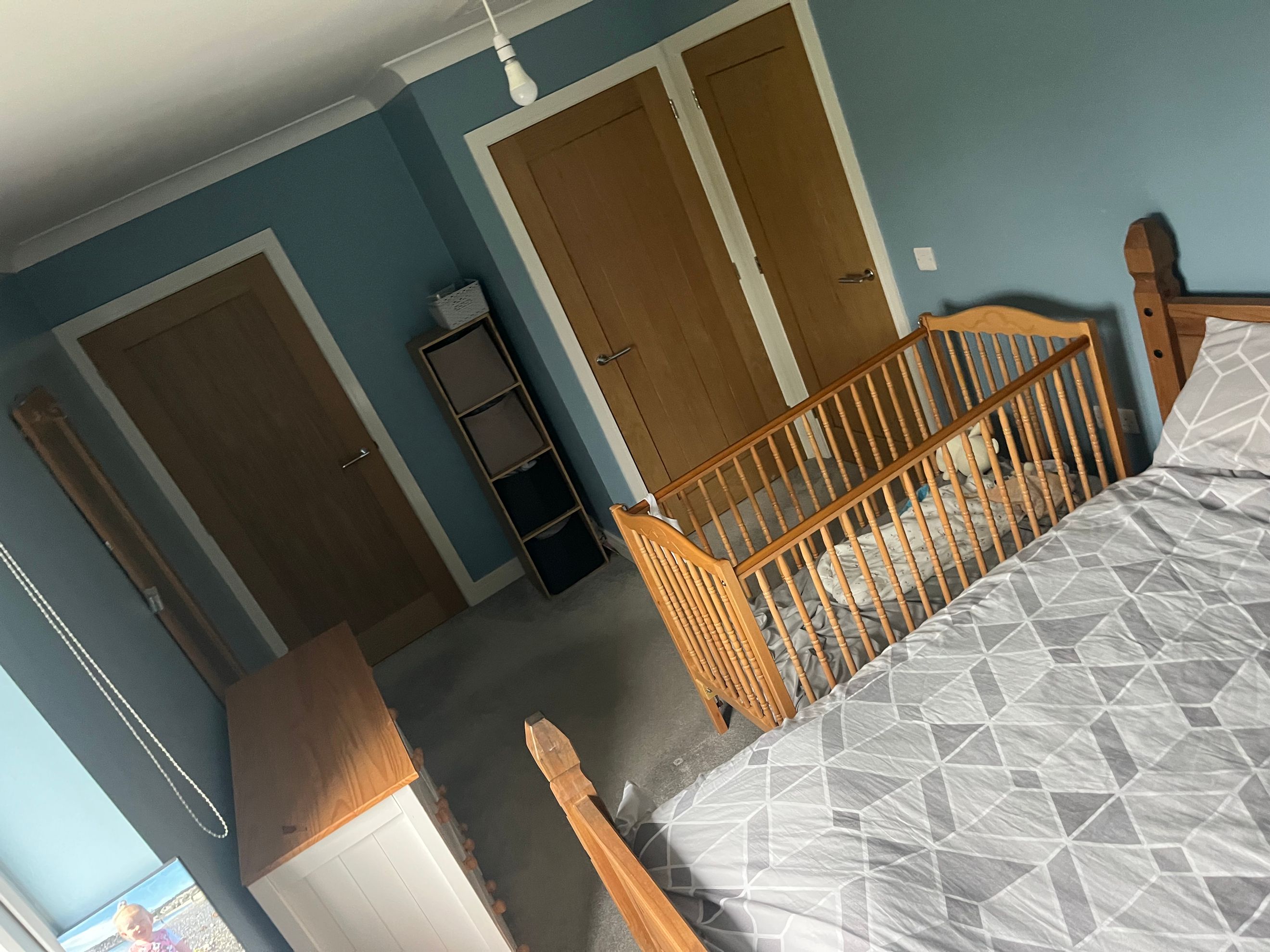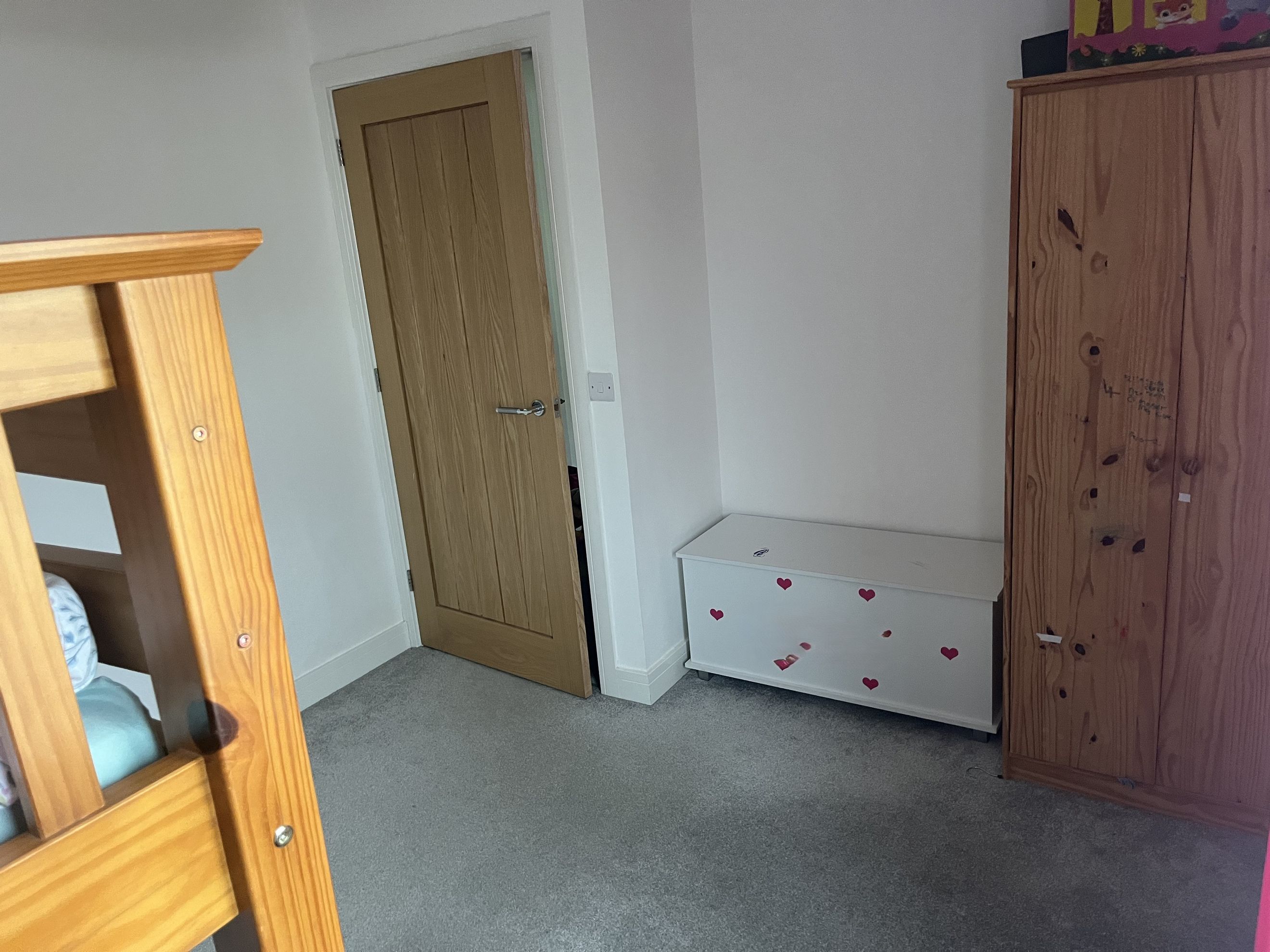 Bedroom 1 with 2 storage cupboards and overlooking the front of the house