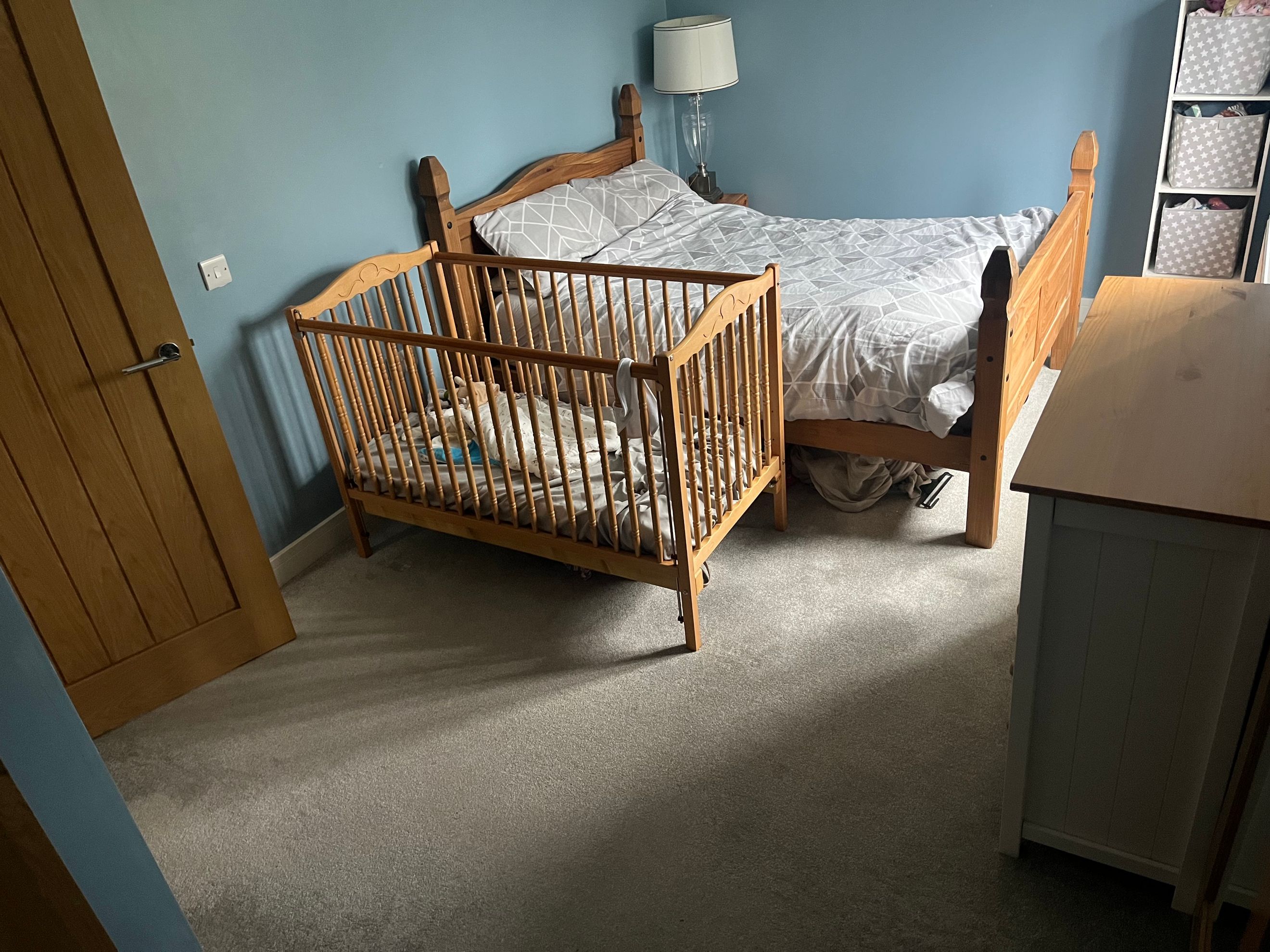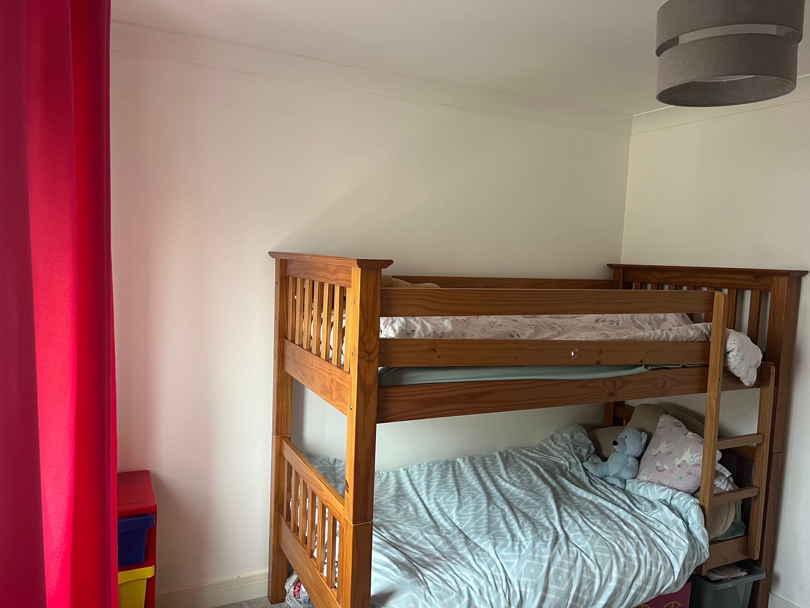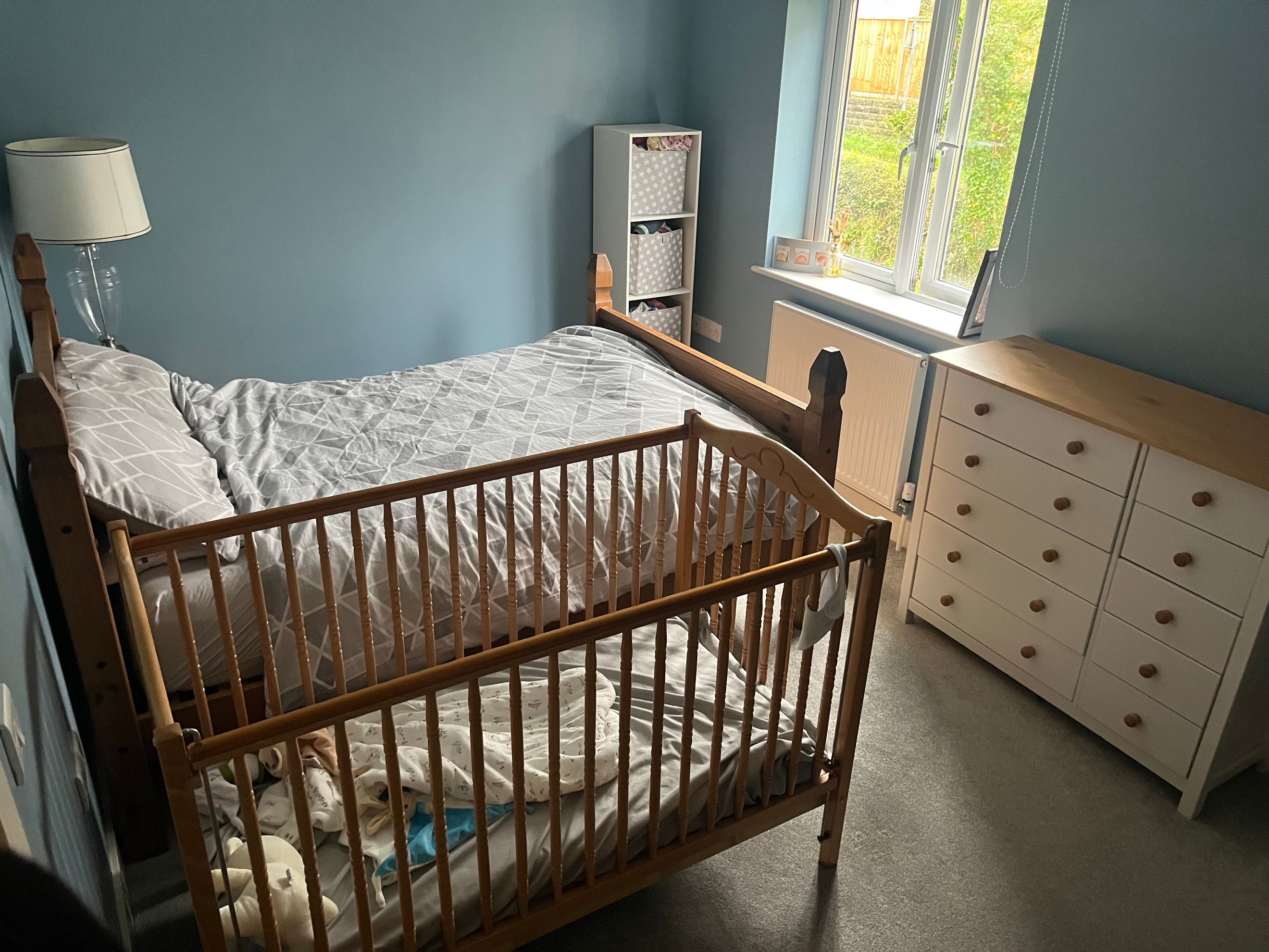 Bedroom 1 with 2 storage cupboards and overlooking the front of the house