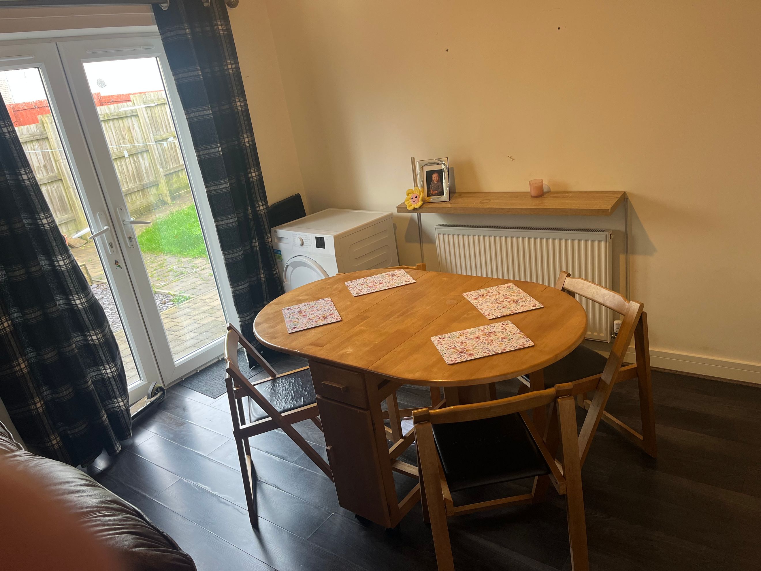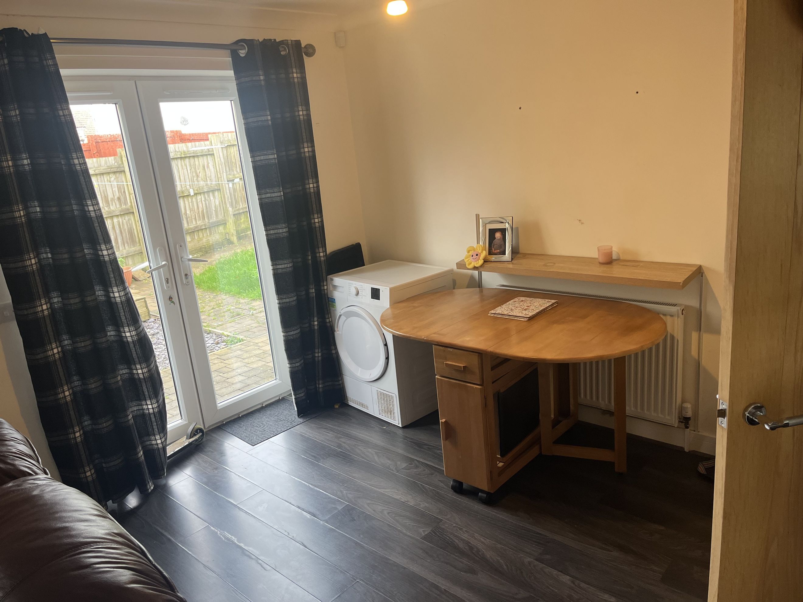 The lounge, diner, kitchen area is set out in an ‘L’ shape. The lounge has a window overlooking the rear garden and is adjacent to the dining area which features double patio doors to the rear garden. The kitchen is a bright area with a range of upper and a modern gloss cashmere colour.