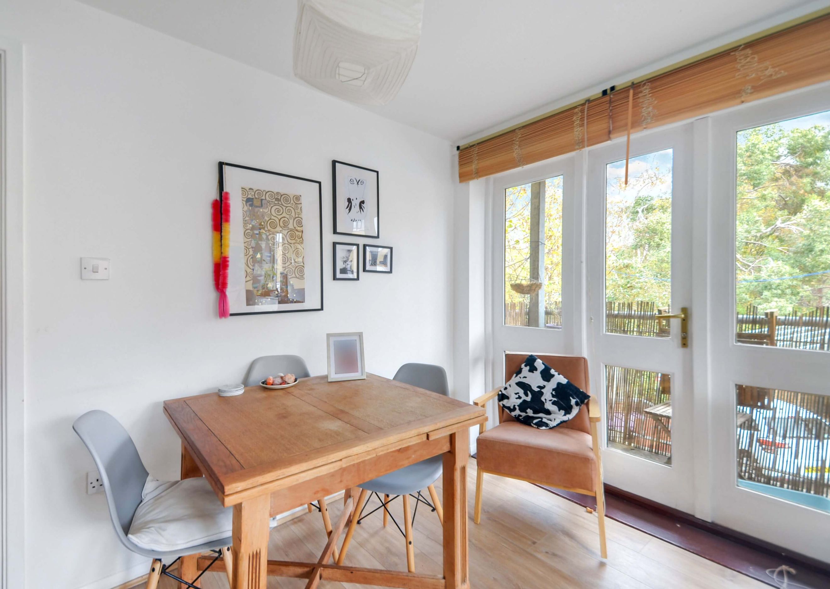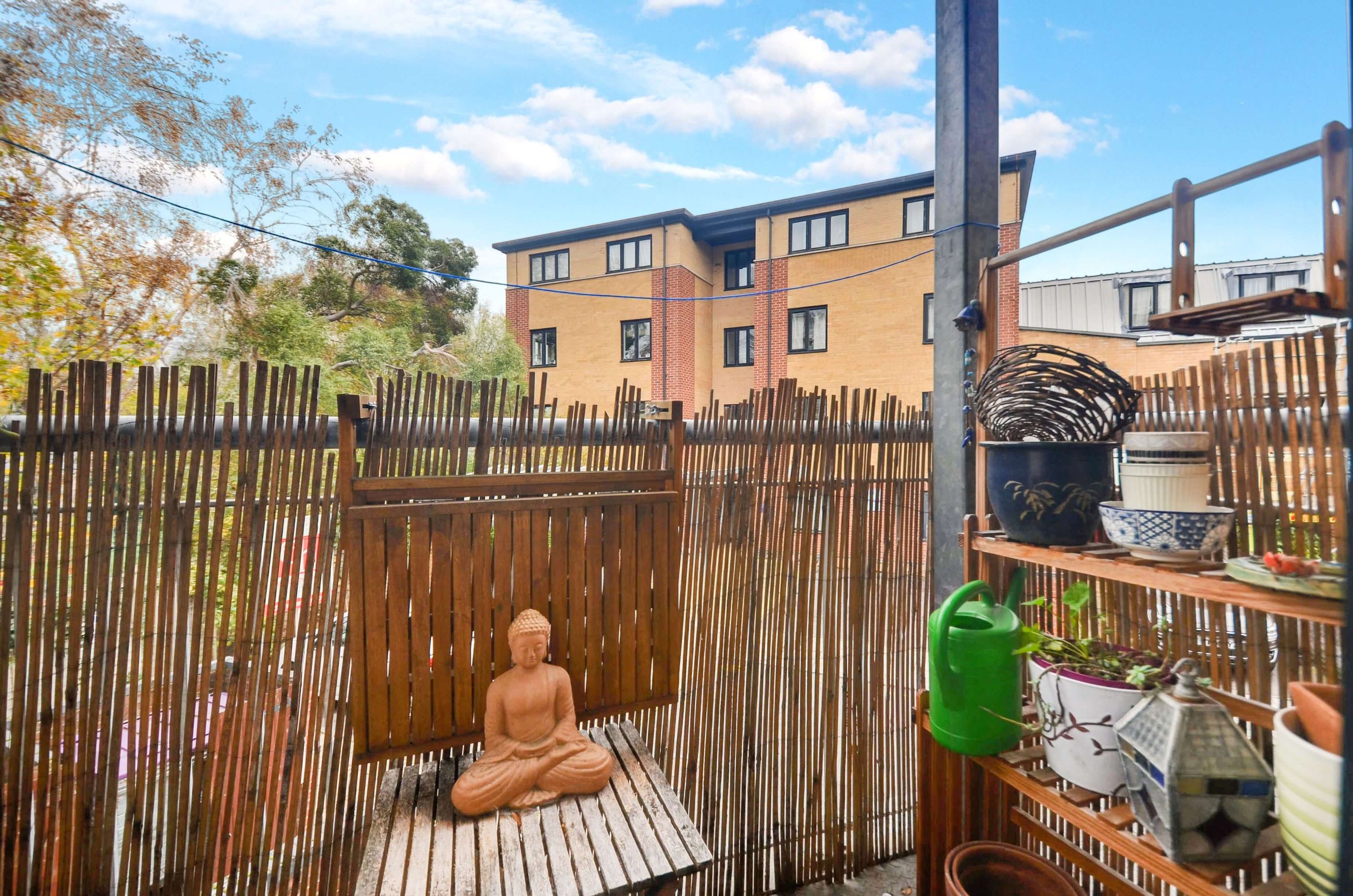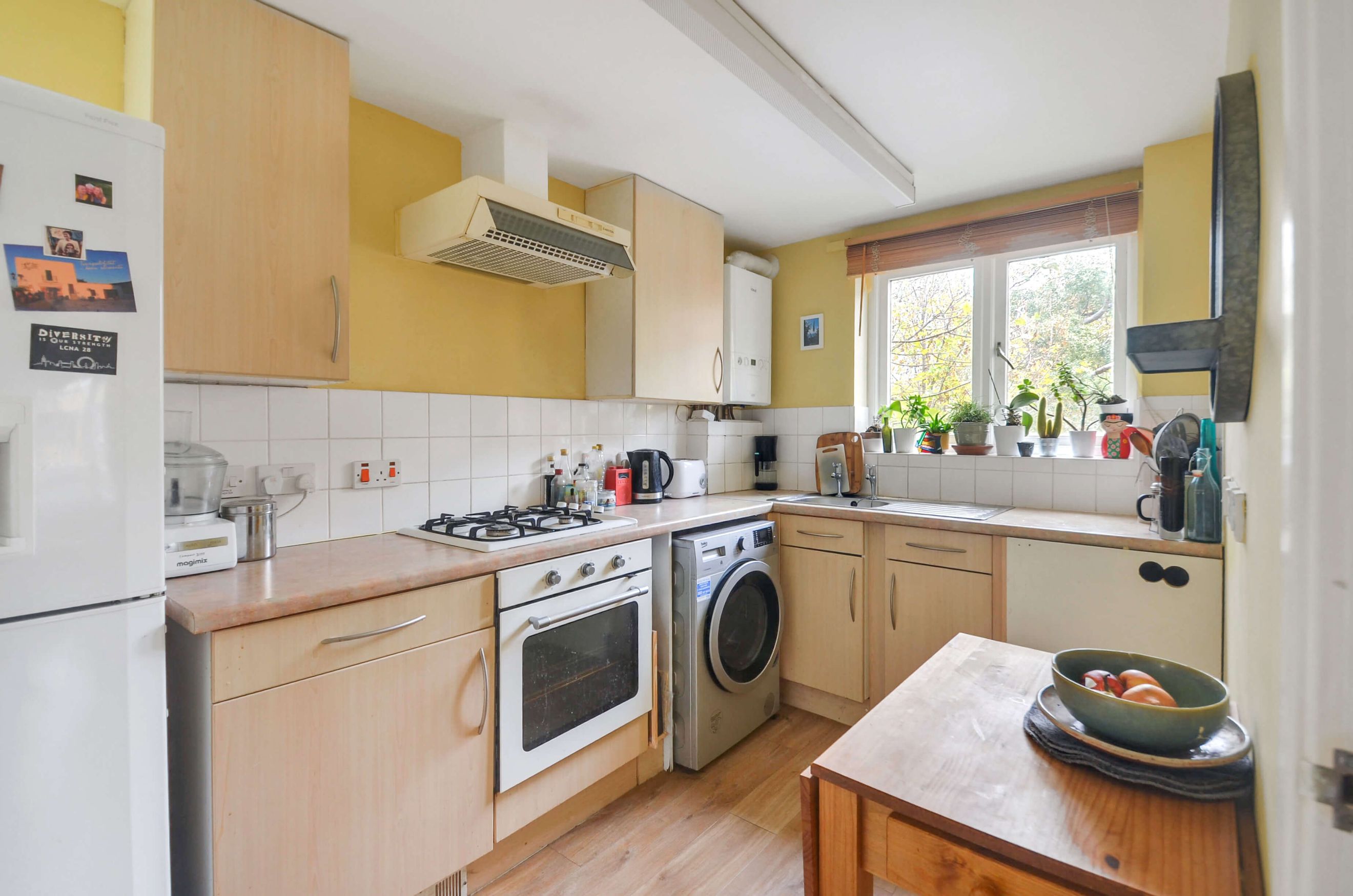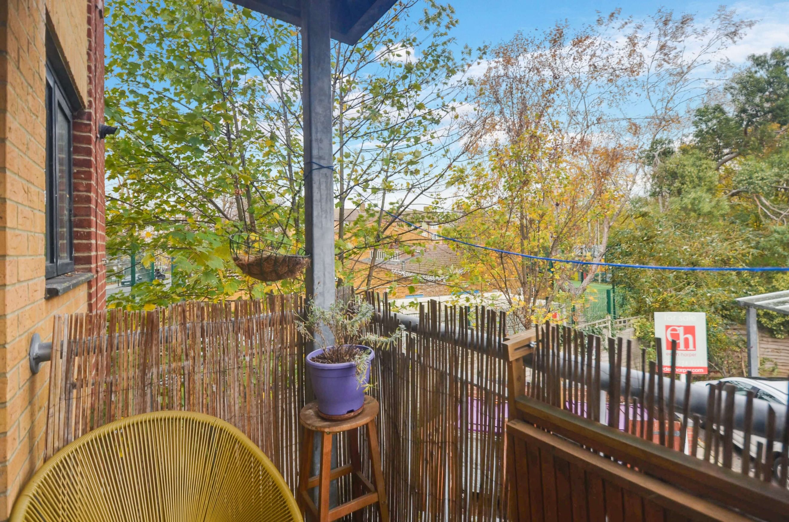 This bright 1-bedroom, 1-bathroom apartment offers central heating, a private balcony overlooking trees, and plenty of natural light. It includes new faux-wood flooring, a modern bathroom, and access to a communal garden.