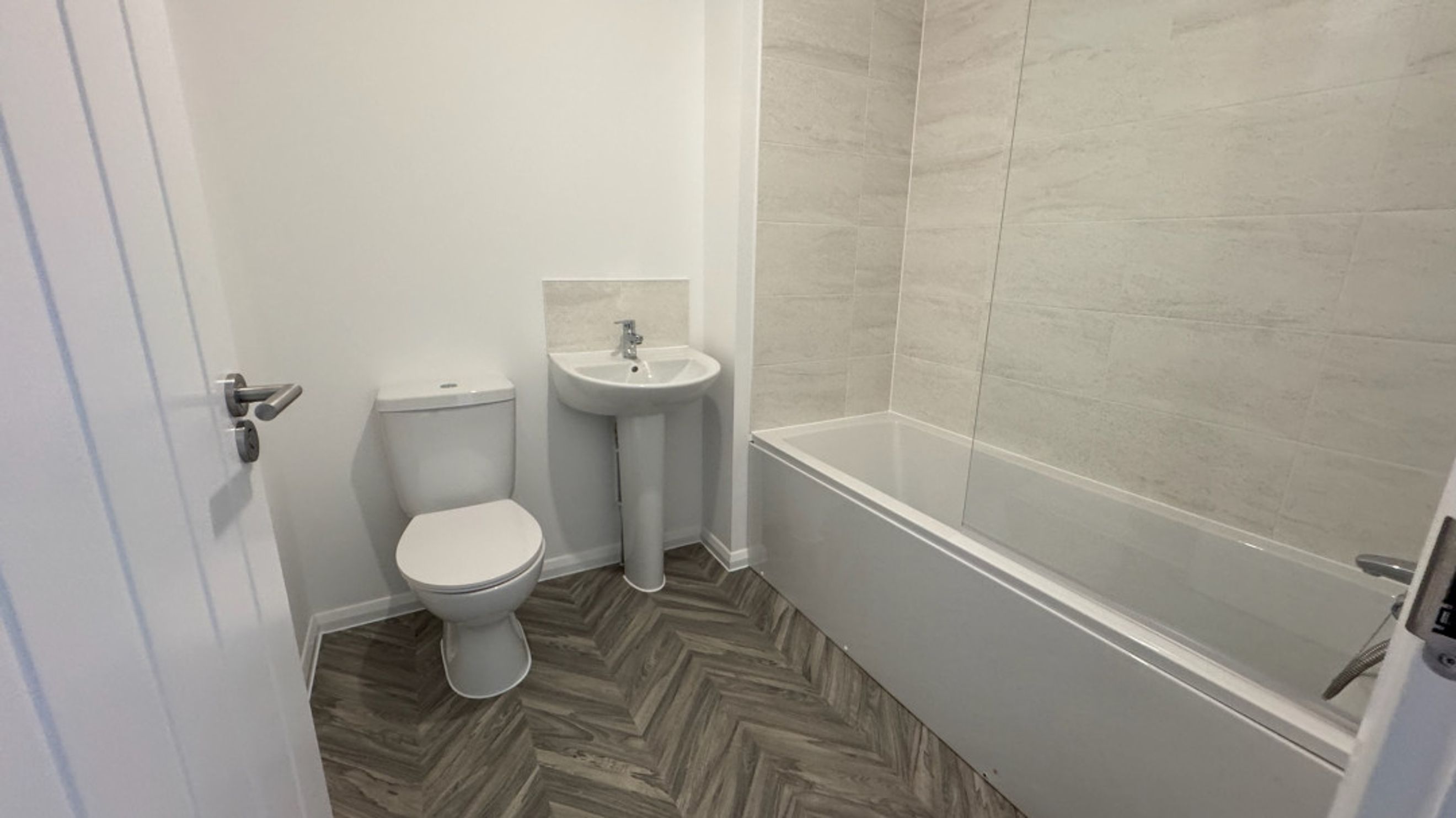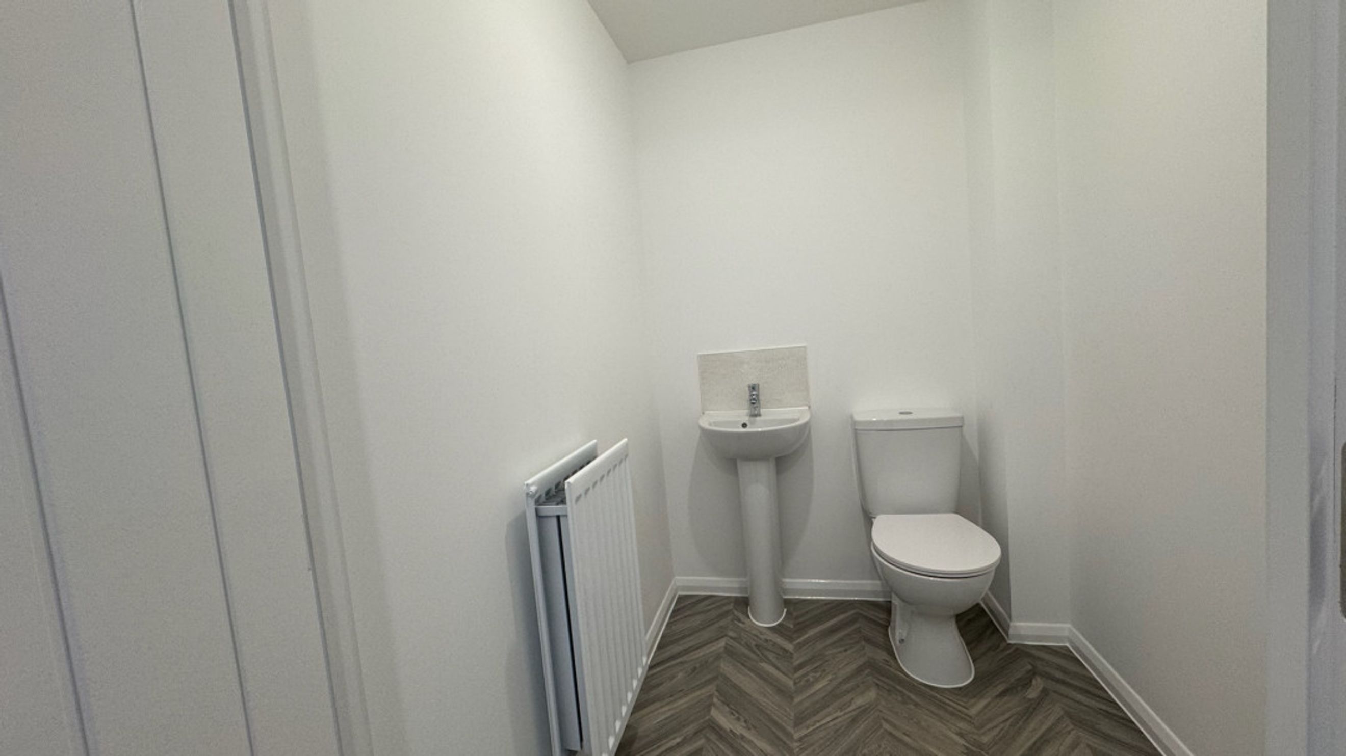 As you step into the entrance hall of this stunning new-build home, you'll find a handy space to remove your shoes and coats, along with the staircase leading to the first floor.
