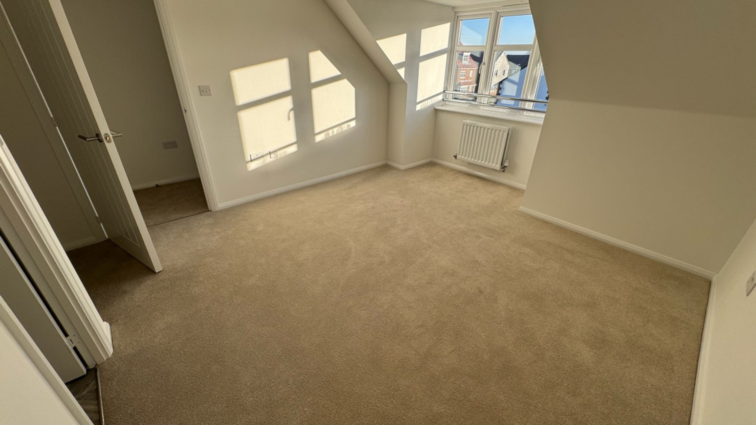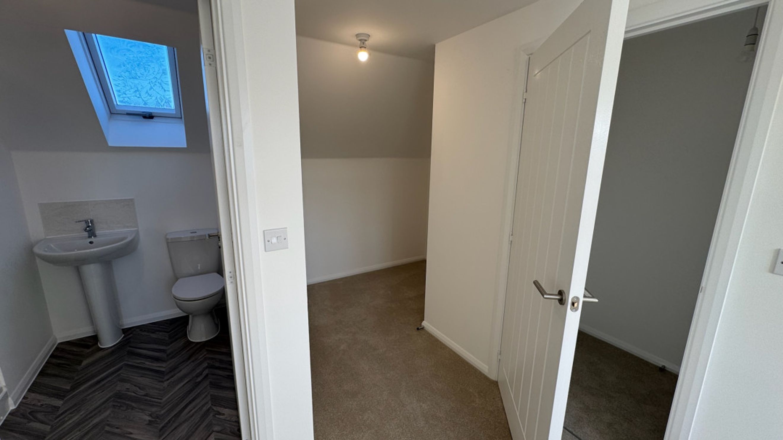 On the second floor, the landing provides an additional storage cupboard. Step into the large primary bedroom and you'll discover a dedicated dressing area and a stylish en-suite.
