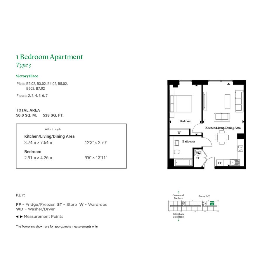 Plot B3.02 is a new 1 bedroom Shared Ownership apartment located on the third floor of Victory Place. This 545 sqft home features an open plan kitchen/dining/living area with lots of natural light, a range of integrated appliances plus a washer/dryer in the utility cupboard, fitted wardrobes to the bedroom and access to beautiful communal gardens.