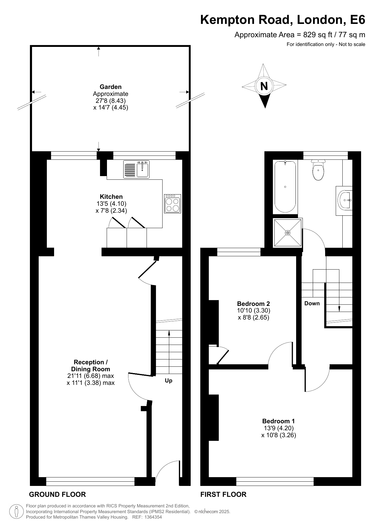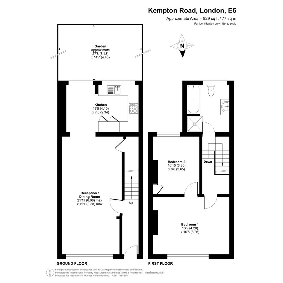 The property features a reception room and a kitchen on the ground floor. On the first floor, there are two bedrooms and one family bathroom.