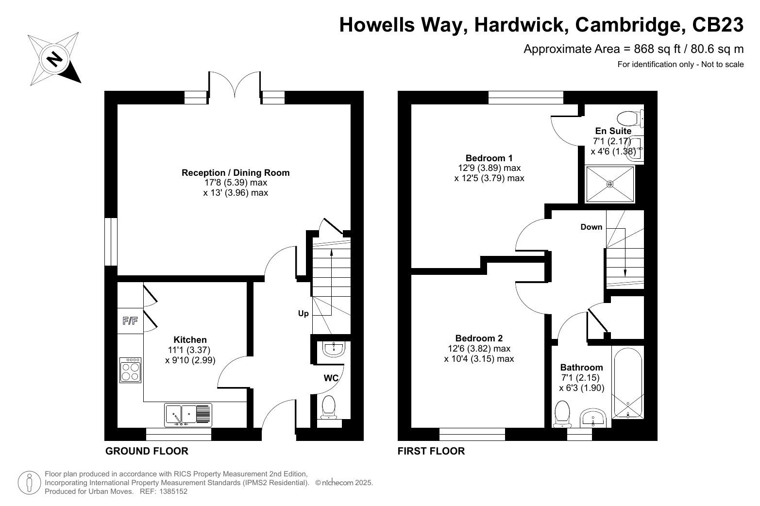A great chance to buy a recently-built, shared-ownership house with south-west-facing garden and parking for two cars. The smartly-presented, semi-detached property has a cloakroom/WC just off the entrance hall, an attractive kitchen with sleek, handle-less units and a spacious, dual-aspect reception/dining room with patio doors. Upstairs is a main bedroom with en-suite shower room, a generously-sized second double bedroom with wood panelling and a naturally-lit bathroom with limestone-style tiles. Well insulated walls, roof and floor, high performance glazing and a modern gas central heating system all contribute towards a very good energy-efficiency rating. The driveway is at the end of the garden and easily accessible via the side gate. Hardwick Community Primary School is Ofsted-rated 'Good' and the village is approximately six miles west of Cambridge city centre with buses from nearby St Neots Road providing a journey time of around twenty minutes (Google Maps estimate). The property is held on a very long lease with the freehold transferred on final staircasing (100% ownership).