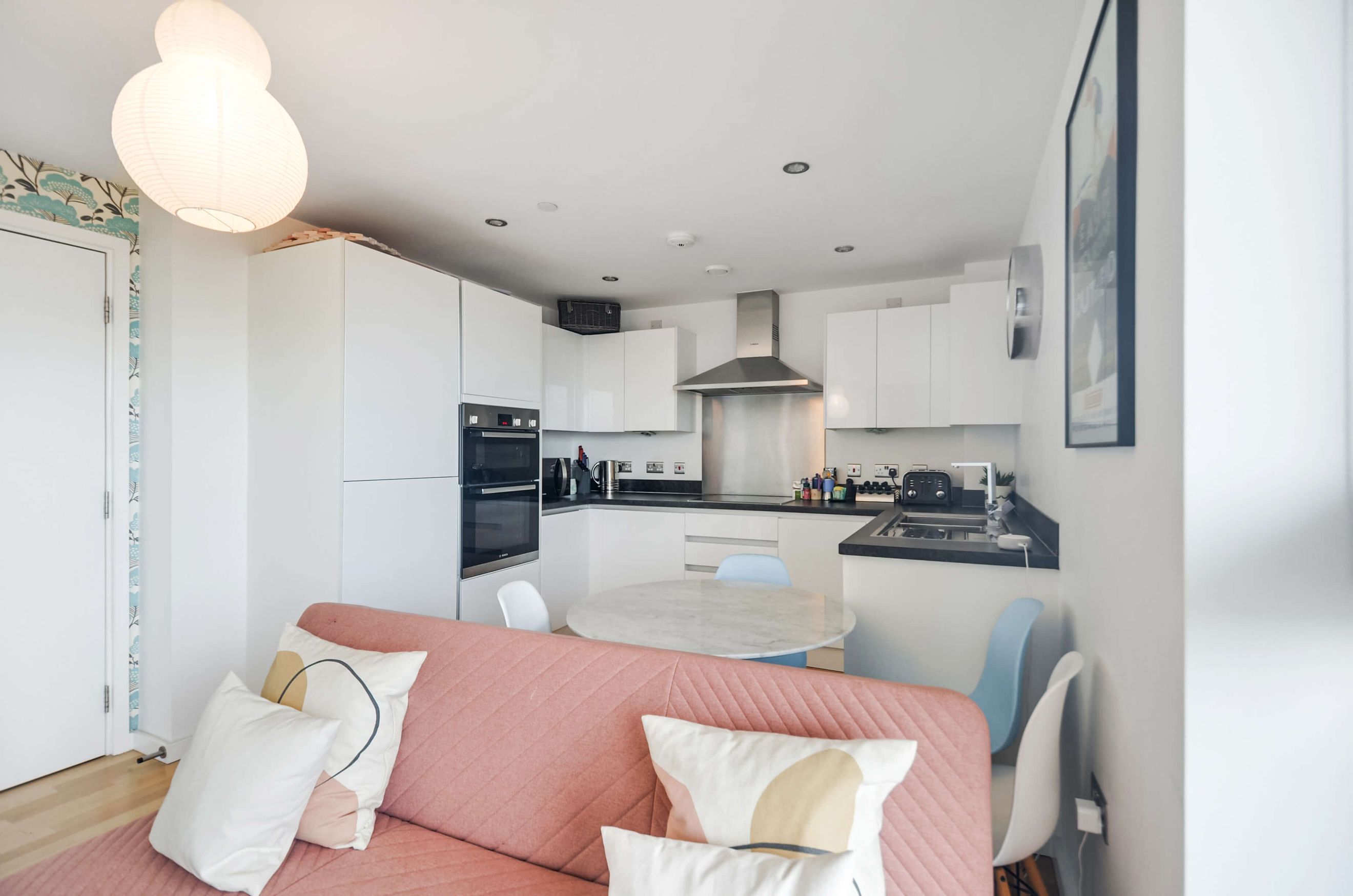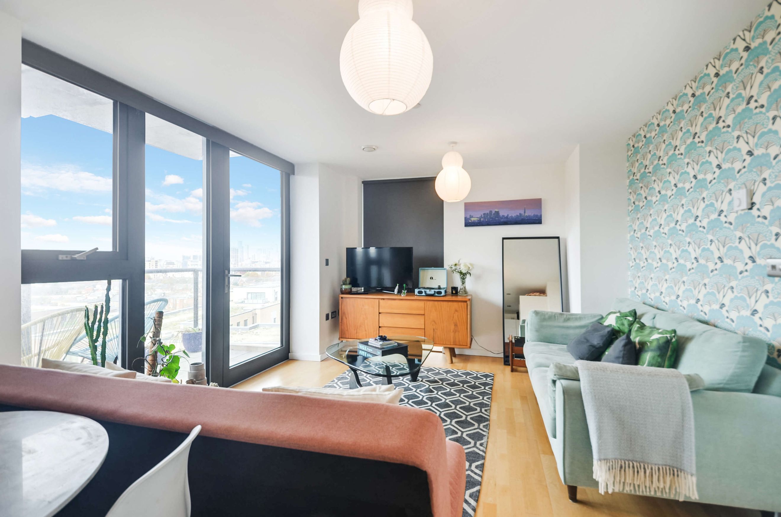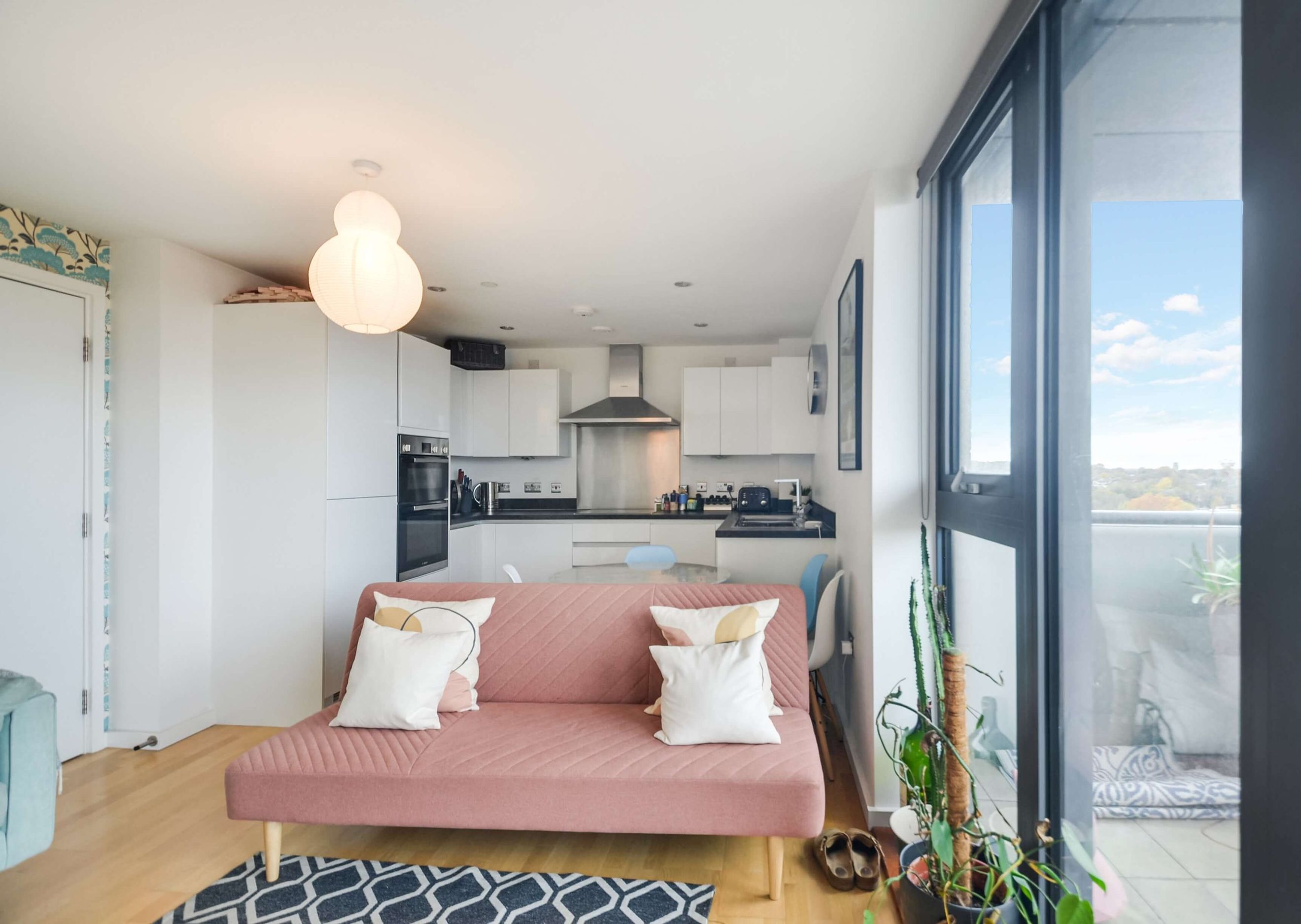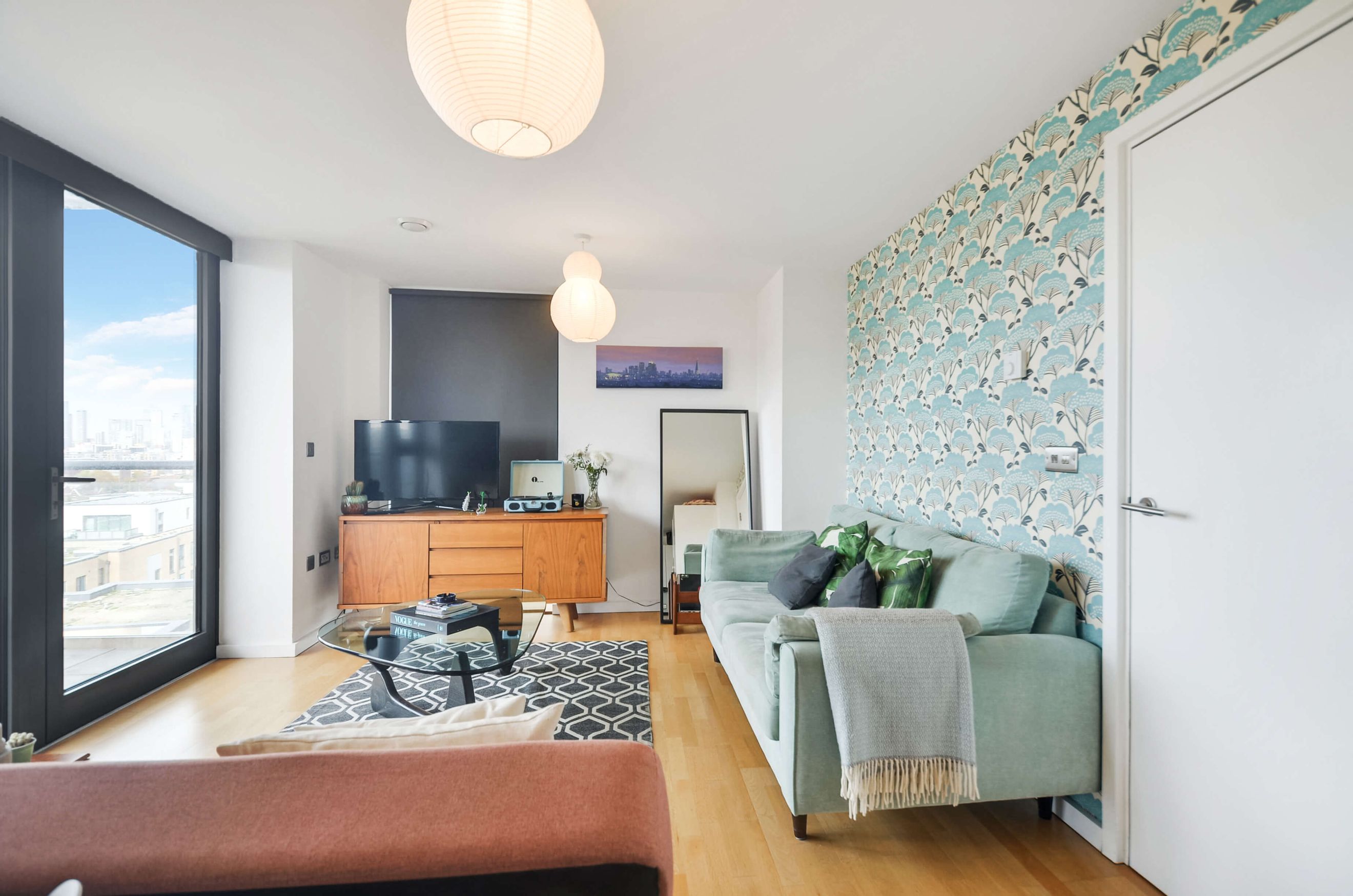 This stylish apartment features floor-to-ceiling windows, a fully integrated kitchen, underfloor heating, and a private balcony. Residents benefit from a communal garden, secure underground bike storage, a concierge, and a master bedroom with a fitted wardrobe.