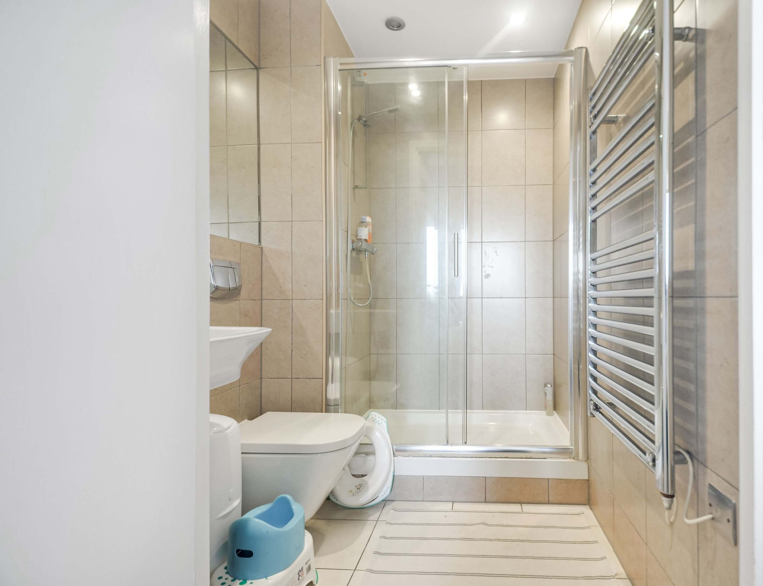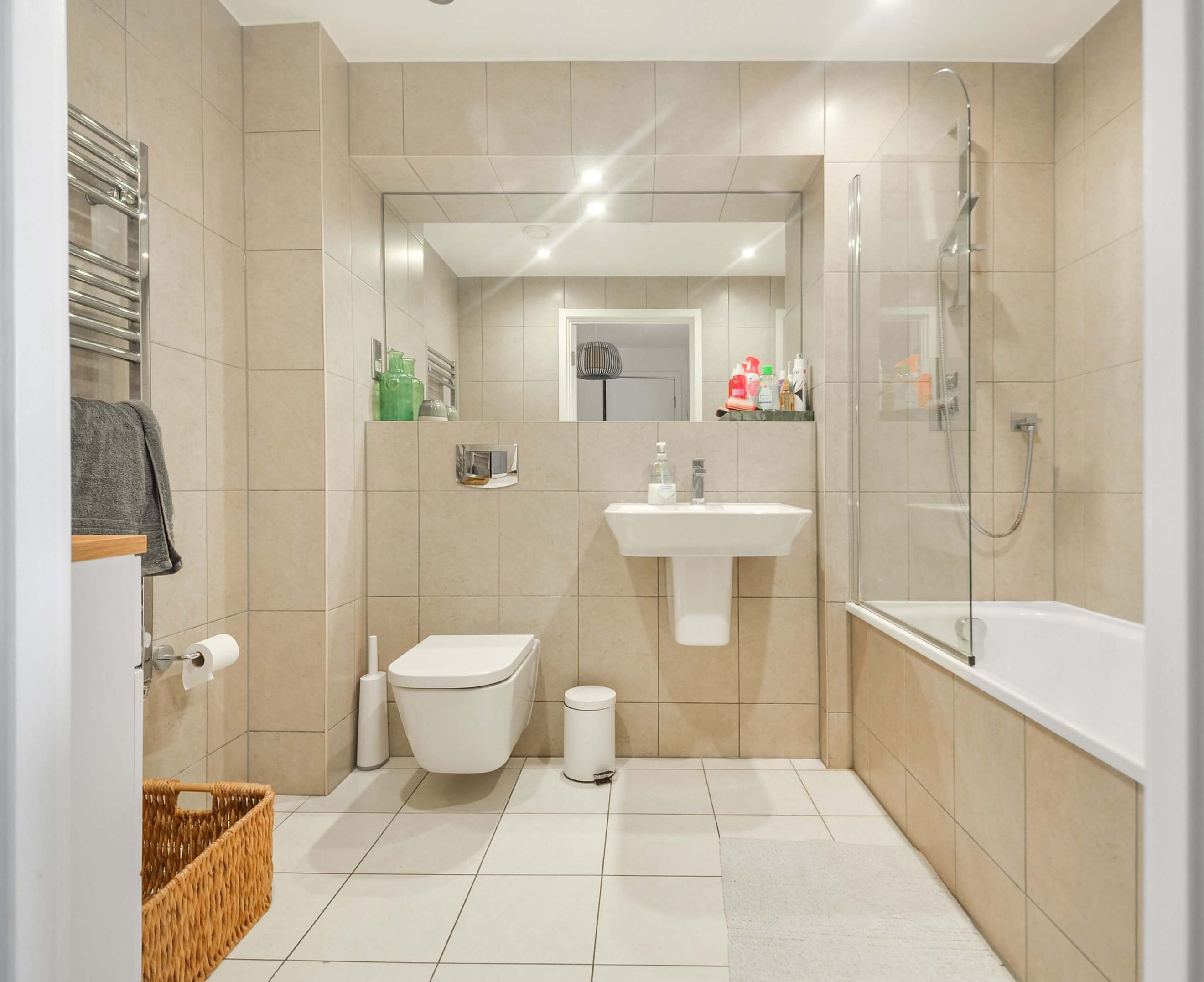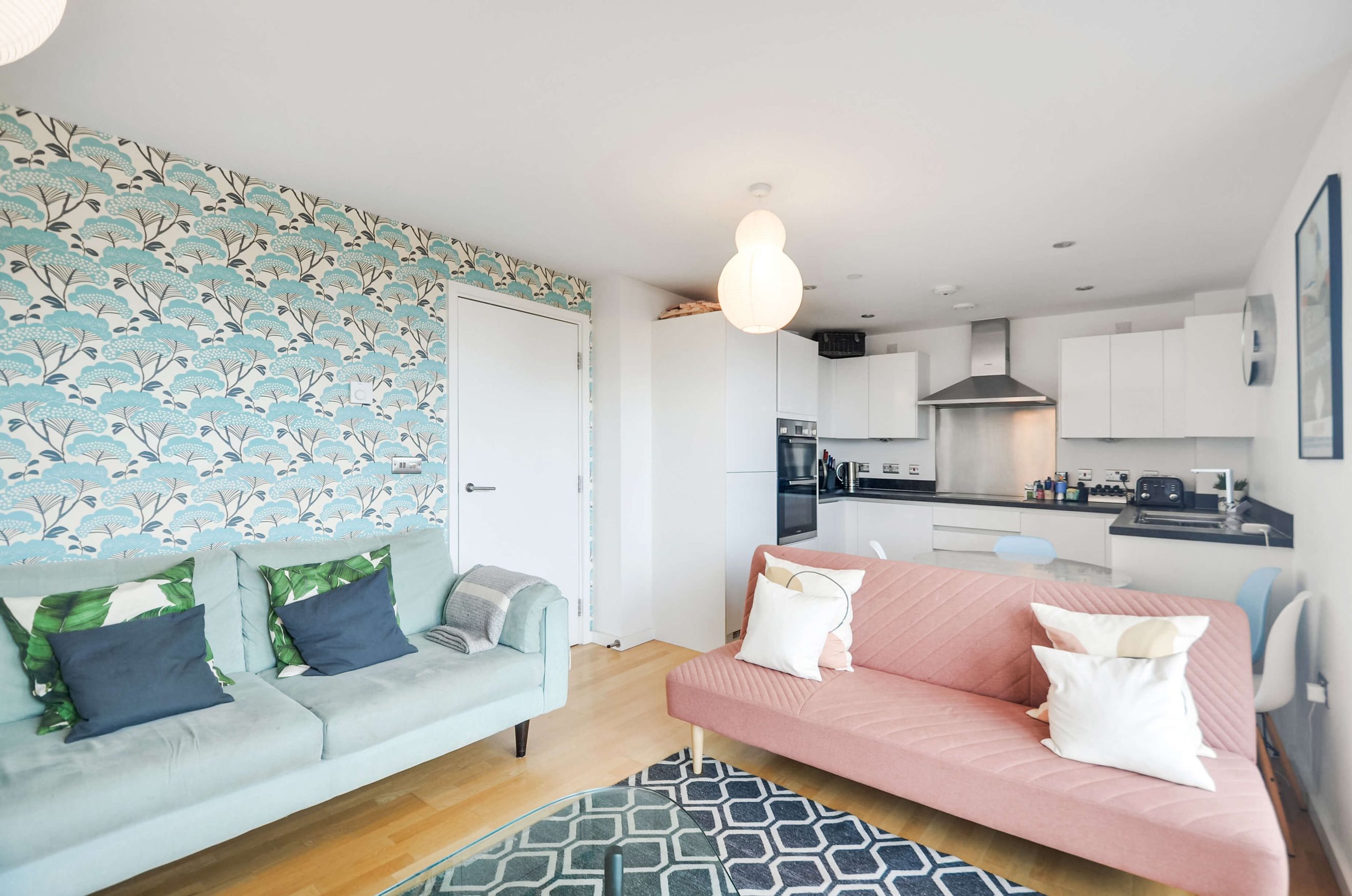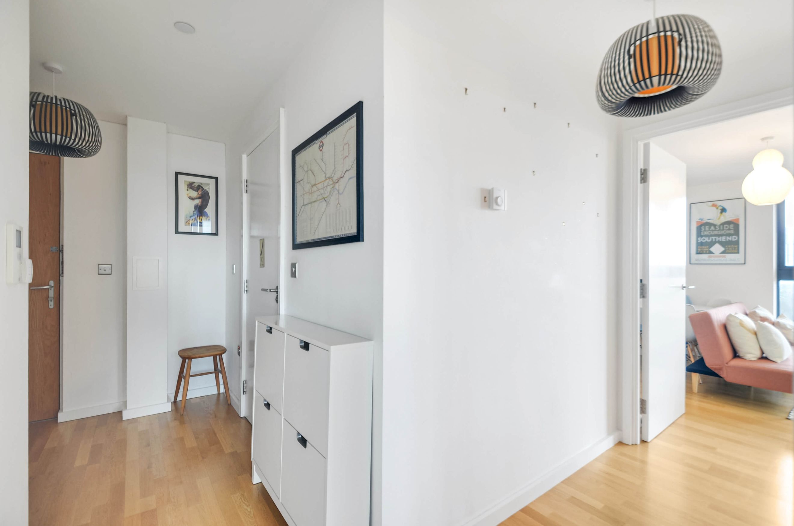 This stylish apartment features floor-to-ceiling windows, a fully integrated kitchen, underfloor heating, and a private balcony. Residents benefit from a communal garden, secure underground bike storage, a concierge, and a master bedroom with a fitted wardrobe.