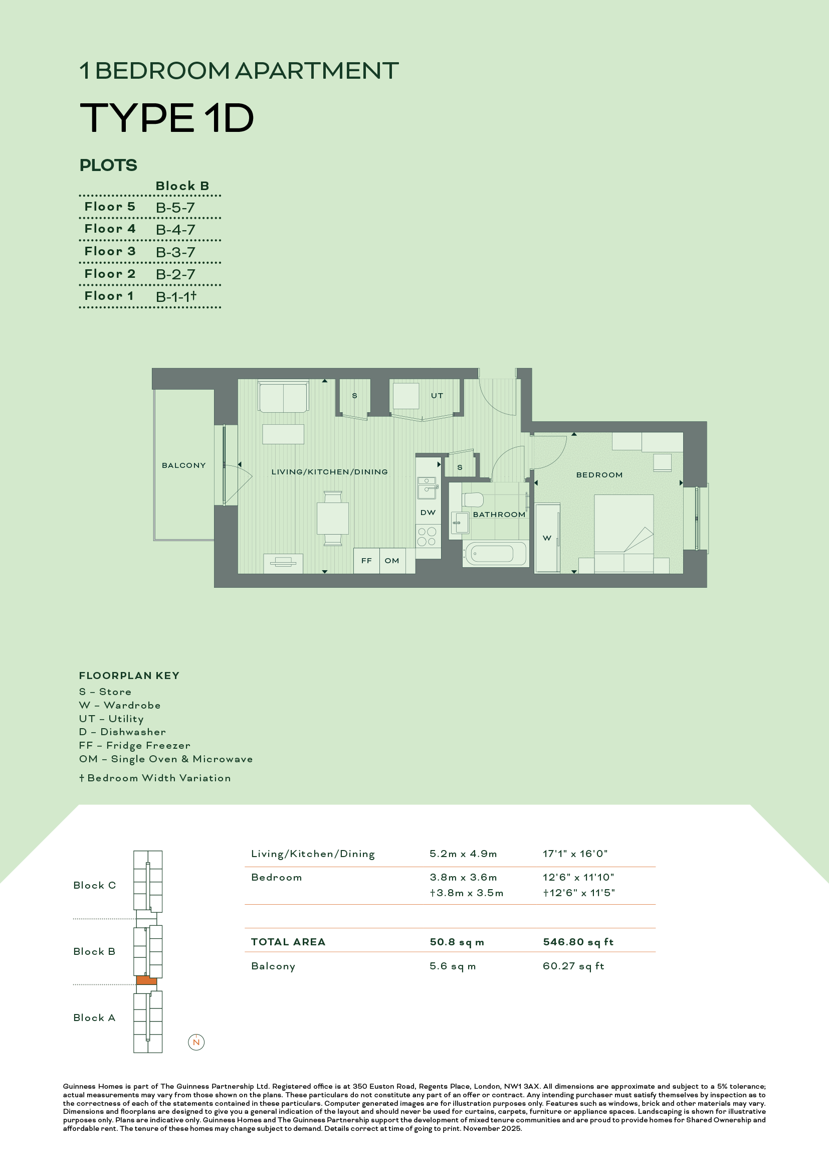 - Total area 50.8 sq.m. / 546.80 sq.ft (excluding balcony)