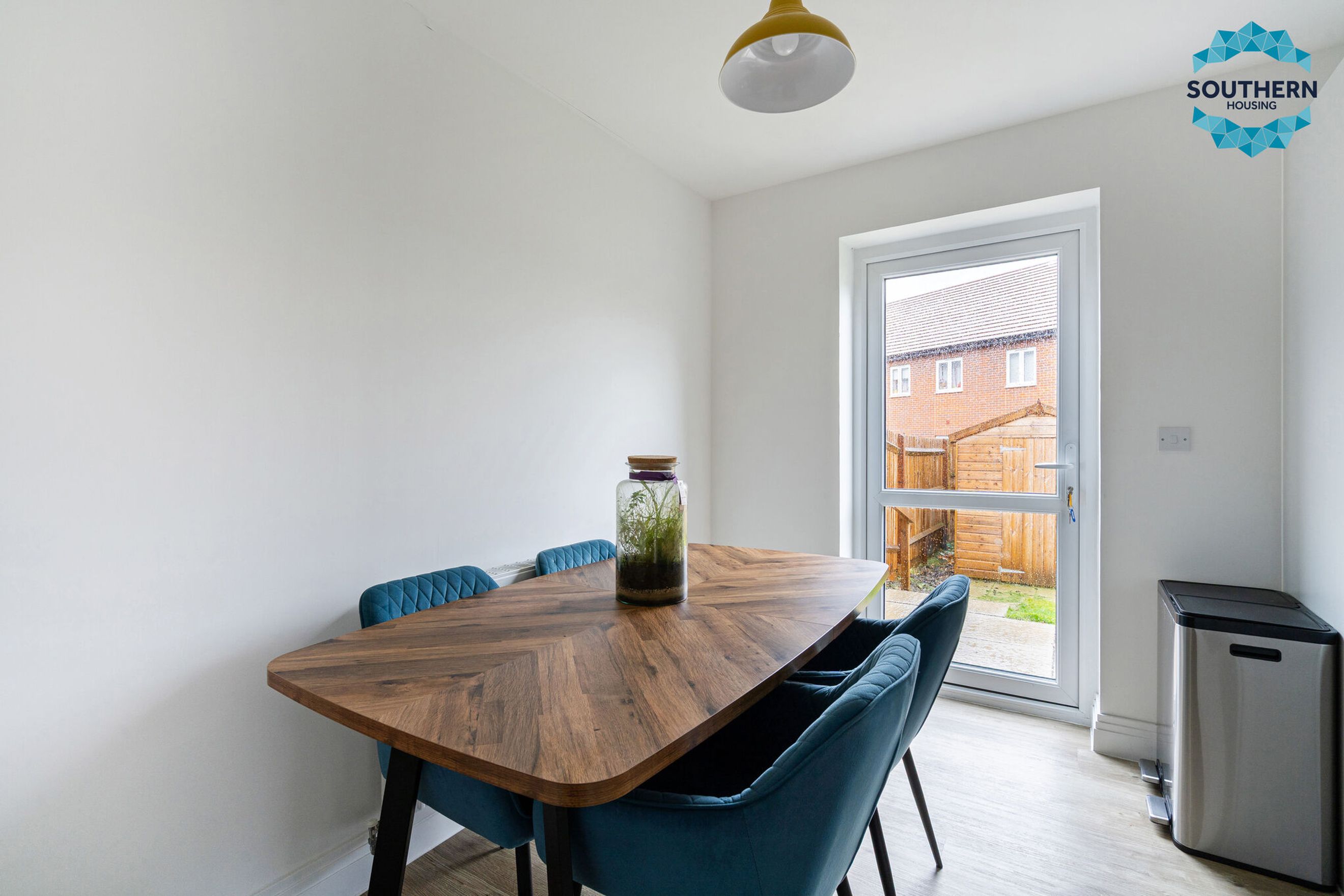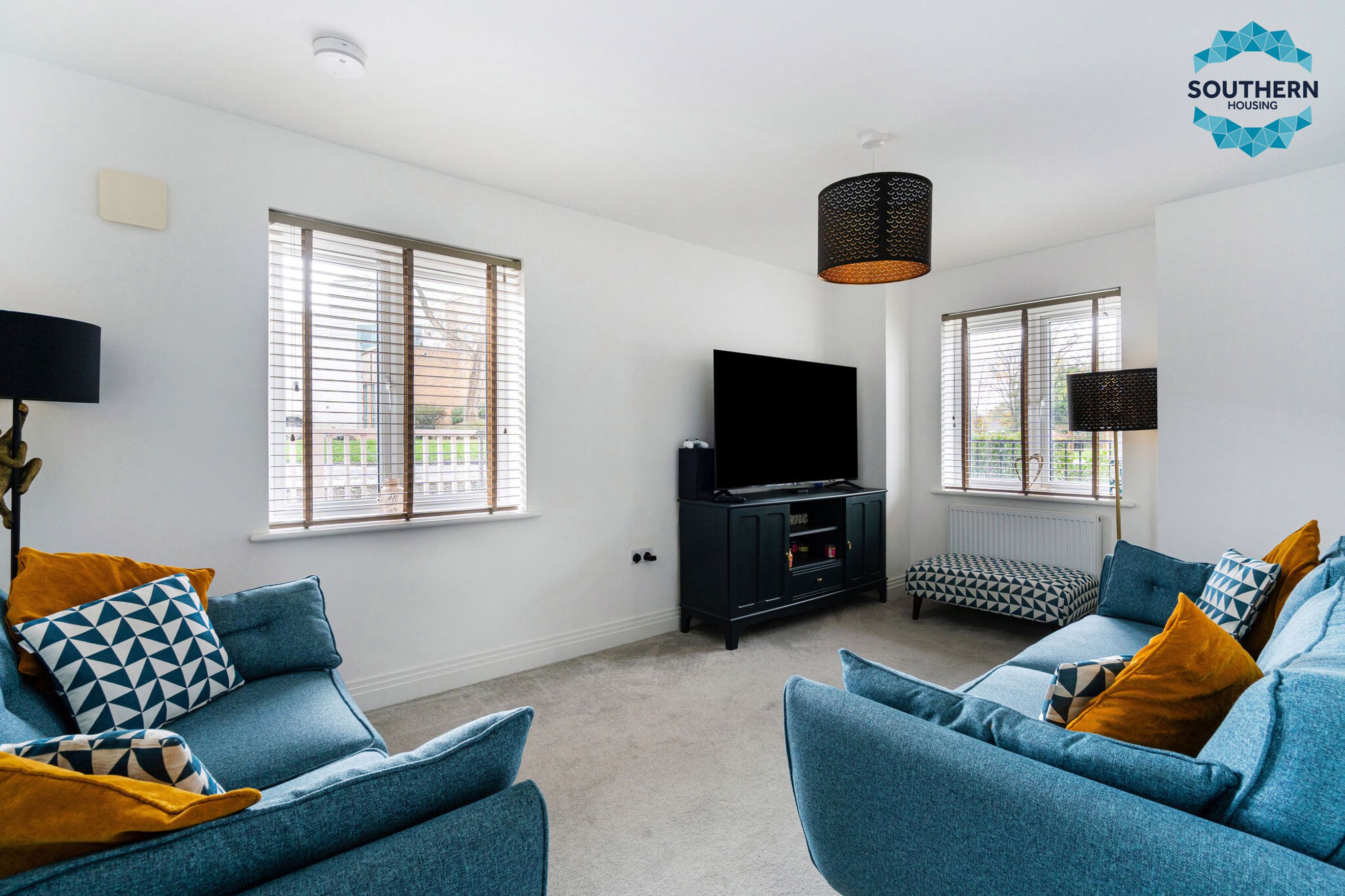The cosy living room offers the perfect space to relax and unwind, while the open-plan kitchen and dining area is ideal for family meals and entertaining guests. This modern kitchen provides ample storage for all your cookware and features a sociable layout that flows effortlessly.
