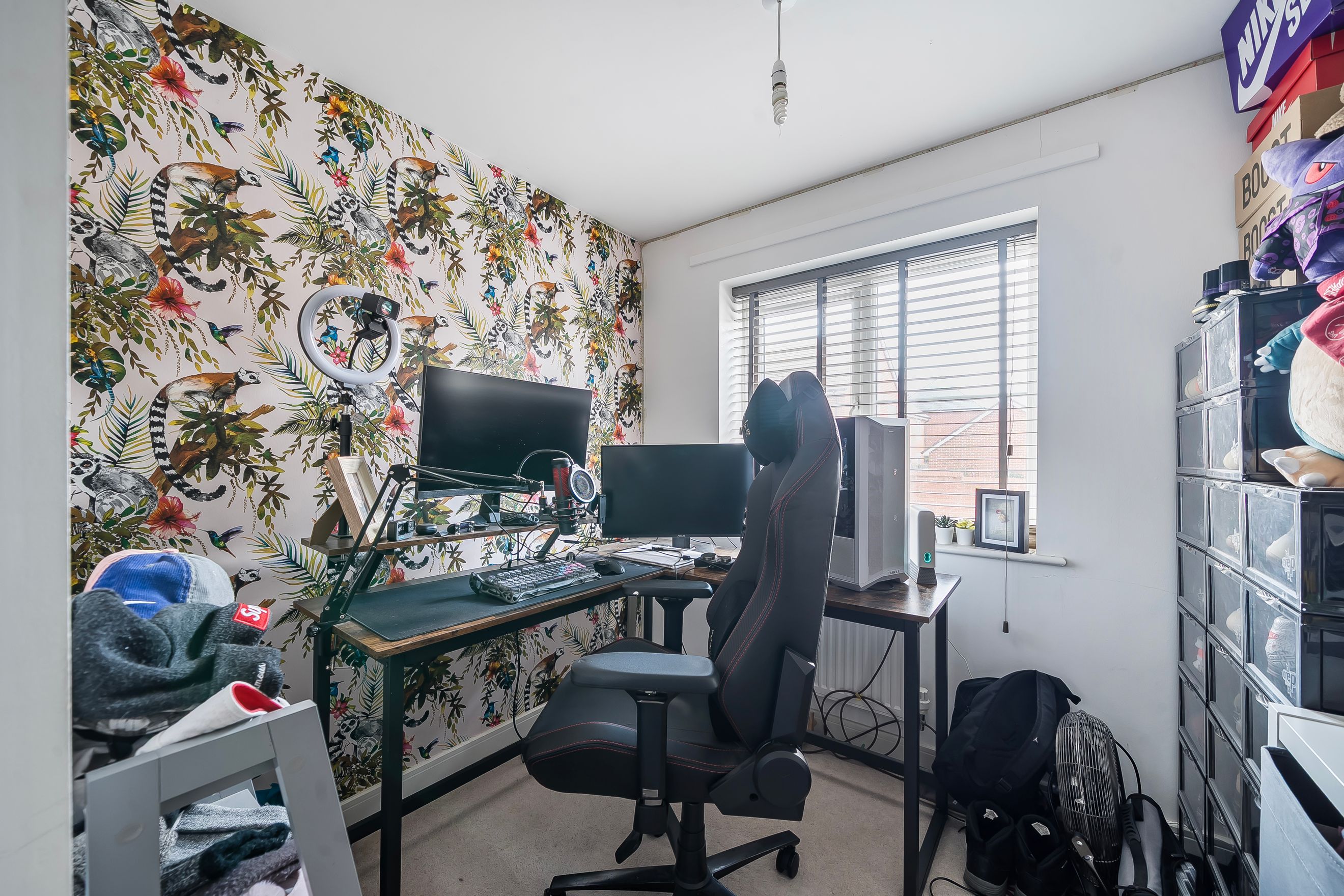 Upstairs, there are three comfortable bedrooms. The bathroom has a modern, white suite. Two parking spaces are provided, as well as your own back garden.