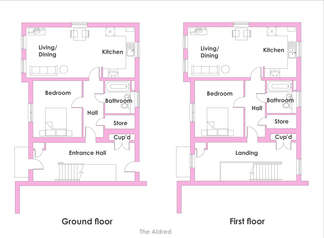 Enter The Aldred into a welcoming hallway, which features handy storage and a fully fitted modern bathroom. Along the hallway you are presented with a master bedroom, the ideal place for a comfortable, restful night's sleep. Back through the hallway, you'll find the heart of this home, an open-plan lounge-diner with a wrap-around kitchen. The wrap-around kitchen features some handy integrations, making it the perfect place to entertain visiting guests.