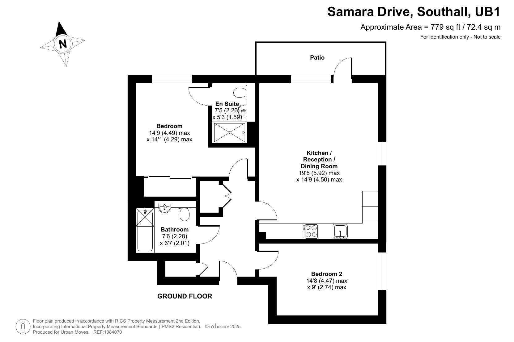 A well-presented apartment on the ground floor of this modern development. The property has a spacious reception room with wood-strip flooring, windows on two sides and a door that leads out to a private patio. The open-plan kitchen area features sleek, handle-less units and integrated appliances. There is a main bedroom with en-suite shower room and built-in mirror-fronted wardrobe plus a second, good-sized, double bedroom and a stylish bathroom. A pair of storage/utility cupboards have been provided in the entrance hall and well insulated walls and floor, high performance glazing and a communal heating and hot water system make for a very good energy-efficiency rating. Newell House is part of the Green Quarter which has extensive grounds including well-maintained communal gardens and attractive water features. Southall Station, for Elizabeth Line services, is only a short walk away. The apartment comes with use of a parking space plus access to the communal cycle store.