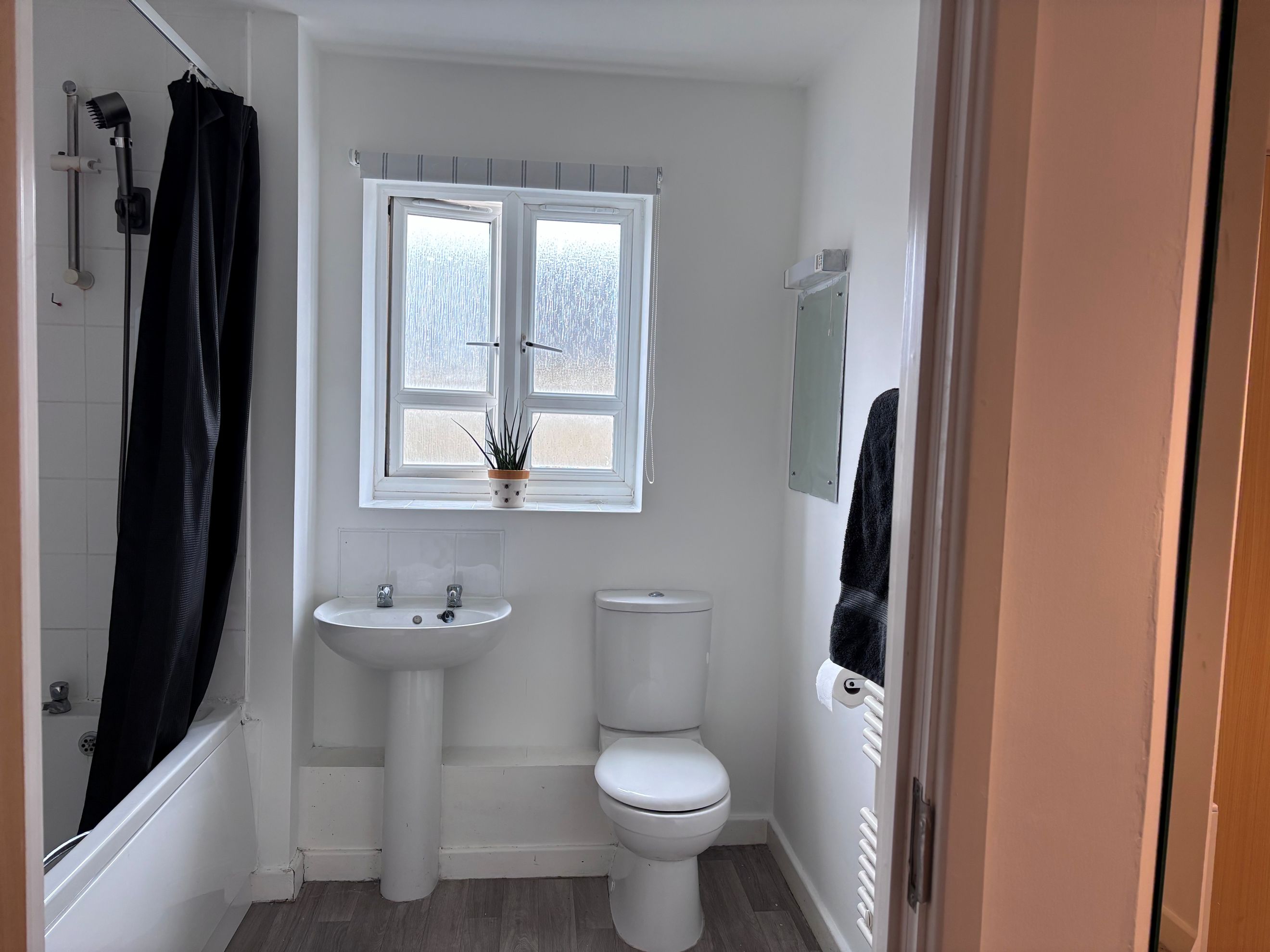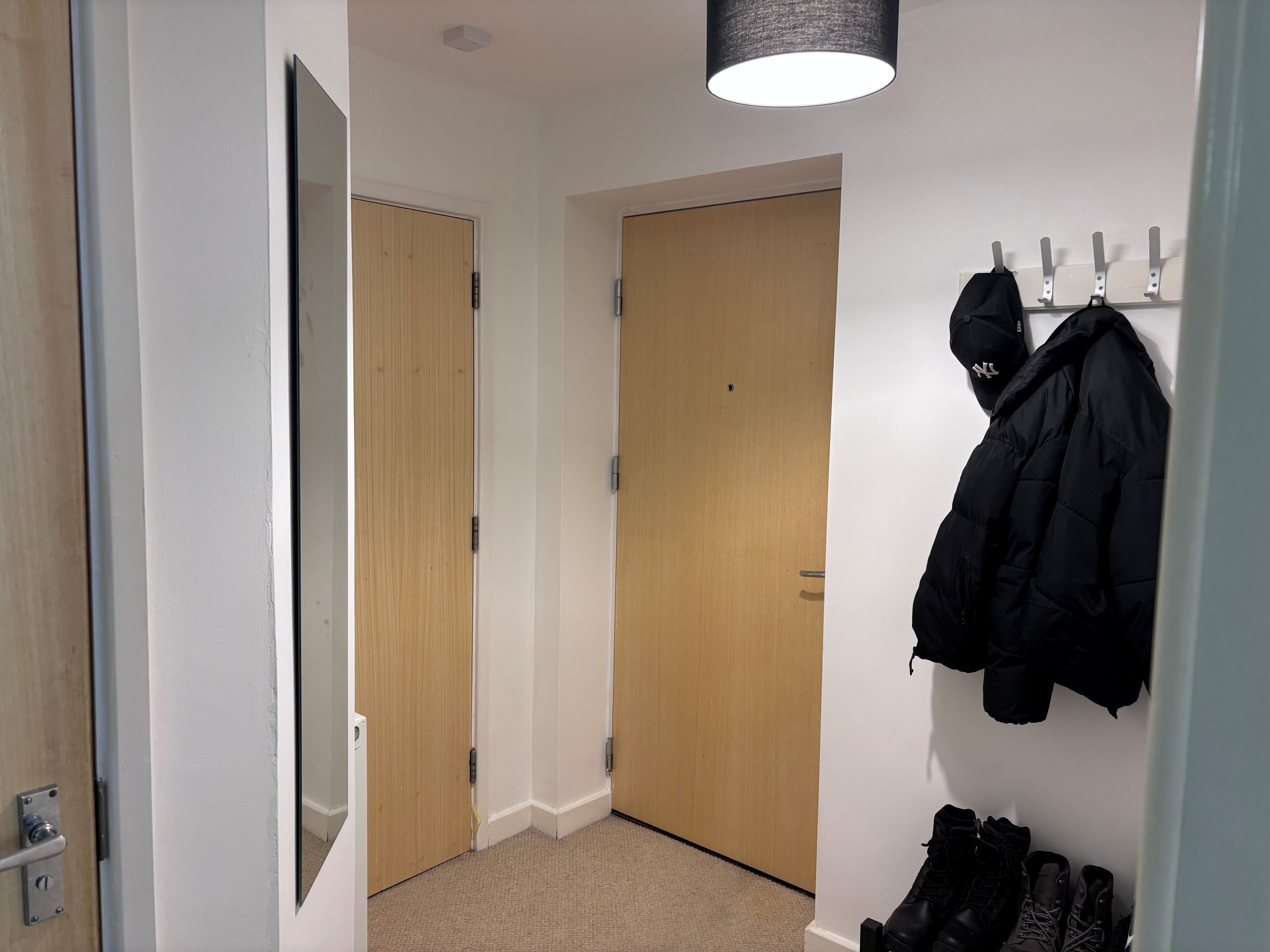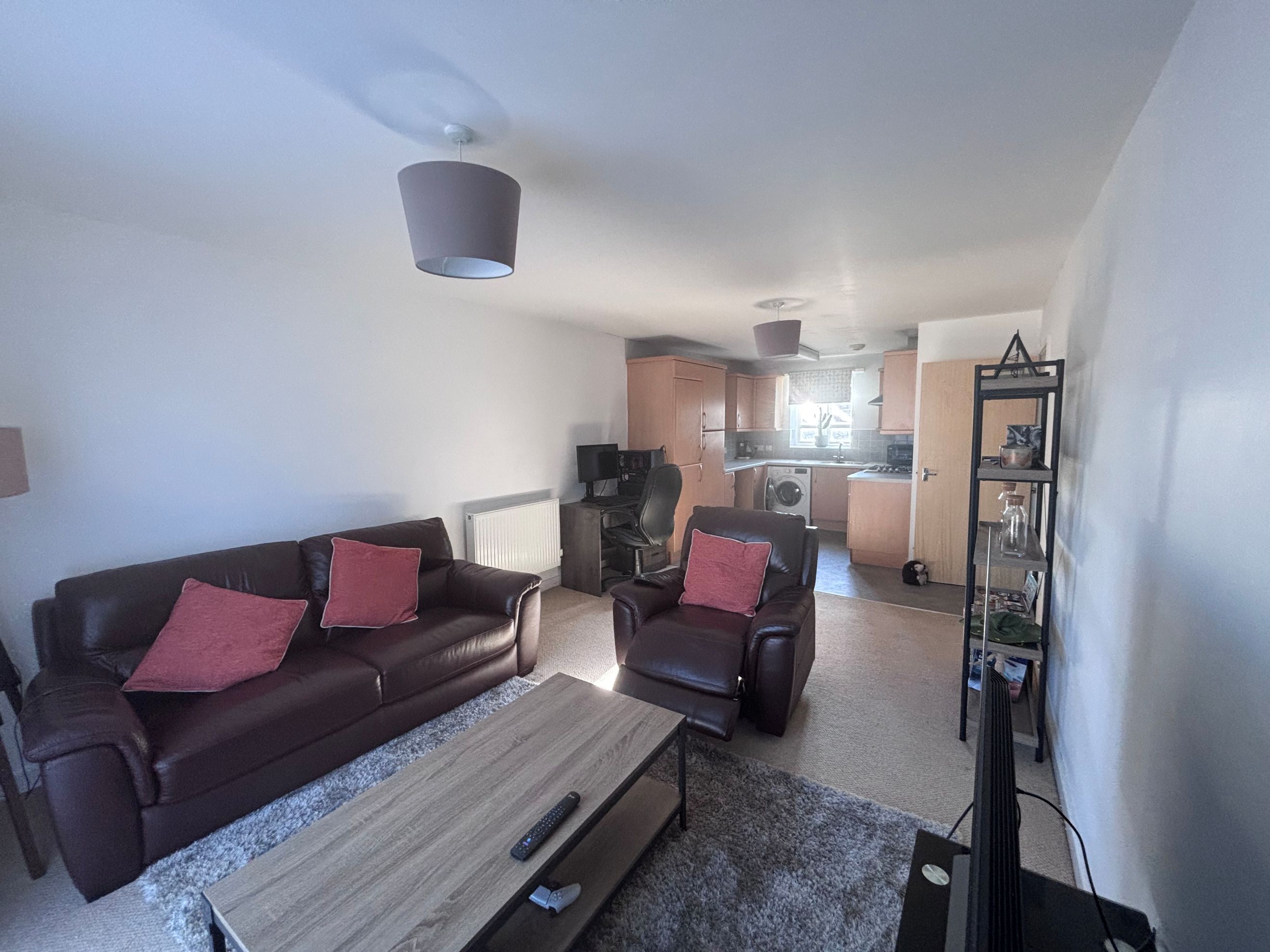 Inside, the apartment has a bright and airy feel, featuring open-plan living with space for both lounge and dining areas. The generous bedroom includes a built-in wardrobe, and the modern bathroom comes with a bath and overhead shower. Additional storage can be found in the hallway, and the property benefits from gas central heating throughout.