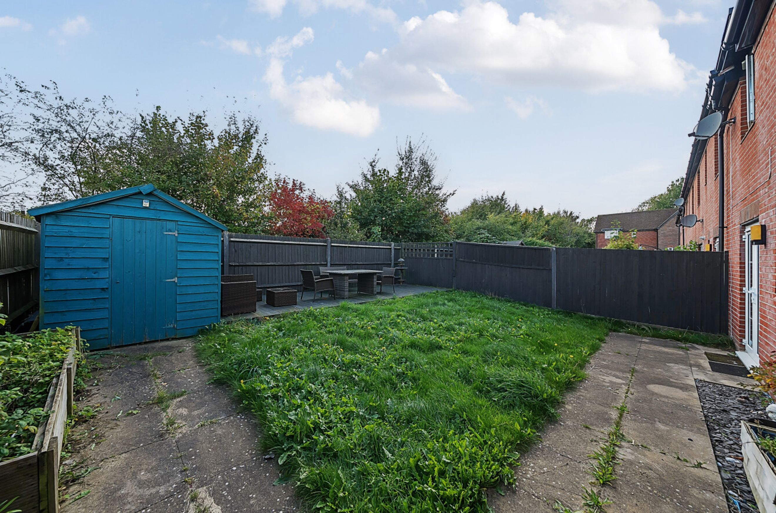 This well-maintained two-bedroom home, built in 2014, offers modern living in a convenient location. The ground floor features a stylish kitchen with integrated appliances, a bright reception room, a W/C, and useful understairs storage. Upstairs, you’ll find two comfortable bedrooms, including a master with a built-in wardrobe, and a family bathroom with a shower over the bath. Outside, enjoy a private garden complete with a shed, plus the benefit of driveway parking and additional visitor bays.